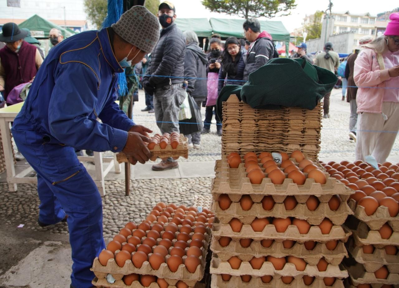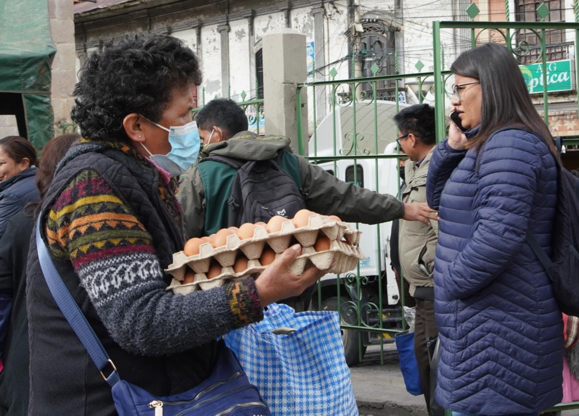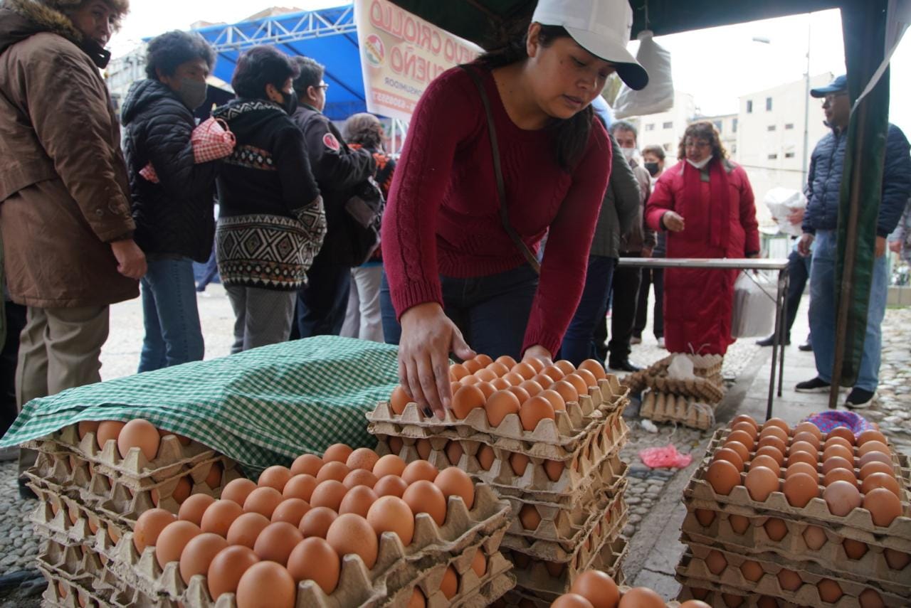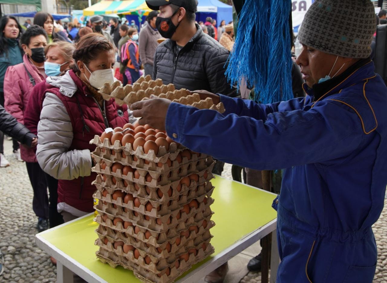Inicio de la feria del huevo, carnes, hortalizas, tubérculos y frutas, que se realiza en la plaza Alonso de Mendoza, organizado por Ministerio de Desarrollo Rural y Tierras. Fotos: Jorge Mamani