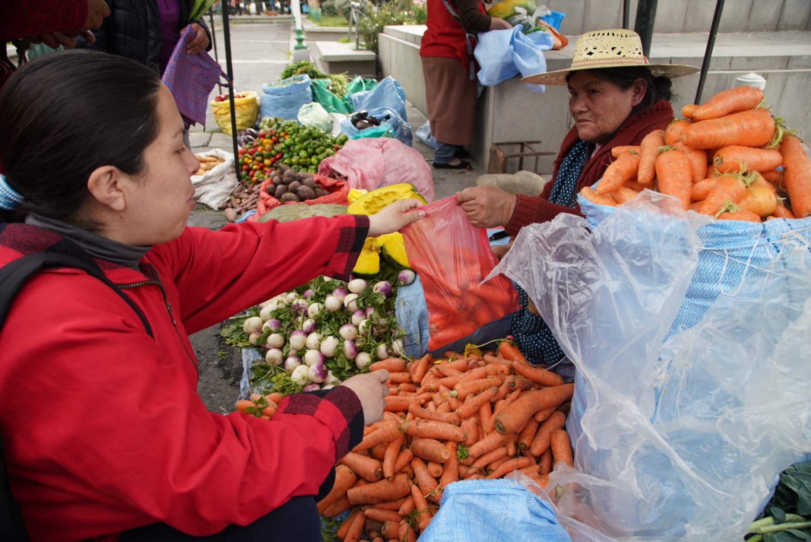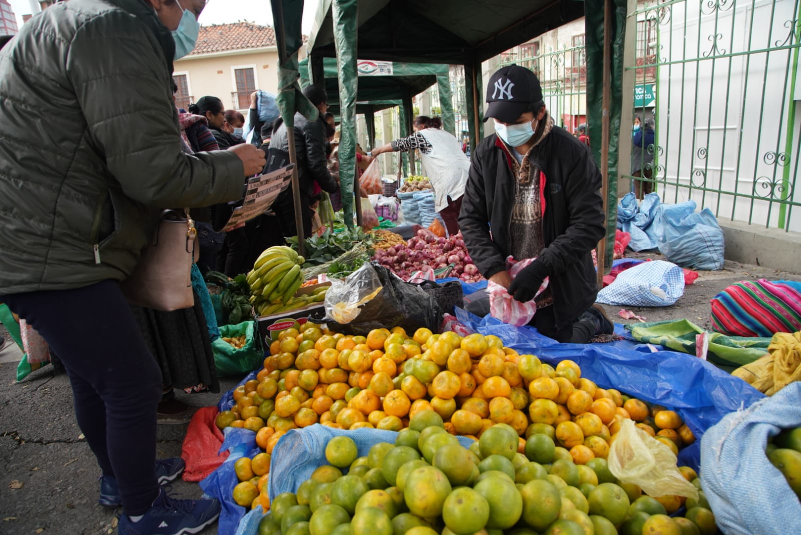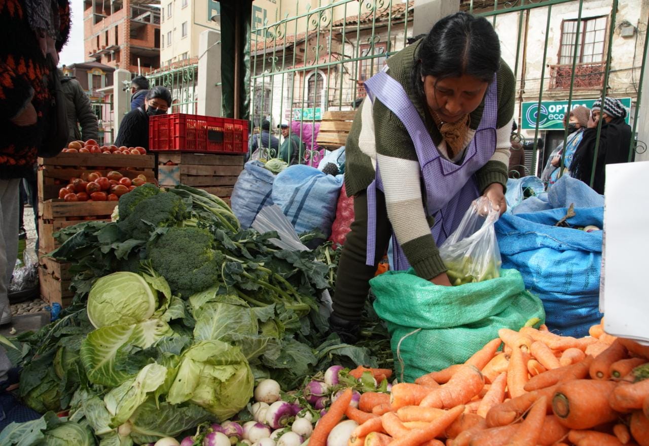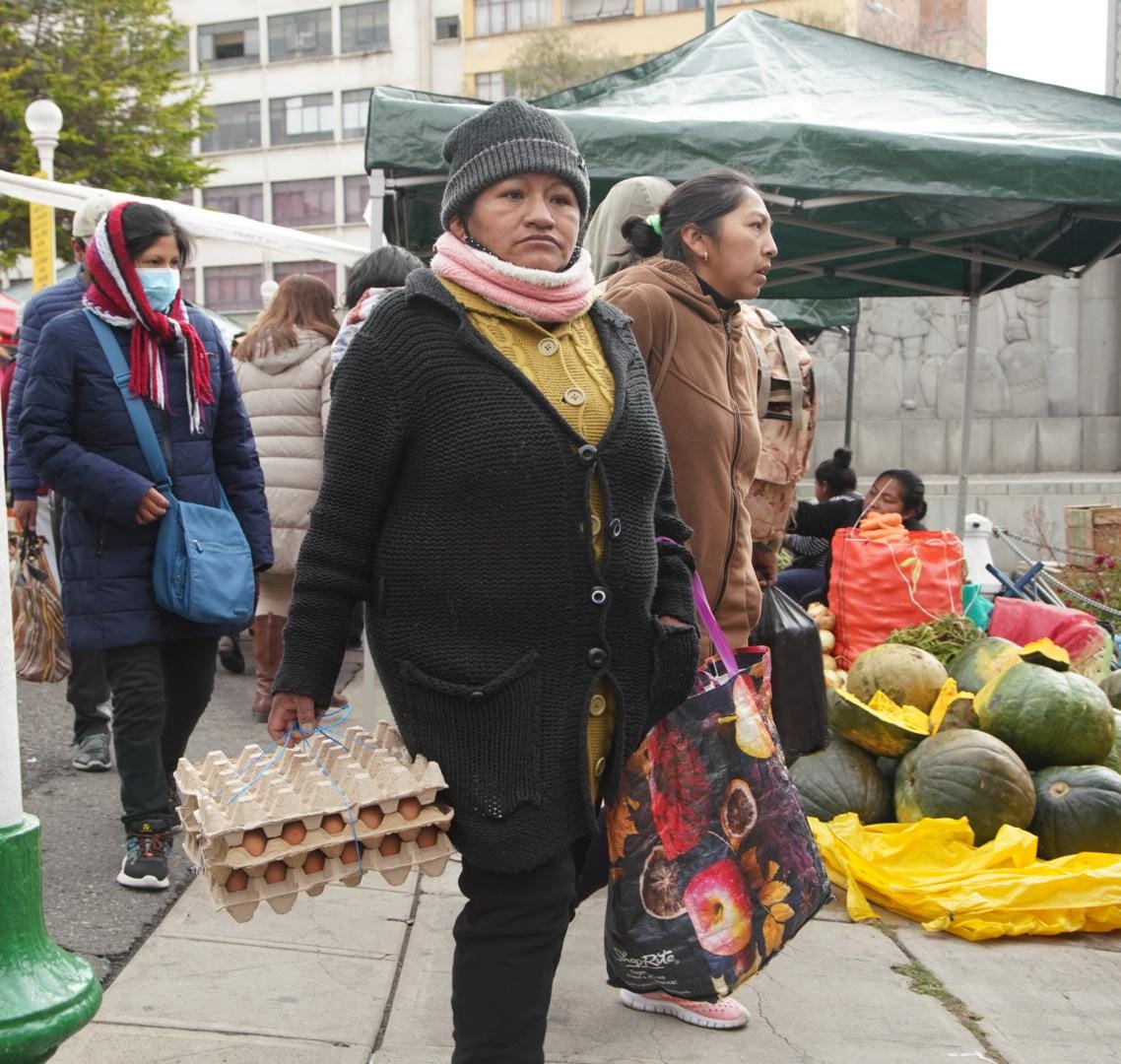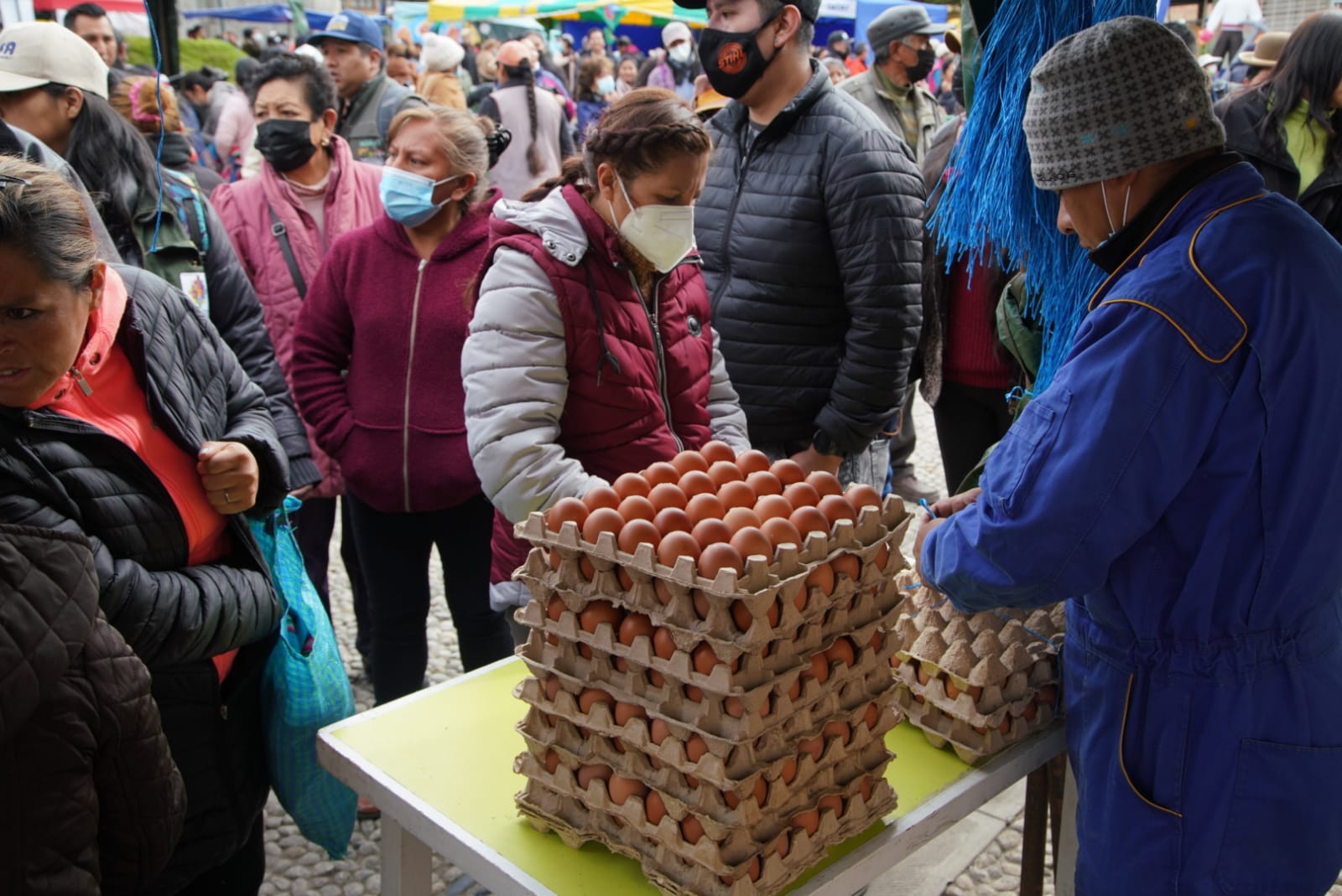Inicio de la feria del huevo, carnes, hortalizas, tubérculos y frutas, que se realiza en la plaza Alonso de Mendoza, organizado por Ministerio de Desarrollo Rural y Tierras. Fotos: Jorge Mamani
