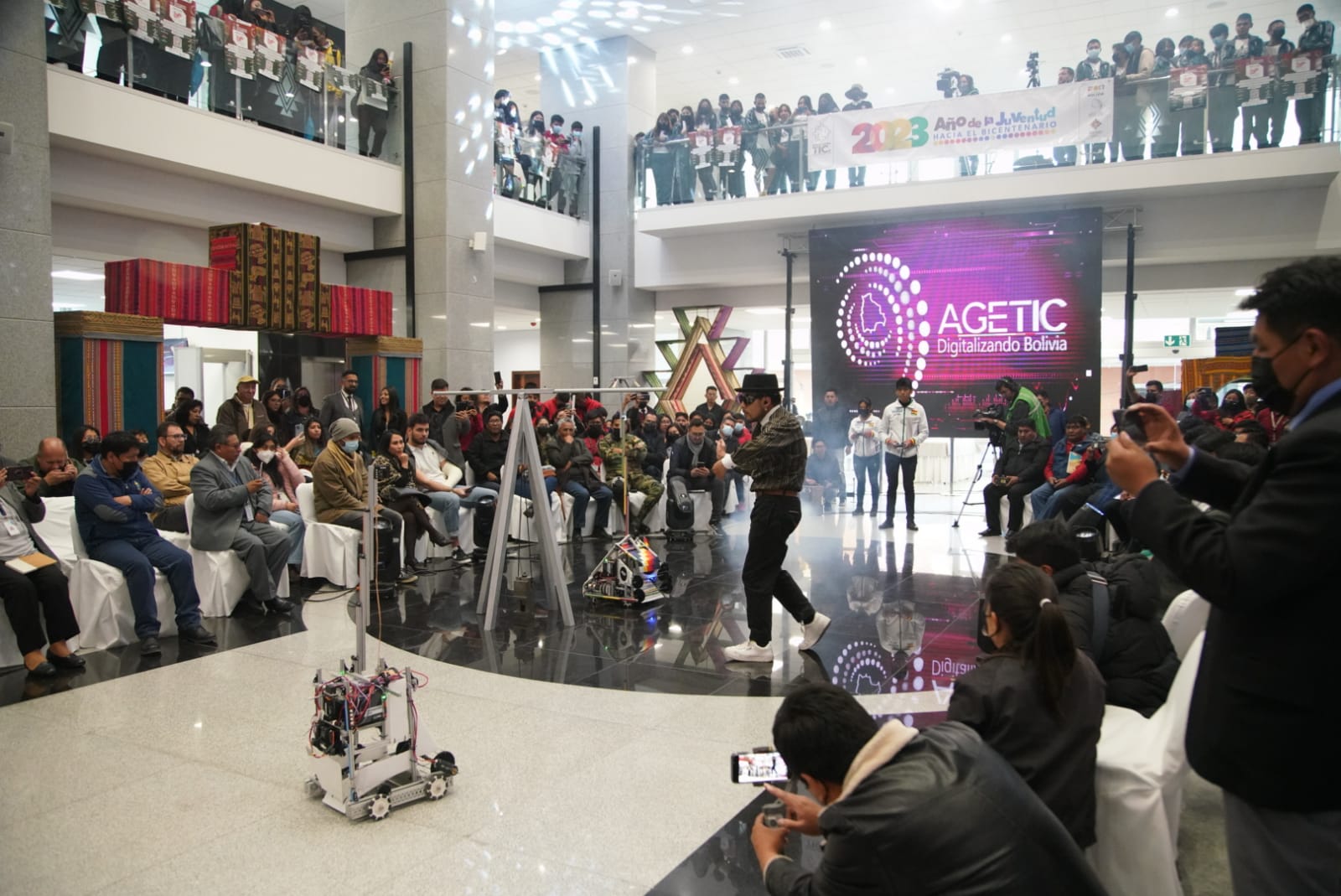 La Agencia de Gobierno Electrónico y Tecnologías de Información y Comunicación (AGETIC), realizo el acto de lanzamiento de la convocatoria, First Global Bolivia rumbo al First Global Challenge Singapur 2023. Fotos: Jorge Mamani