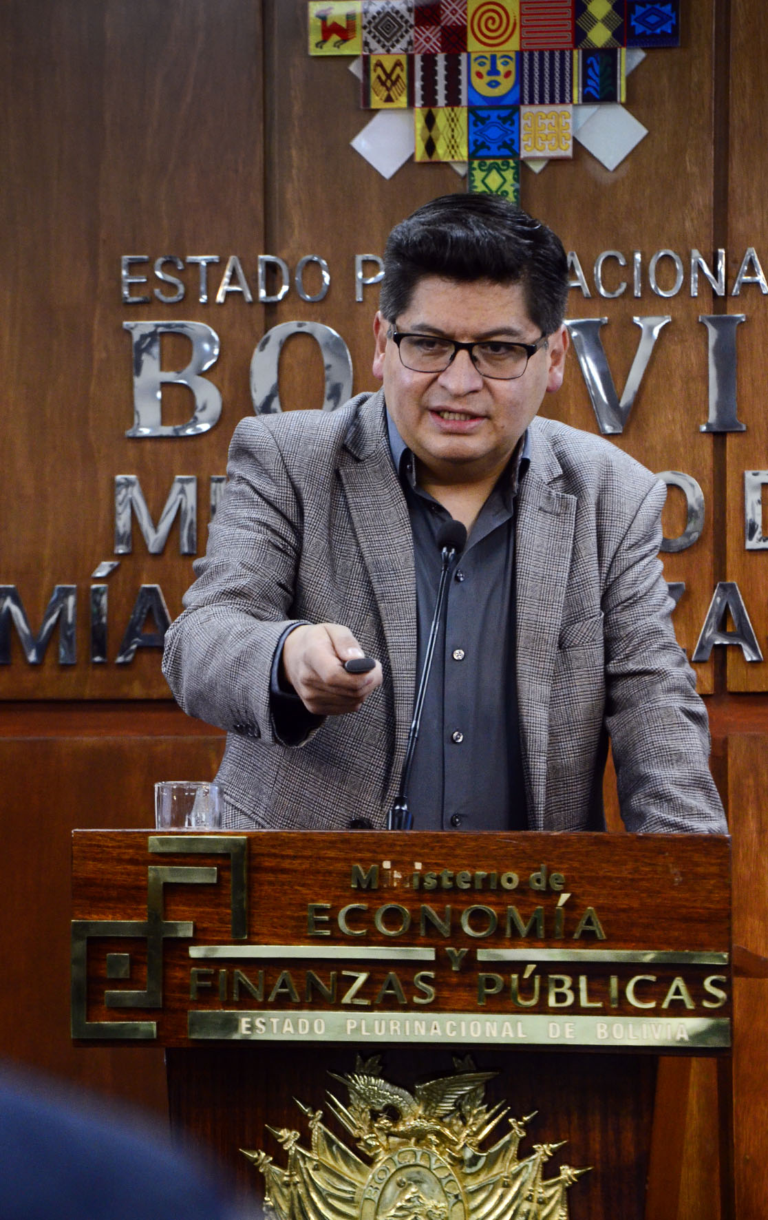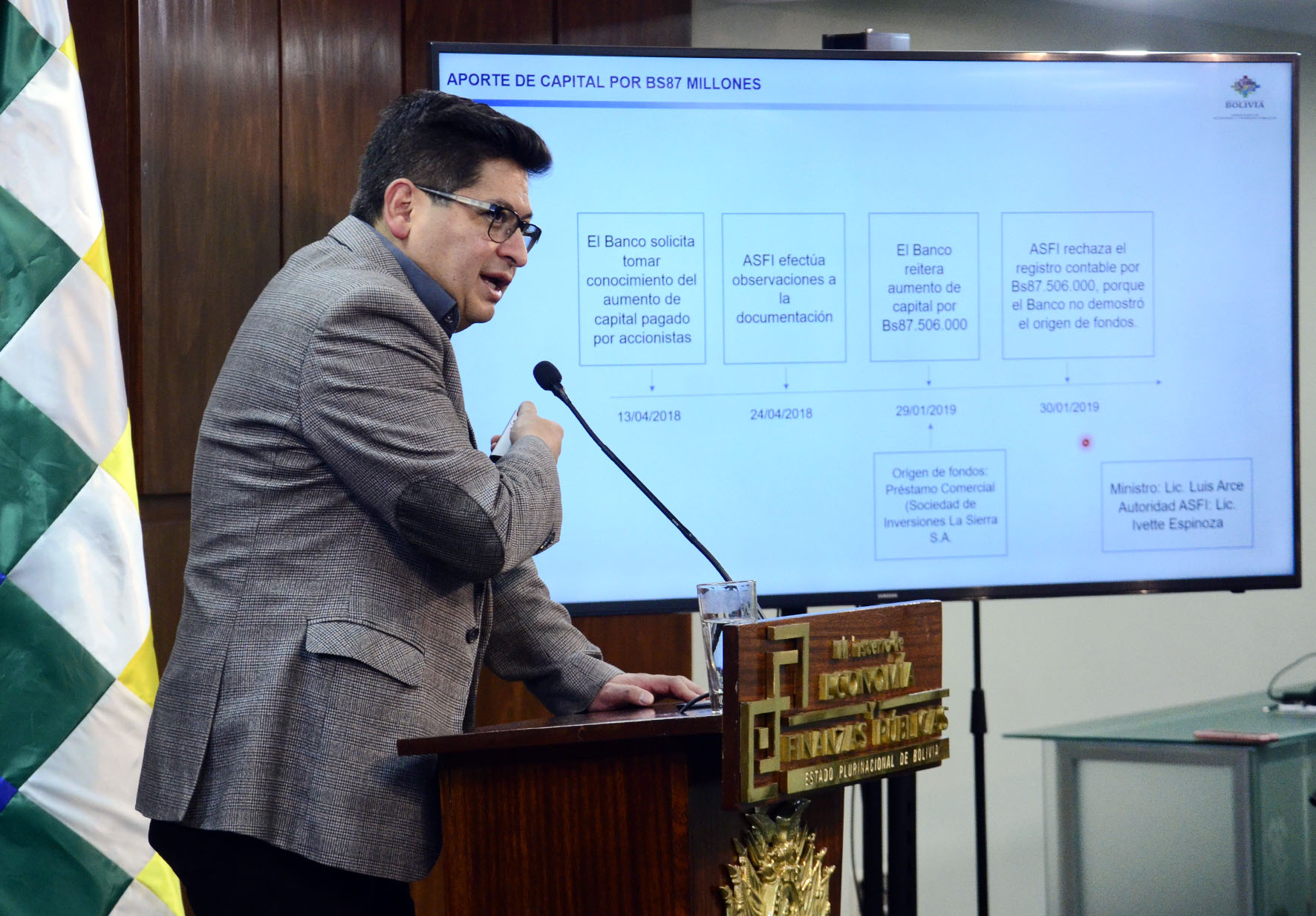 El ministro de Economía y Finanzas Públicas, Marcelo Montenegro en conferencia de prensa Informa sobre la capitalización del Banco Fassil en el año 2020. Fotos: Freddy Barragán