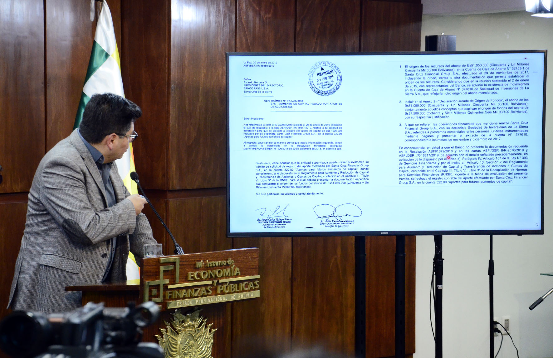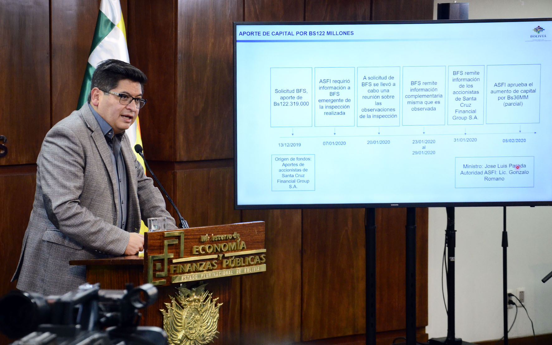 Ministro de Economía y Finanzas Públicas, Marcelo Montenegro informa sobre la capitalización del Banco Fassil en el año 2020