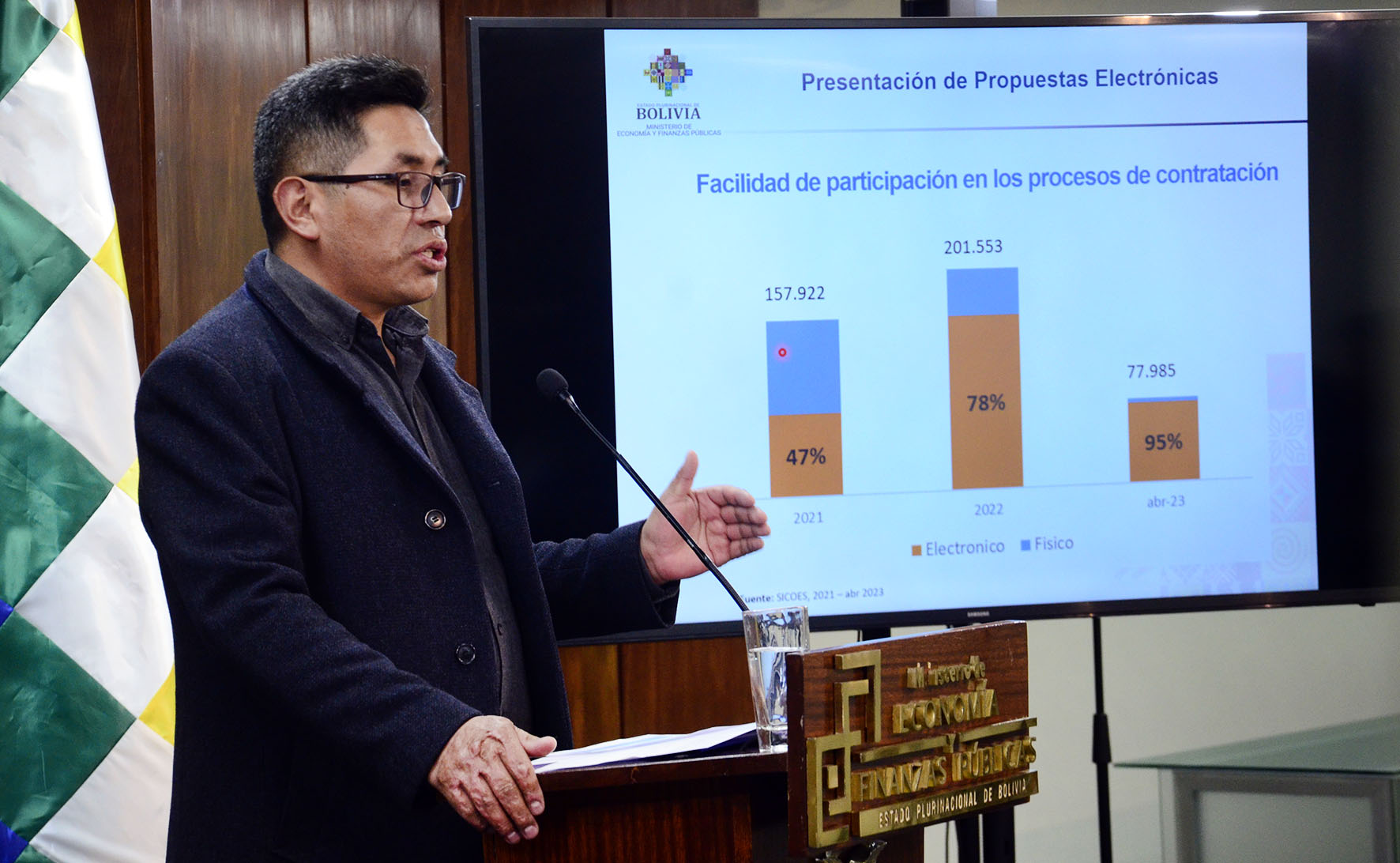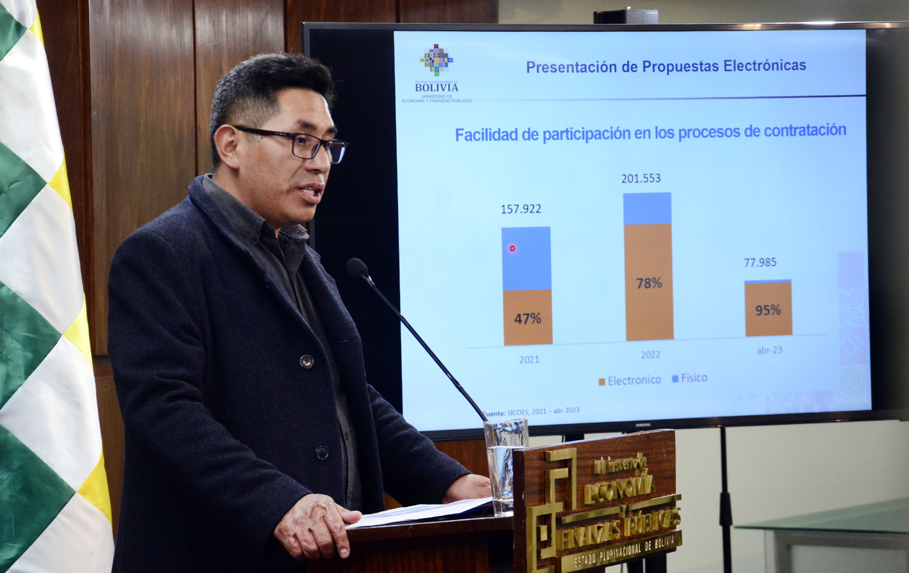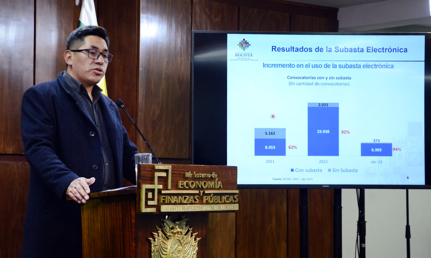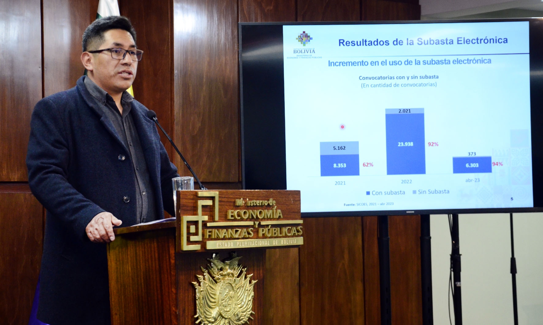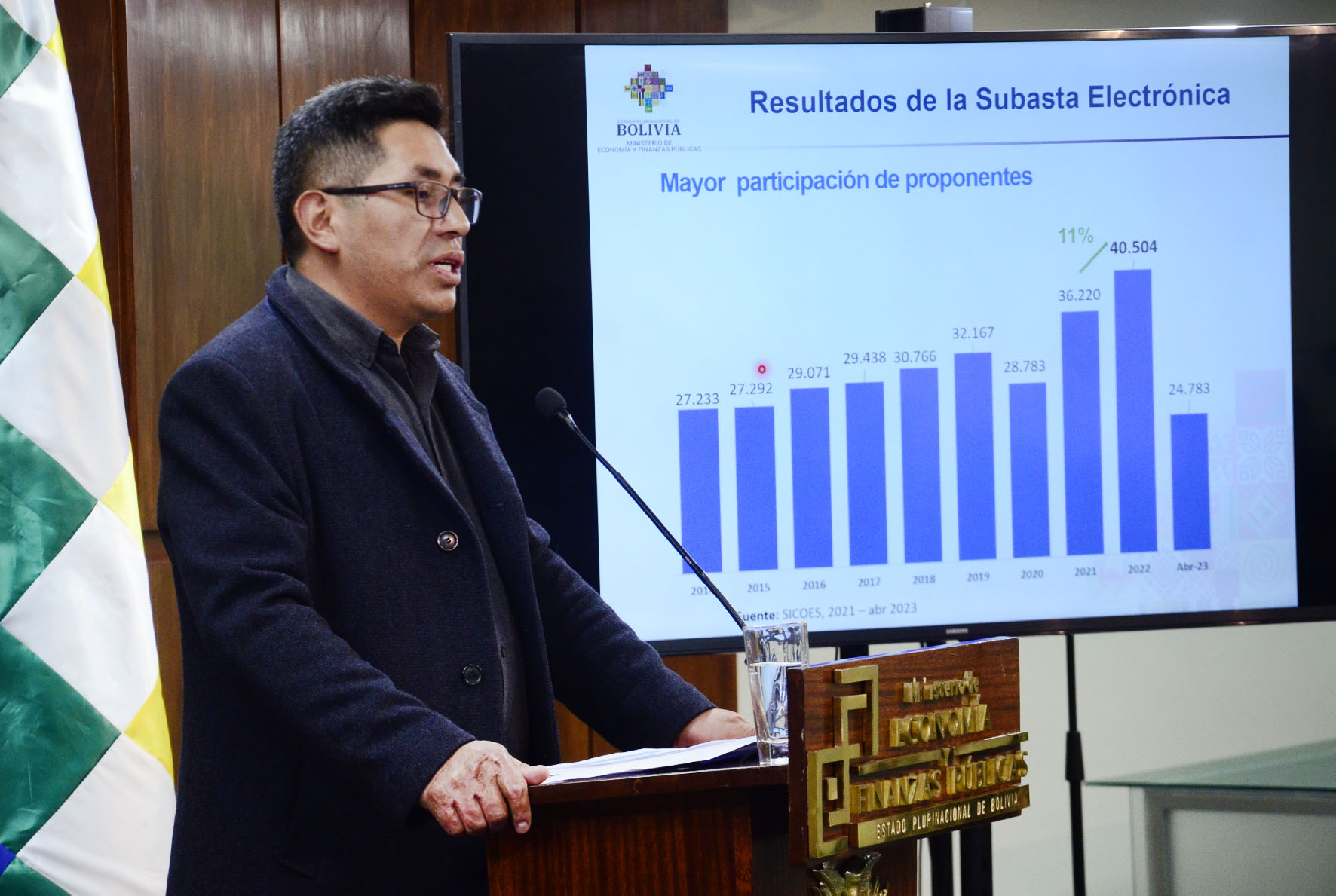 Viceministro de Presupuesto y Contabilidad Fiscal, Zenón Mamani informa sobre los resultados de la Subasta Electrónica