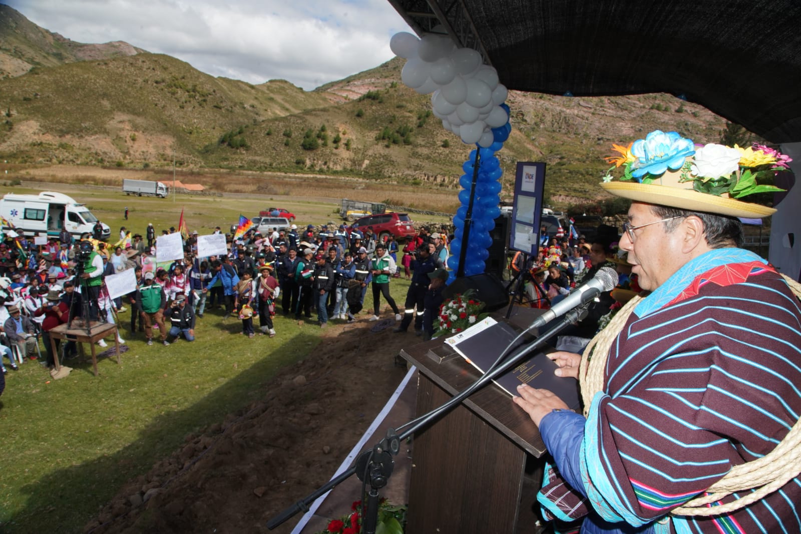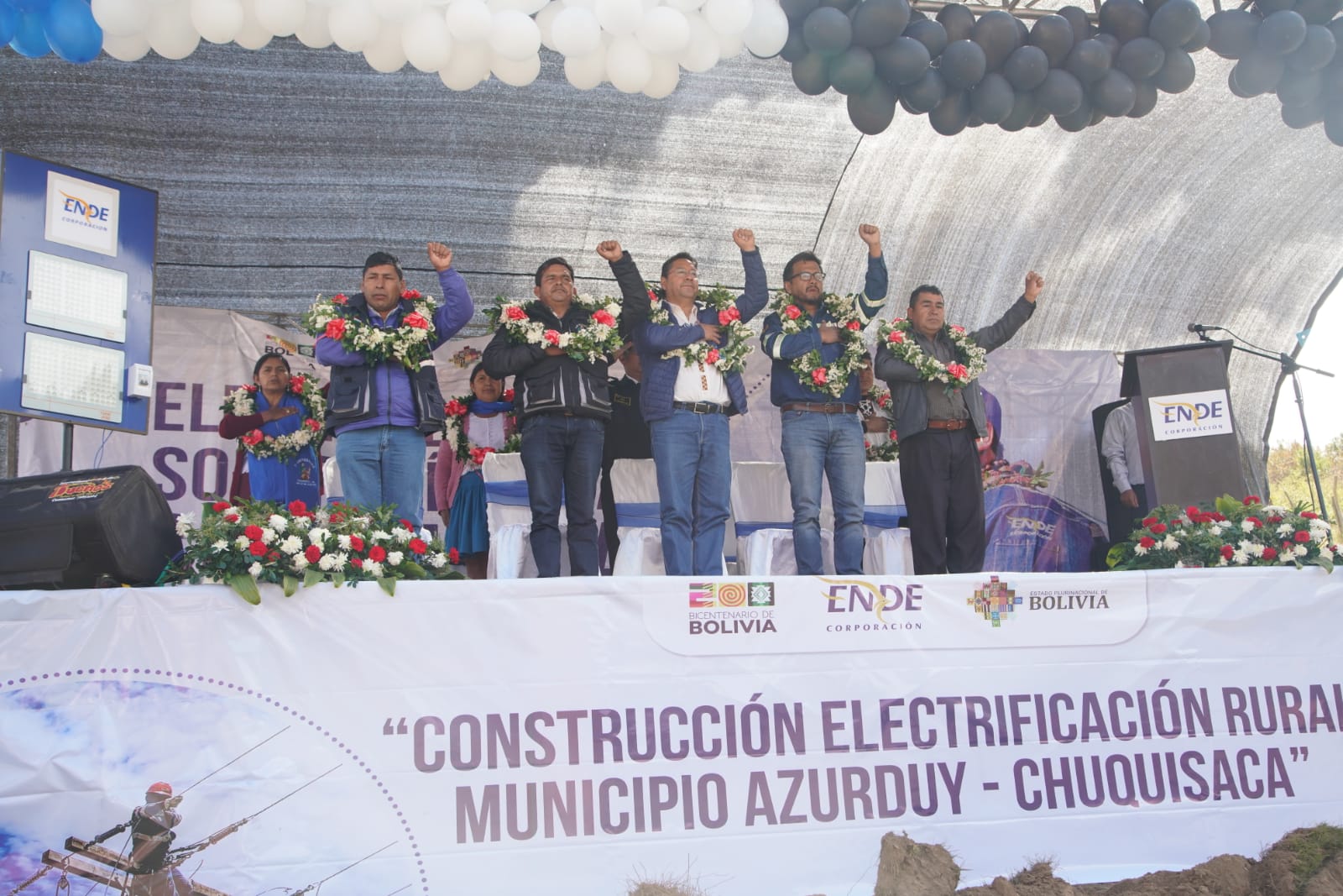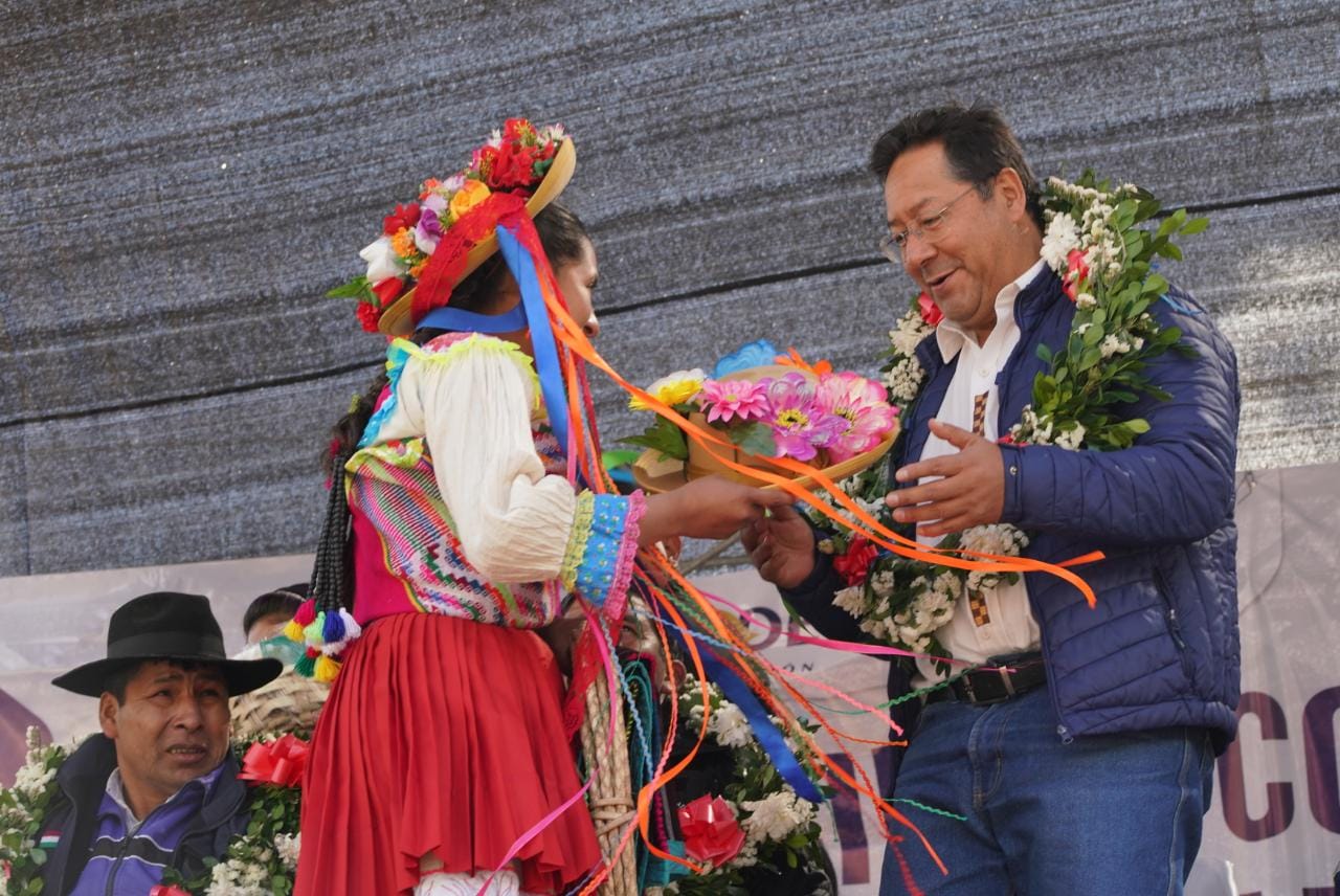 Presidente del Estado Luis Arce, entrega proyecto de electrificación rural en el municipio de Villa Azurduy, Chuquisaca. Fuente: Comunicación Presidencial