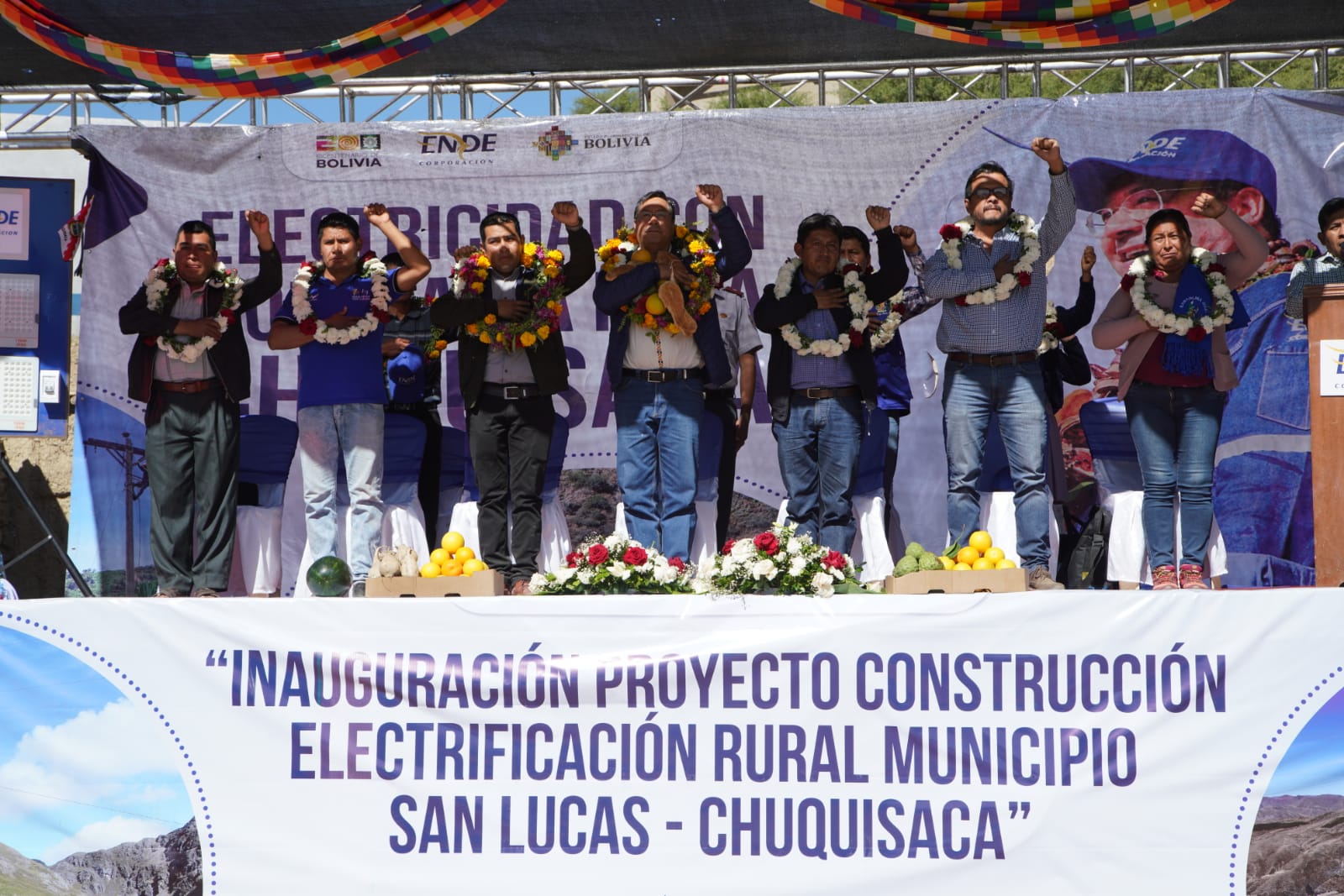 Presidente del Estado Luis Arce, entrega la construcción y ampliación del proyecto de electrificación rural en el municipio de San Lucas, Chuquisaca