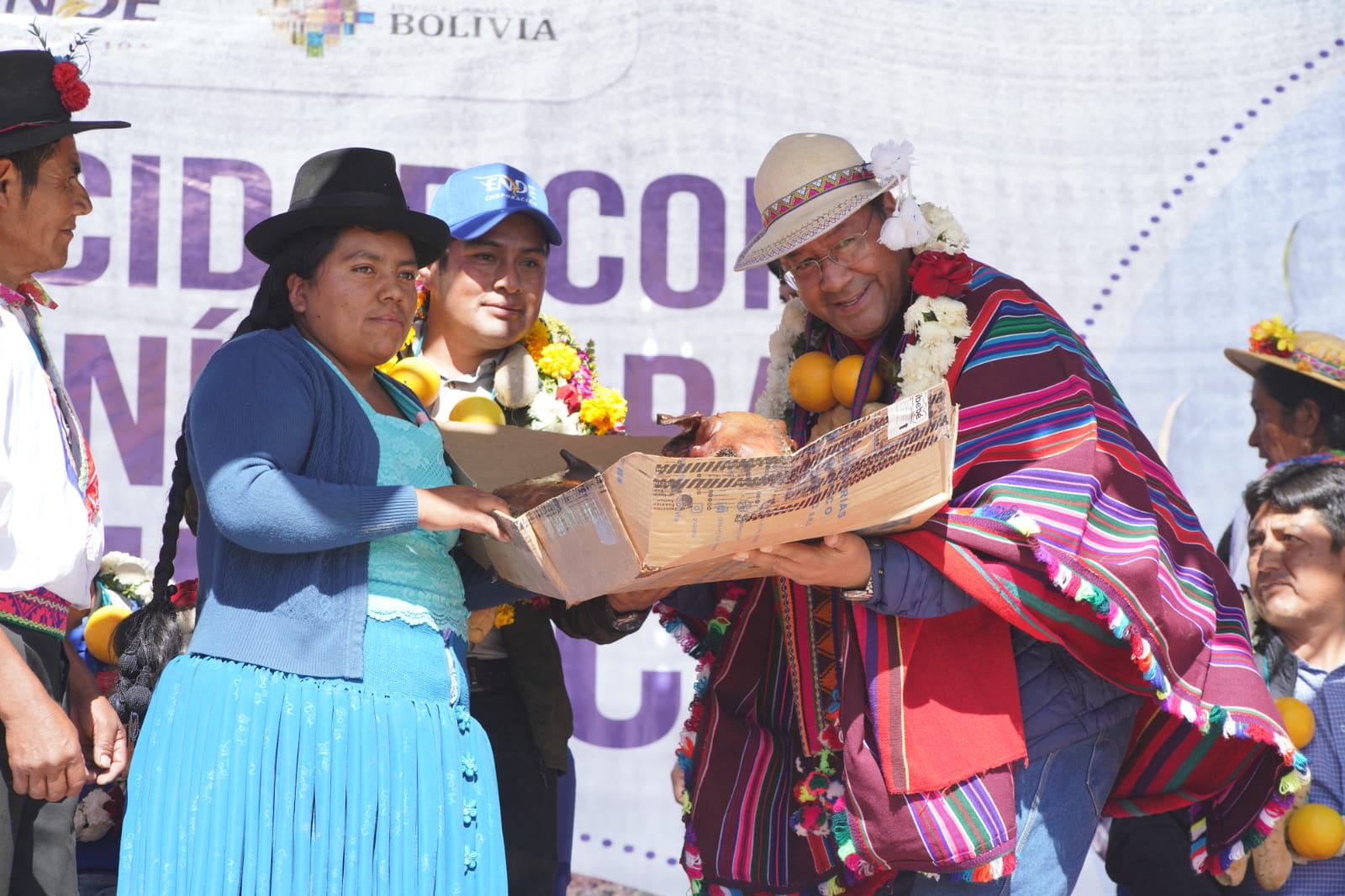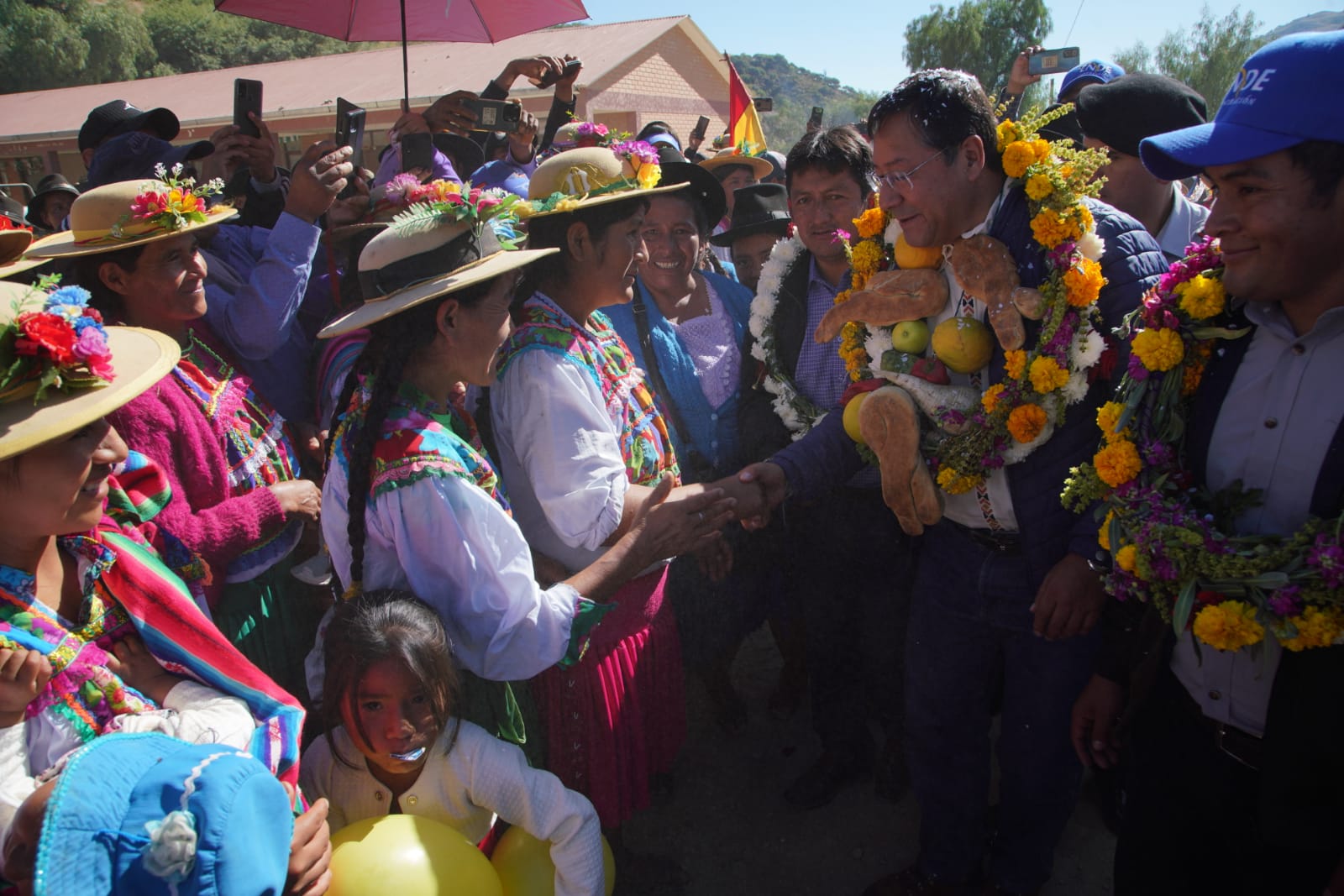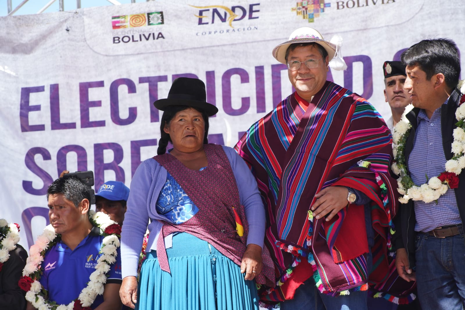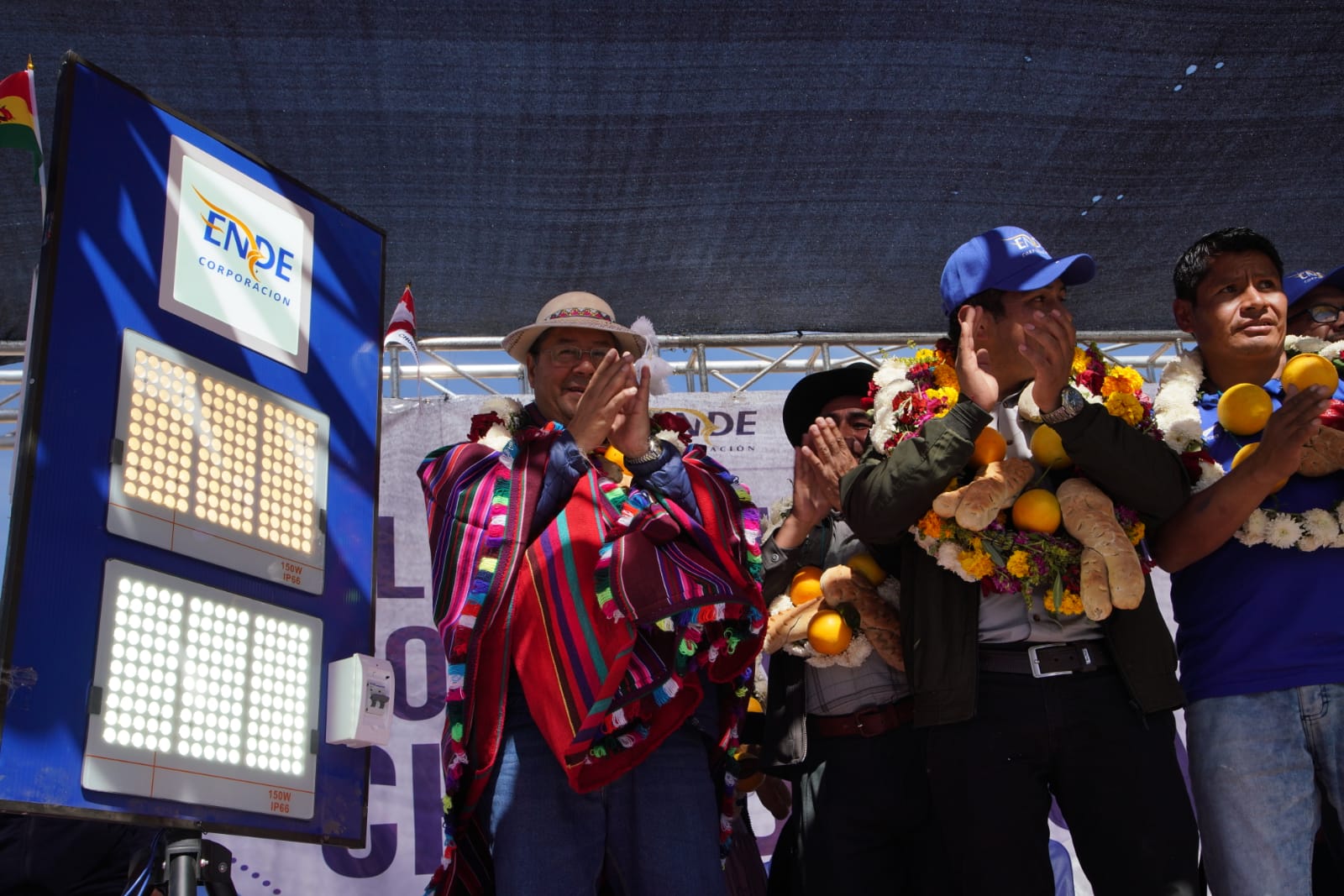 Presidente del Estado Luis Arce, entrega la construcción y ampliación del proyecto de electrificación rural en el municipio de San Lucas, Chuquisaca. Fuente: Comunicación Presidencial