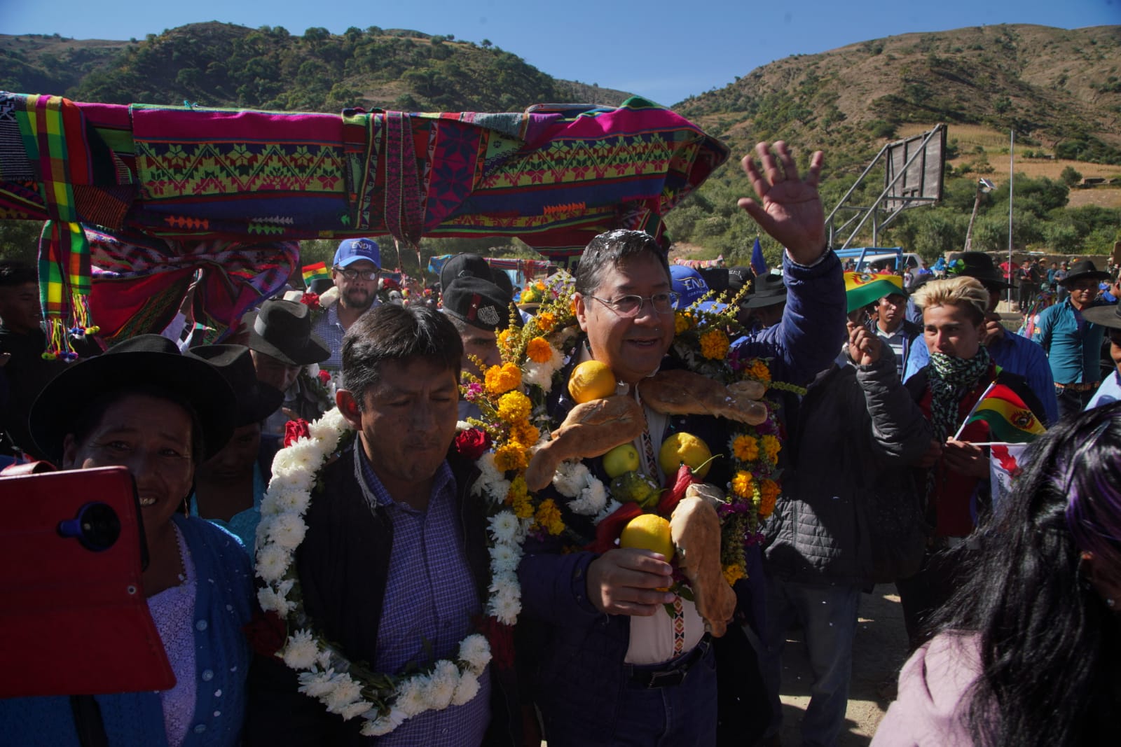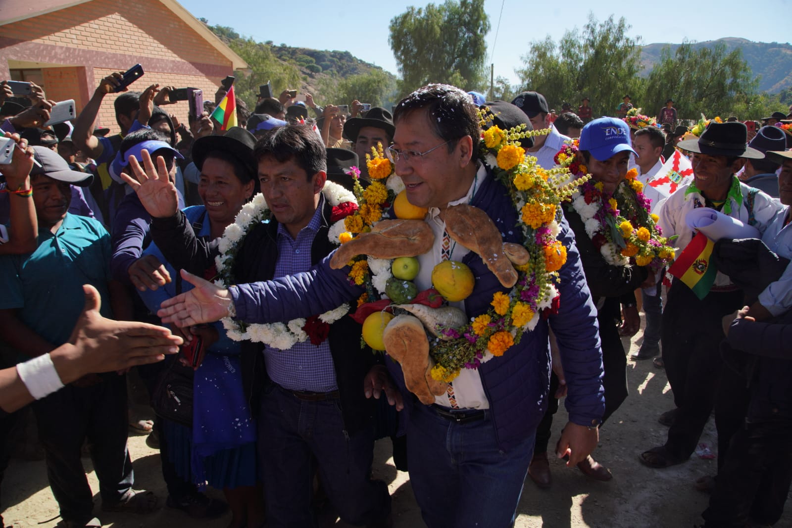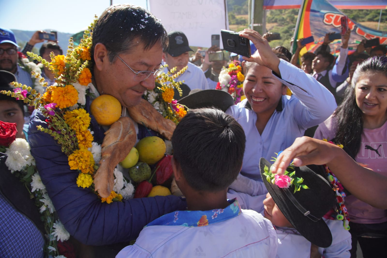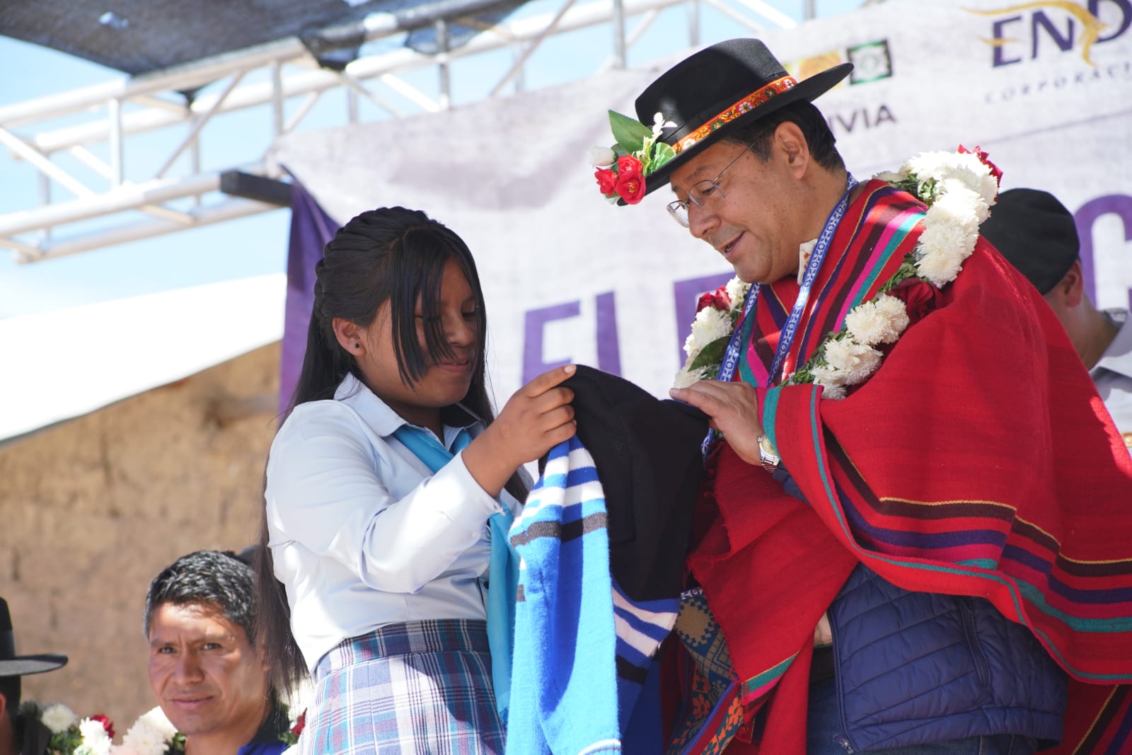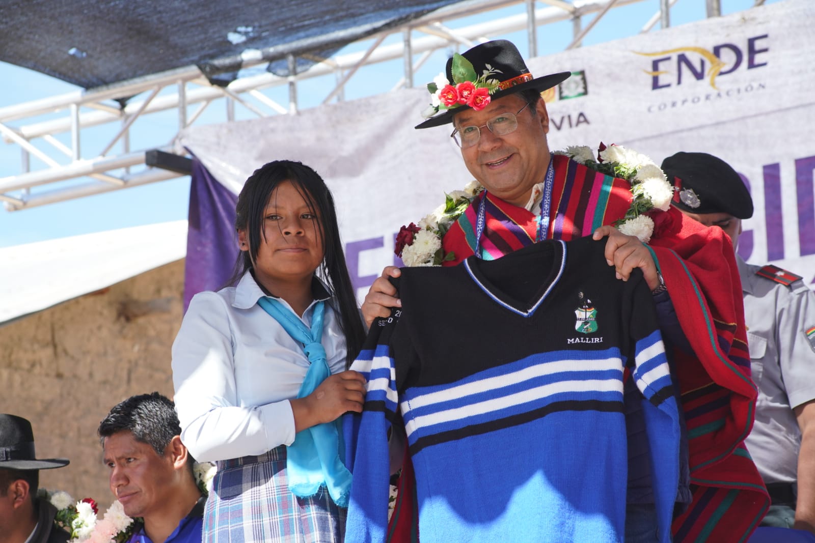 Presidente del Estado Luis Arce, entrega la construcción y ampliación del proyecto de electrificación rural en el municipio de San Lucas, Chuquisaca. Fuente: Comunicación Presidencial