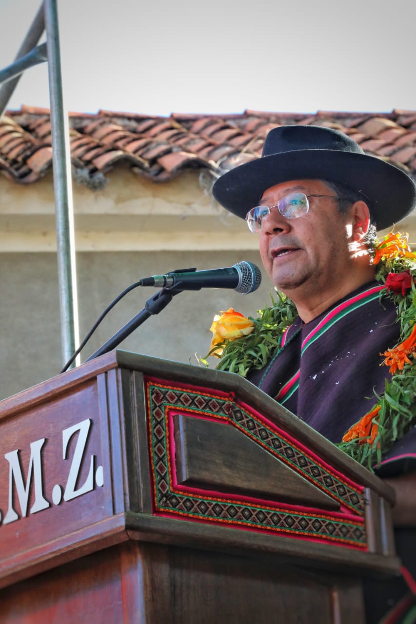 Presidente del Estado Luis Arce, entrega Sistema de Alcantarillado Sanitario y una Planta de Tratamiento de Aguas Residuales en Zudáñez, Chuquisaca. Fuente: Comunicación Presidencial