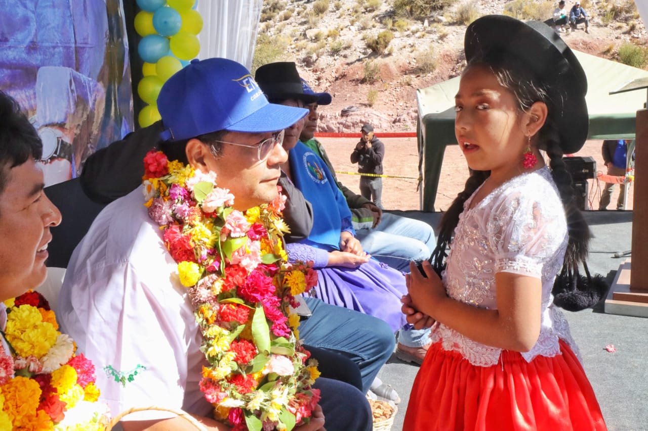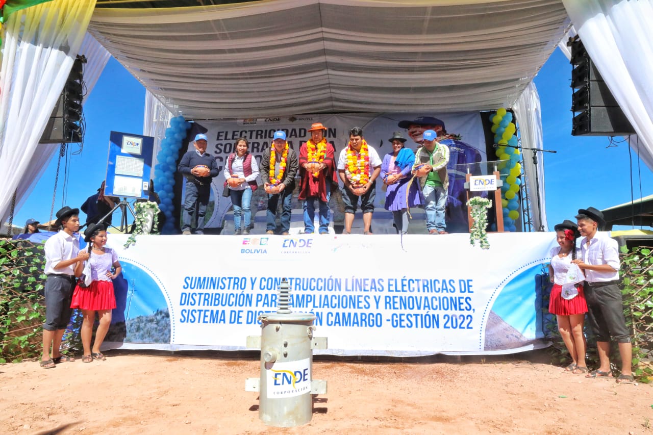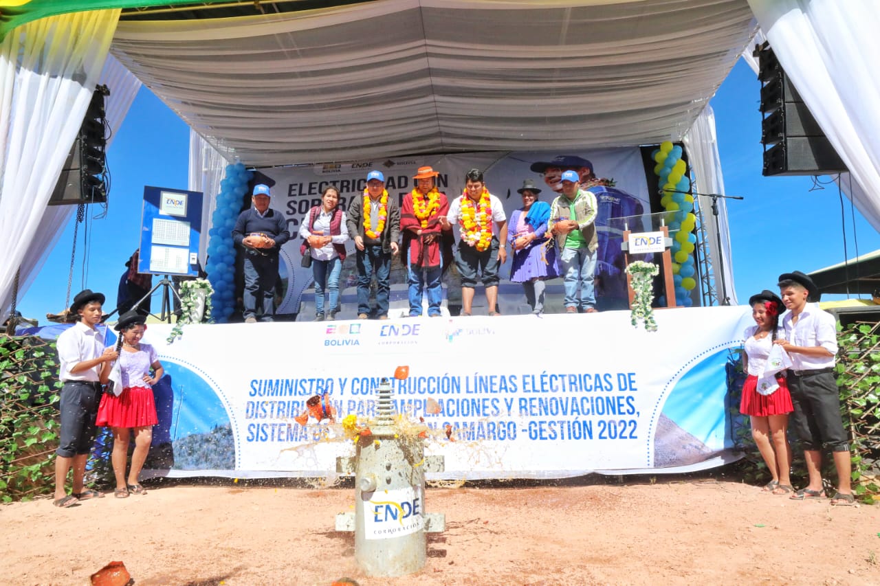 Presidente del Estado Luis Arce entrega Sistema de Distribución de Líneas Eléctricas en el municipio de Camargo, Chuquisaca