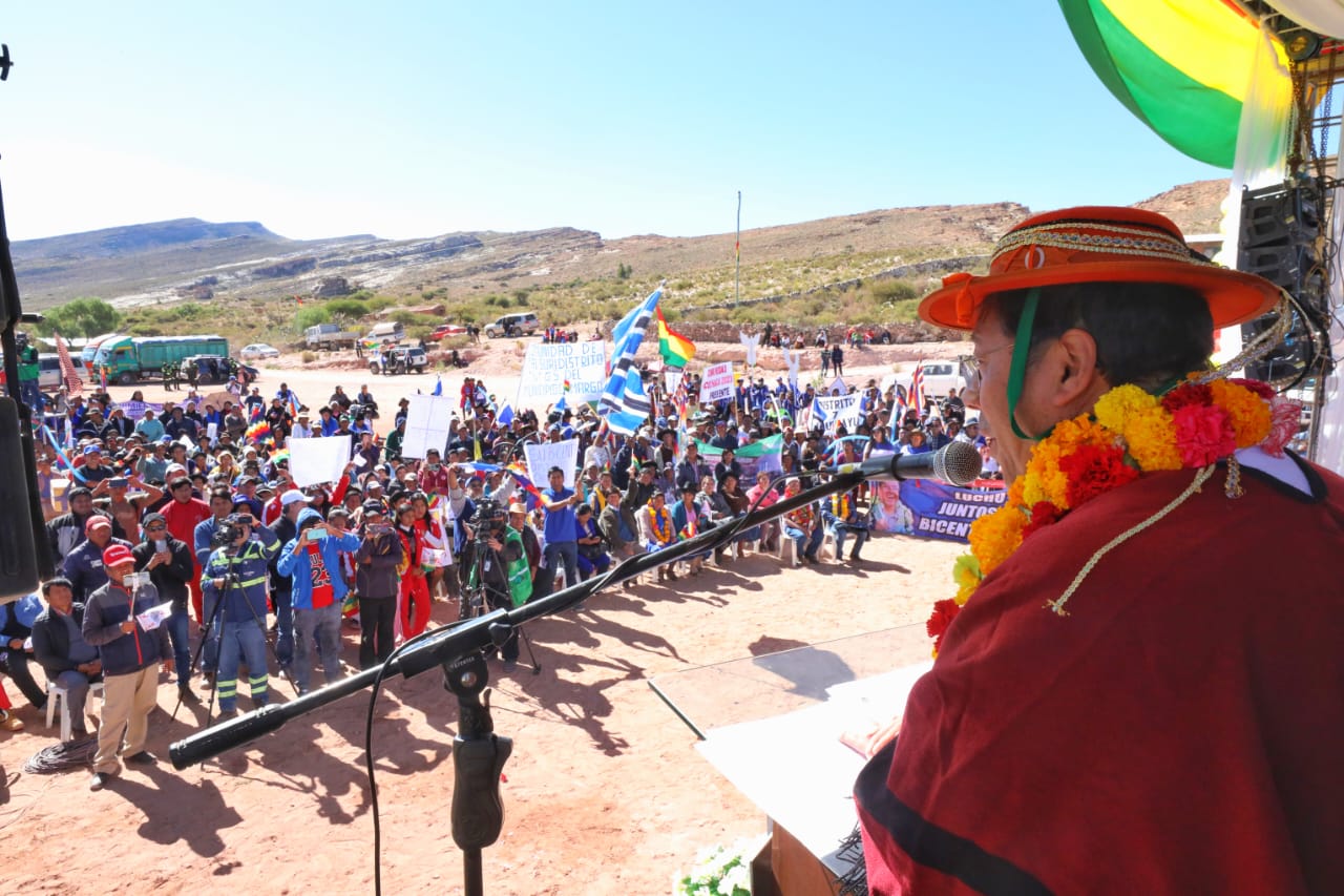 Presidente del Estado Luis Arce entrega Sistema de Distribución de Líneas Eléctricas en el municipio de Camargo, Chuquisaca. Fuente: Comunicación Presidencial