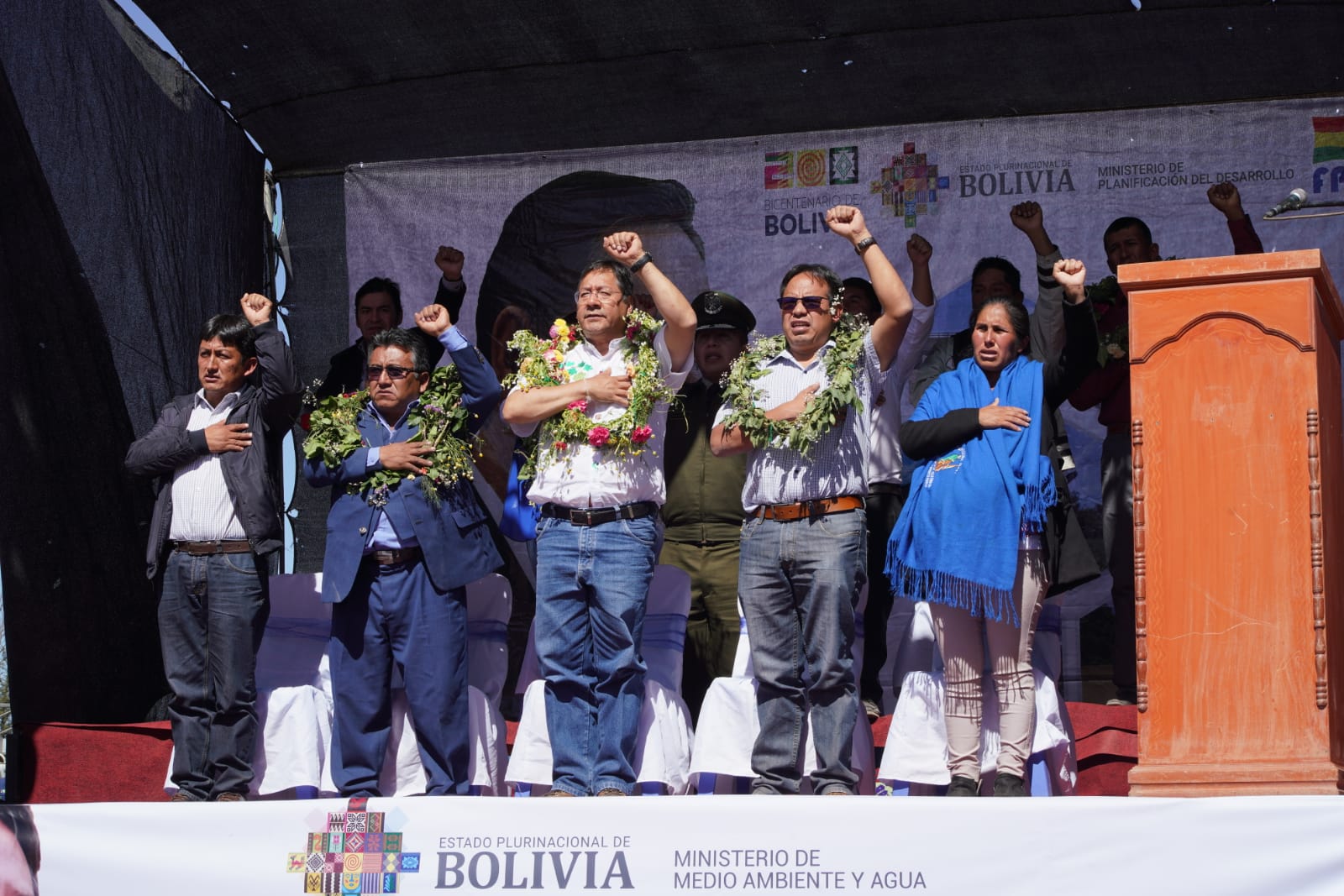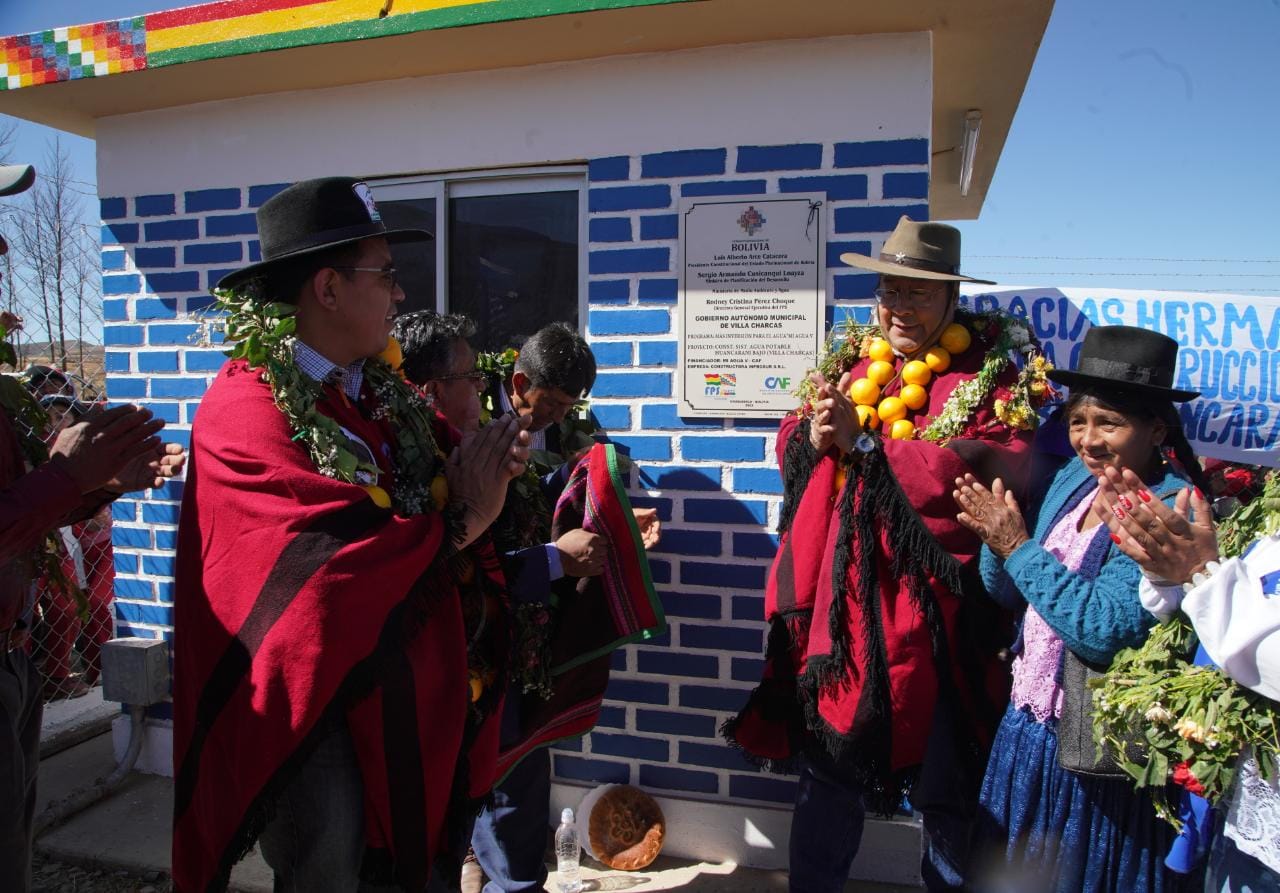 Presidente del Estado Luis Arce entrega un Sistema de Agua Potable en Villa Charcas, Chuquisaca. Fuente: Comunicación Presidencial