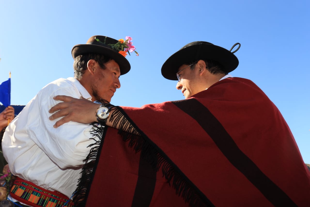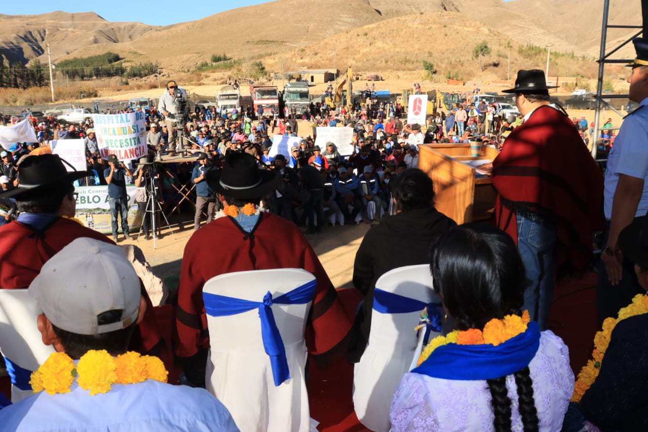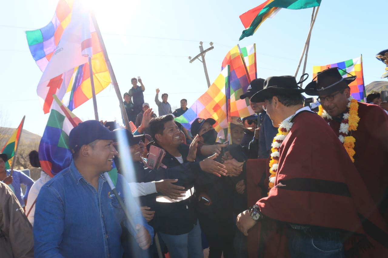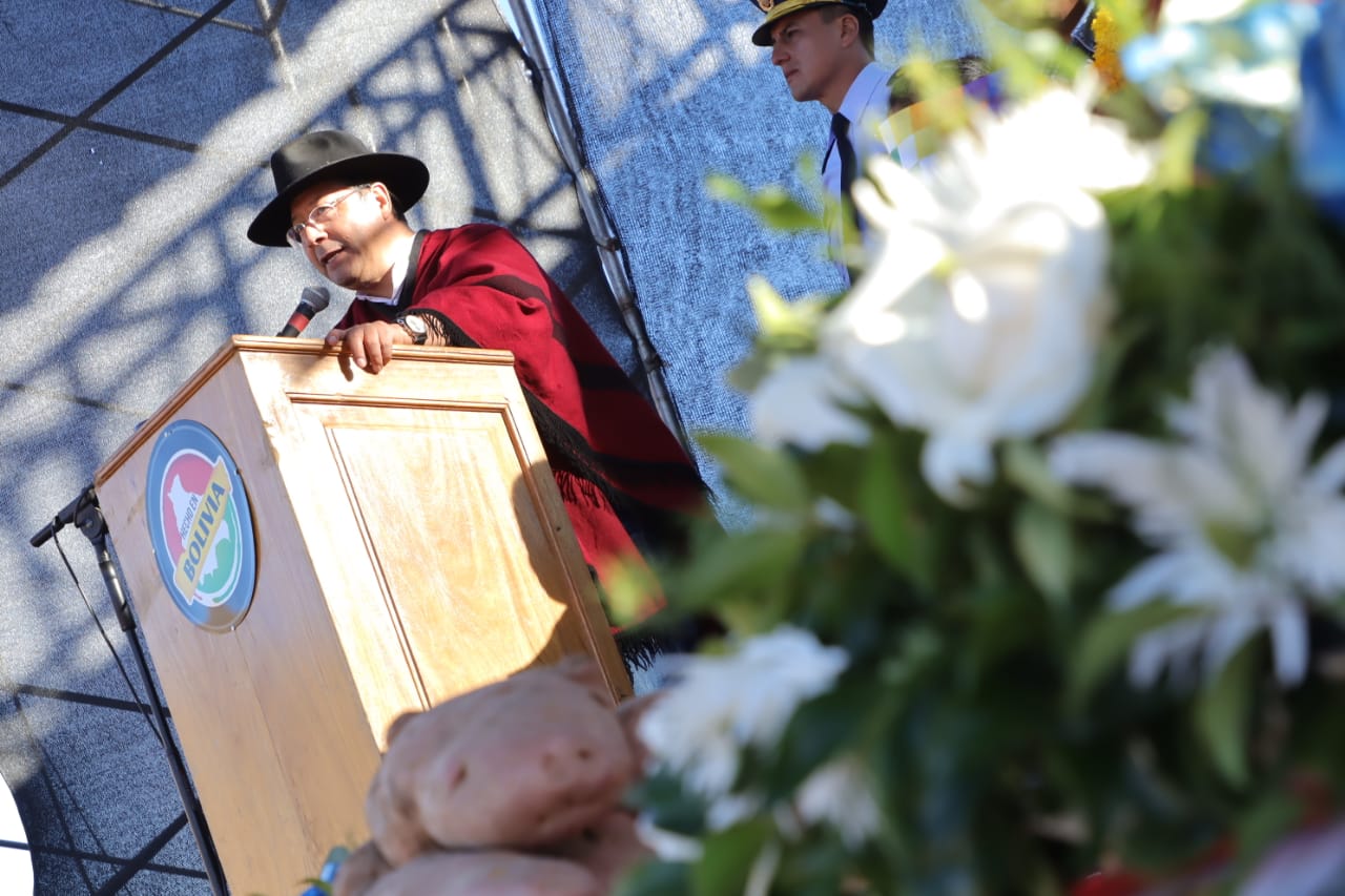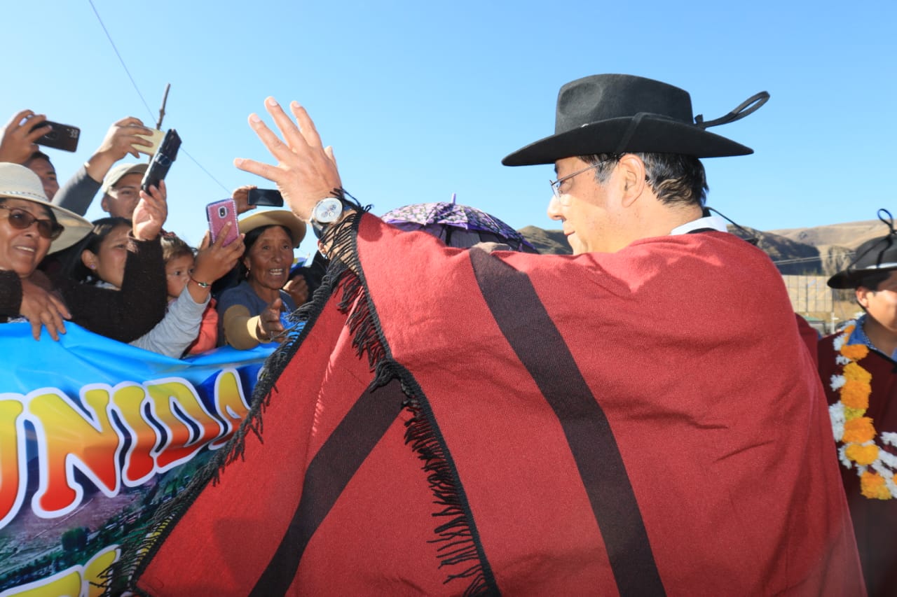 Presidente del Estado Luis Arce coloca en Incahuasi la piedra fundamental para iniciar la construcción de una Planta Industrial de Procesamiento de Papa. Fuente: Comunicación Presidencial