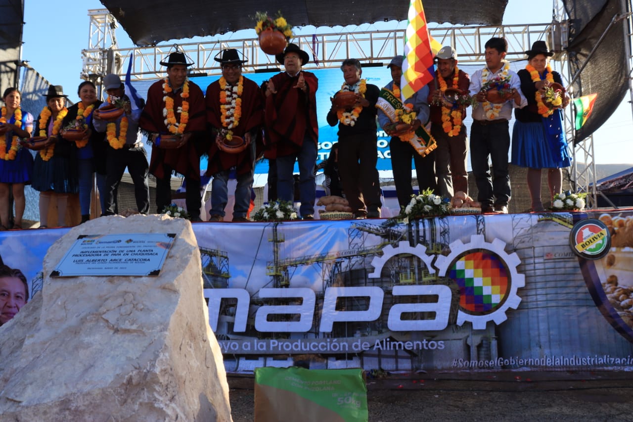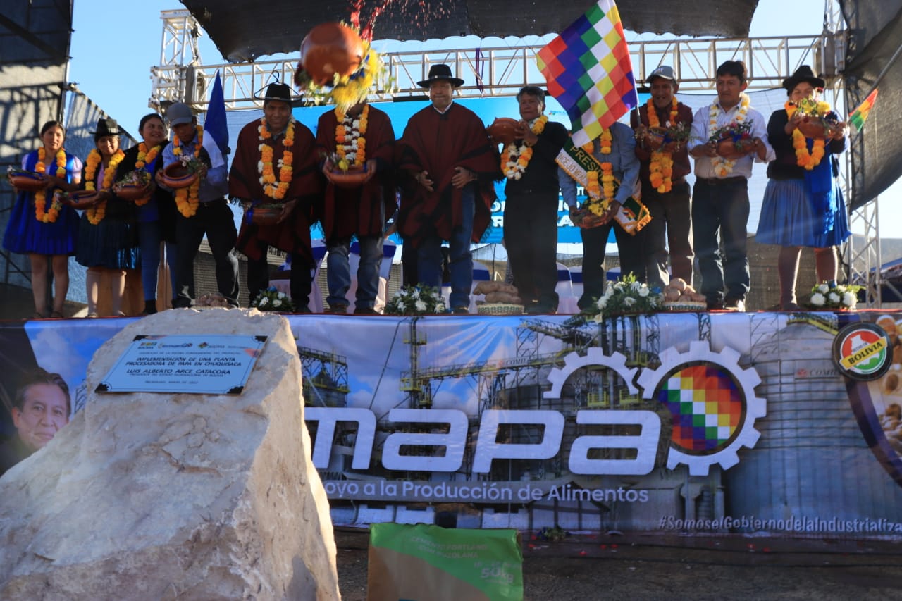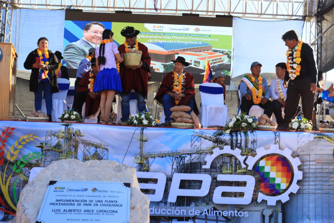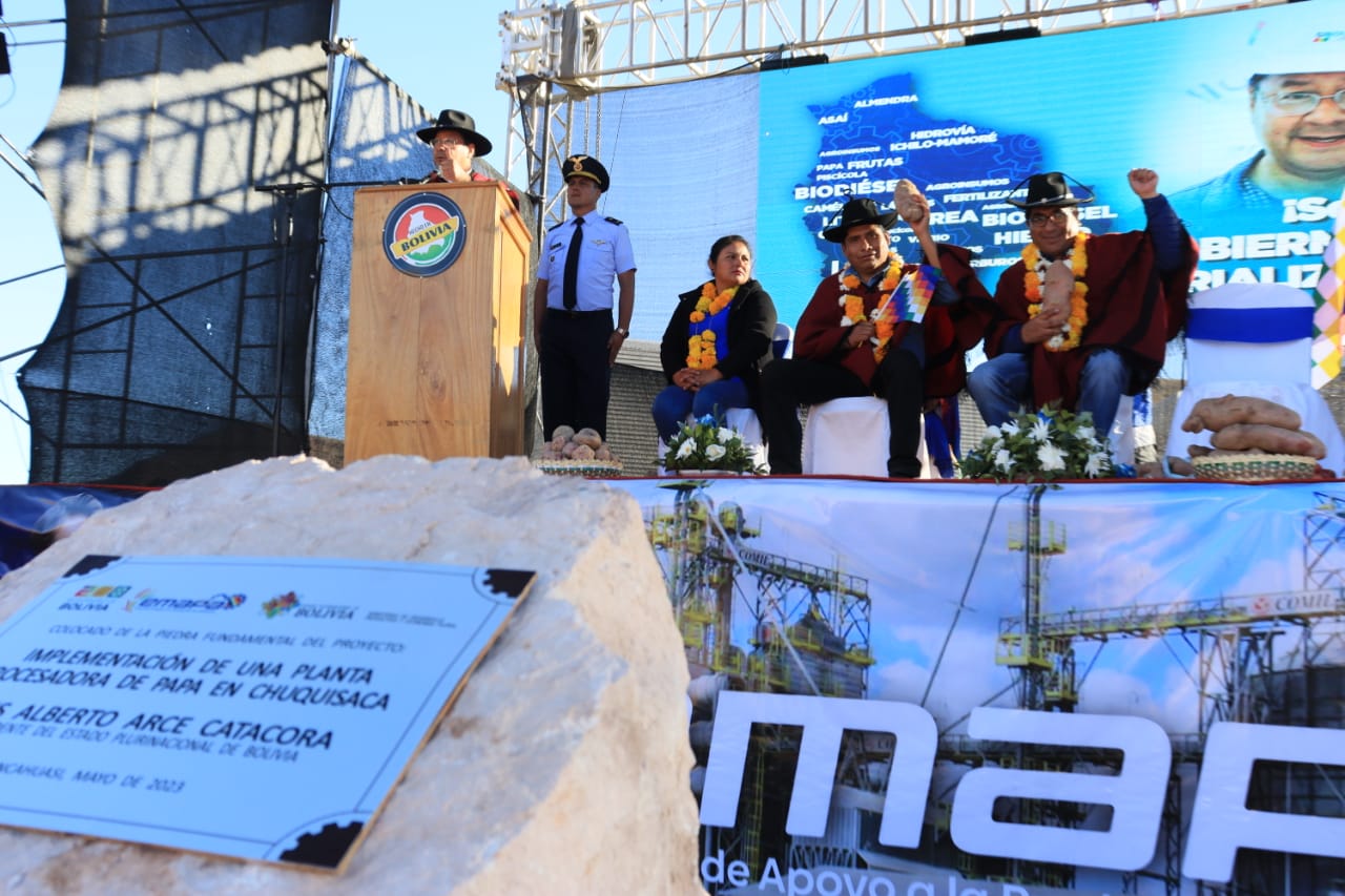 Presidente del Estado Luis Arce coloca en Incahuasi la piedra fundamental para iniciar la construcción de una Planta Industrial de Procesamiento de Papa