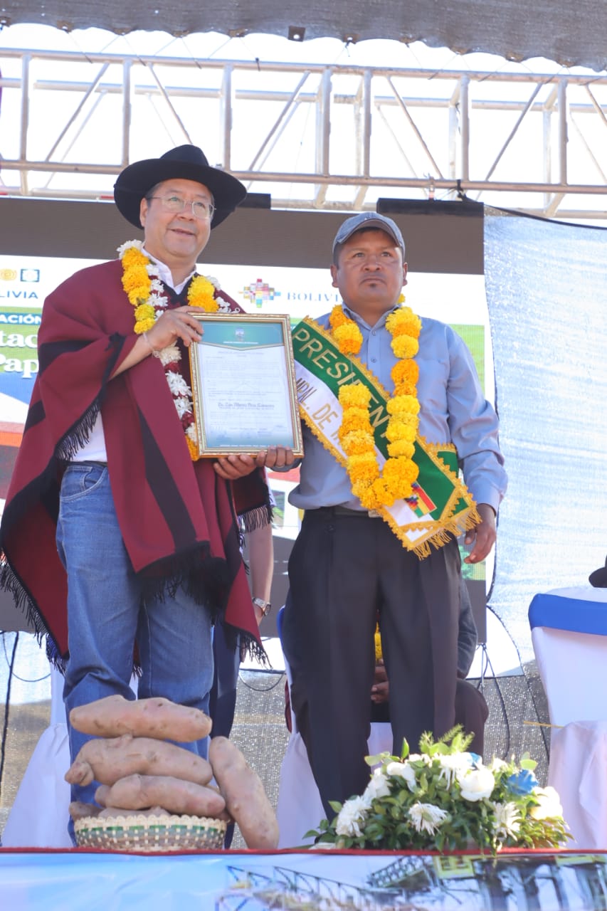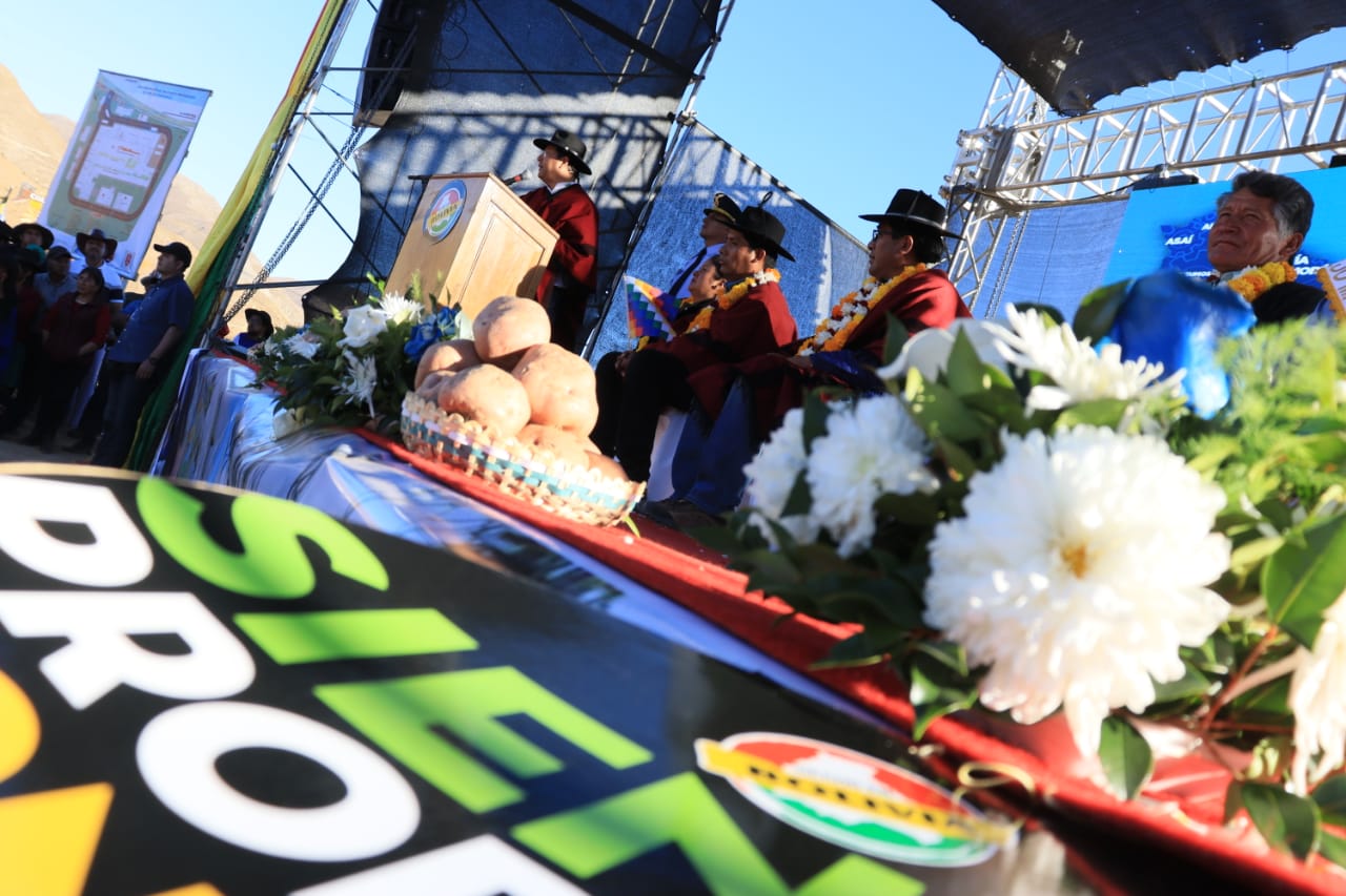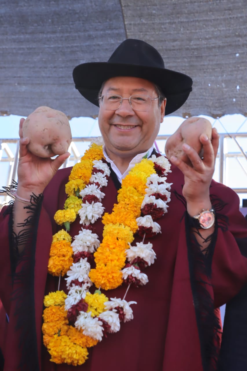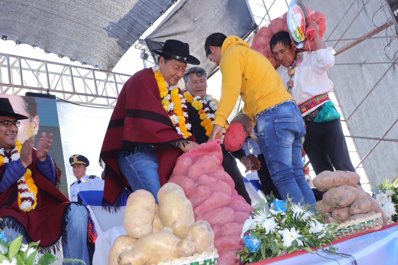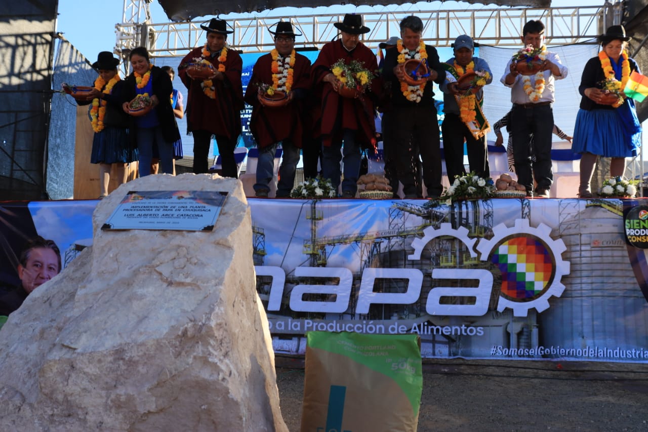Presidente del Estado Luis Arce coloca en Incahuasi la piedra fundamental para iniciar la construcción de una Planta Industrial de Procesamiento de Papa