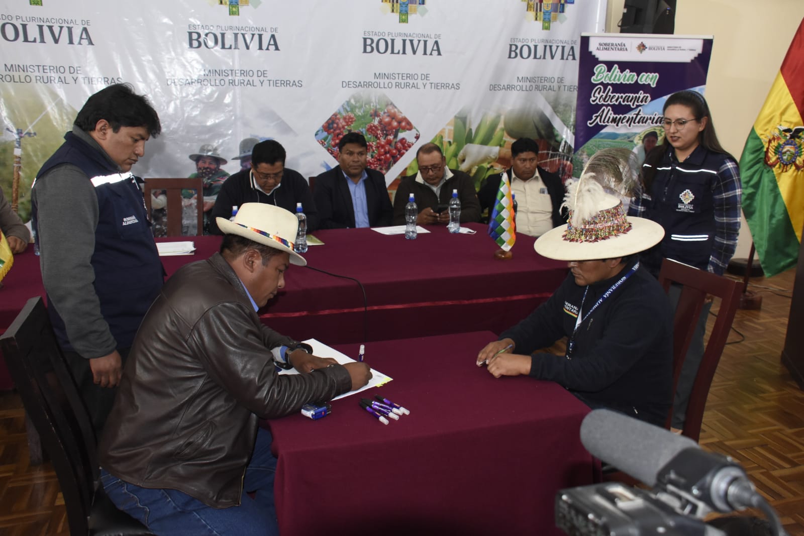 El ministerio de Desarrollo Rural y Tierras realiza la suscripción de convenios con cinco municipios de los departamentos de La Paz, Oruro, Potosí y Cochabamba para construir silos de almacenamiento de semilla de papa certificada. Fotos: Gonzalo Jallasi