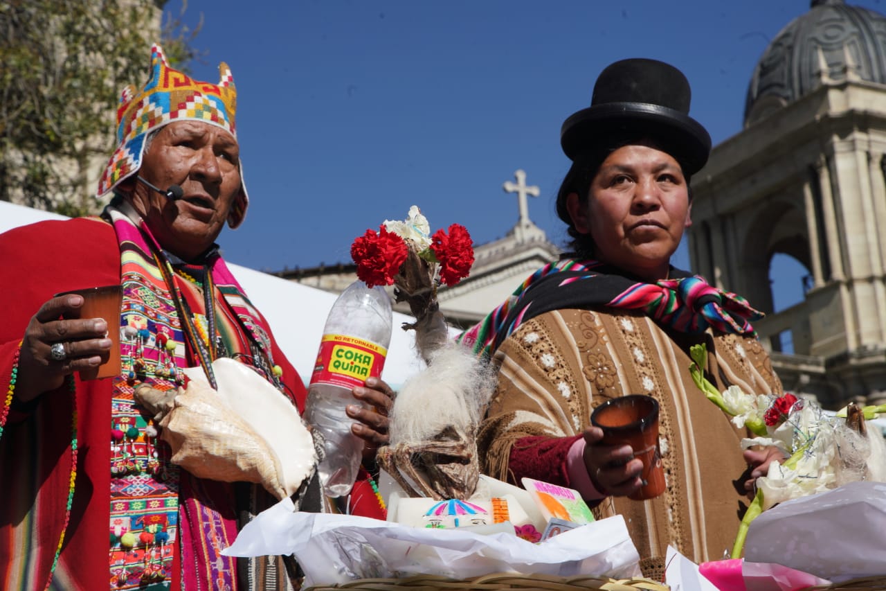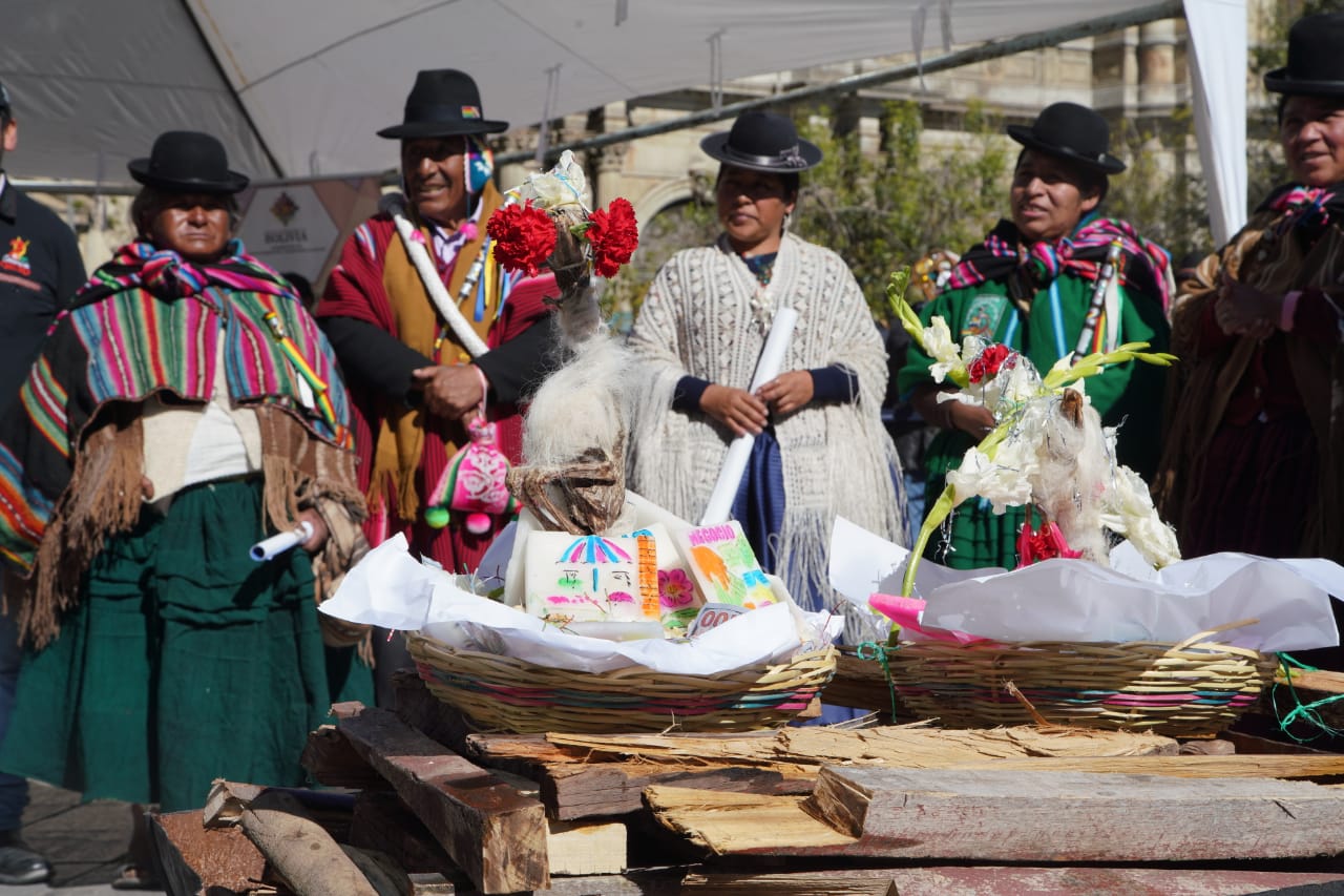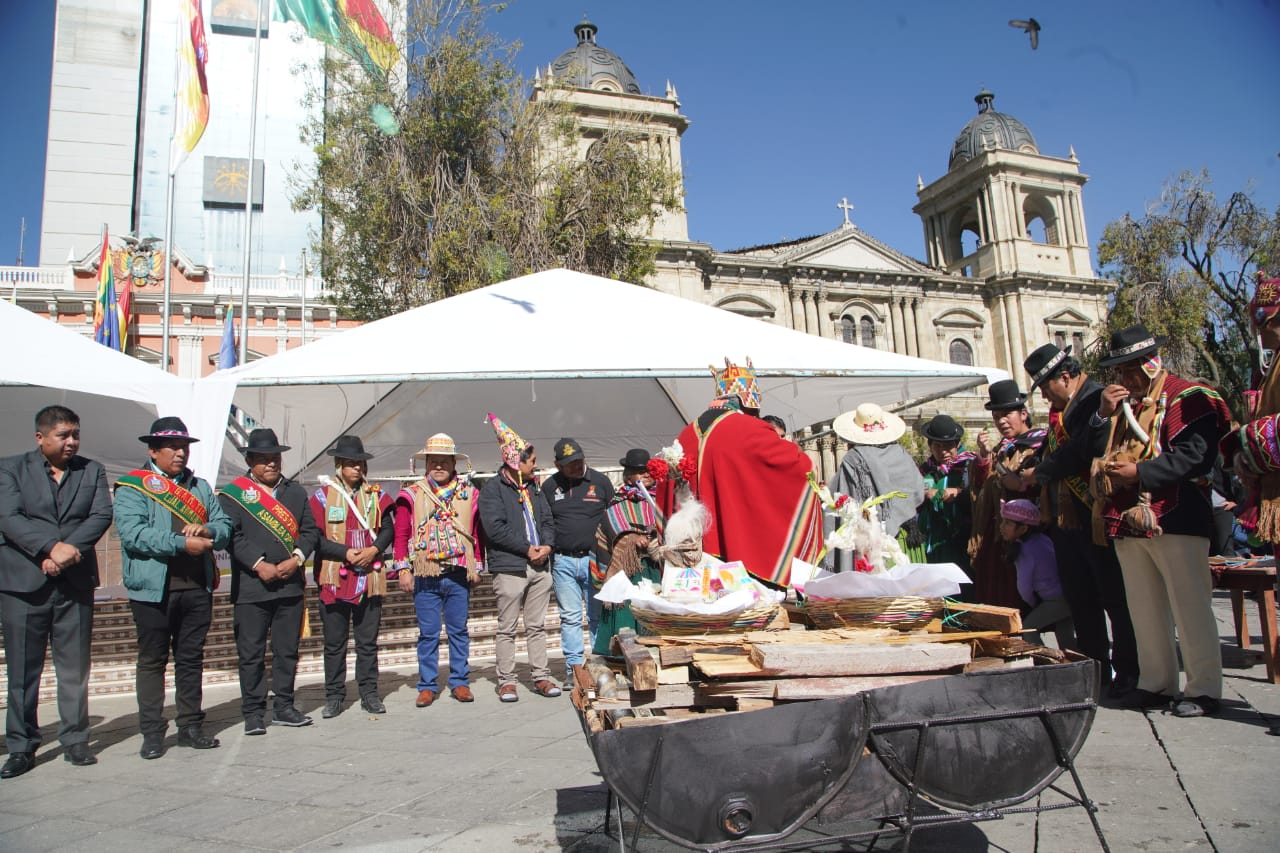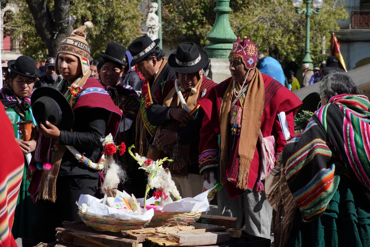 El Ministerio de Culturas, Descolonización y Despatriarcalización, realiza el acto de lanzamiento del Año Nuevo Andino Amazónico Chaqueño "WILLKAKUTI" 5531 Solsticio de invierno, en Plaza Murillo. Fotos: Jorge Mamani