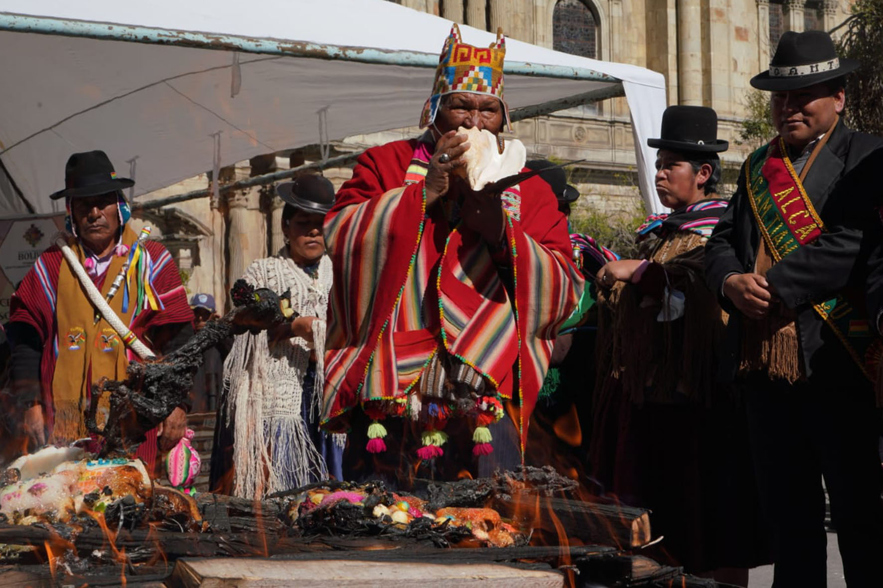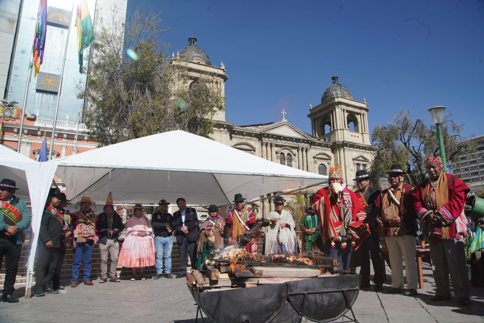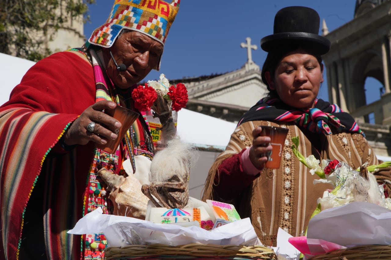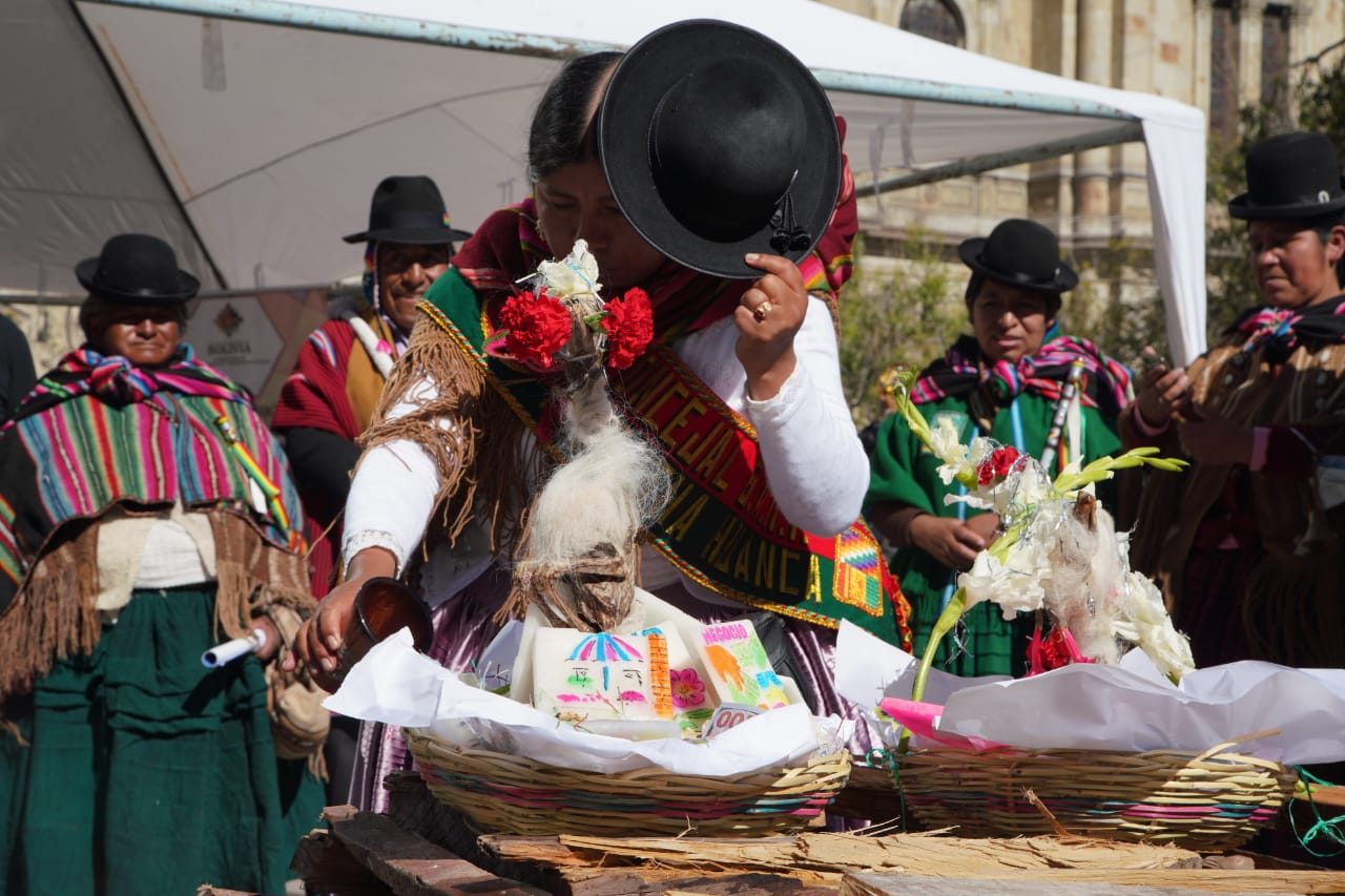 El Ministerio de Culturas, Descolonización y Despatriarcalización, realiza el acto de lanzamiento del Año Nuevo Andino Amazónico Chaqueño "WILLKAKUTI" 5531 Solsticio de invierno, en Plaza Murillo. Fotos: Jorge Mamani