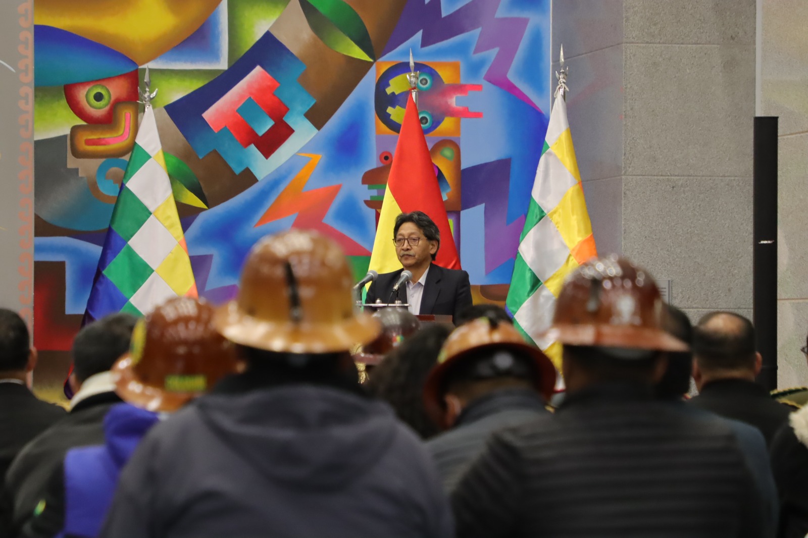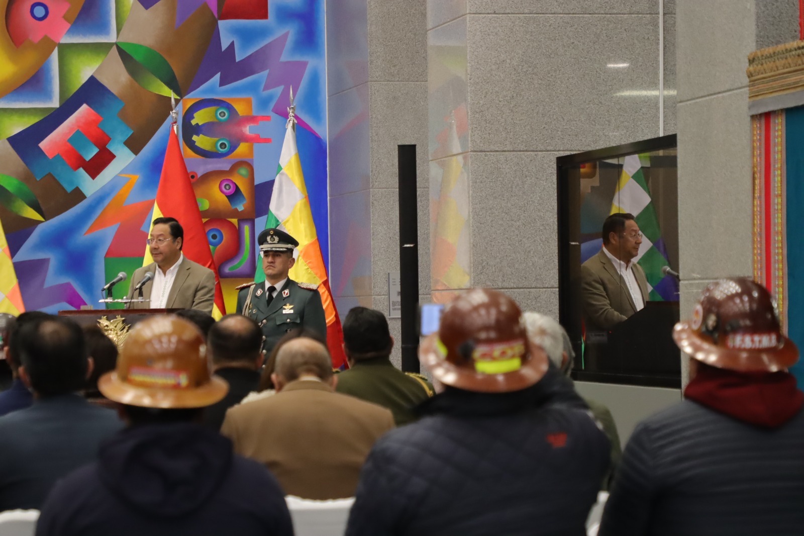 Presidente del Estado Luis Arce posesiona a los nuevos ministros de Salud y de Minería, en Casa Grande del Pueblo