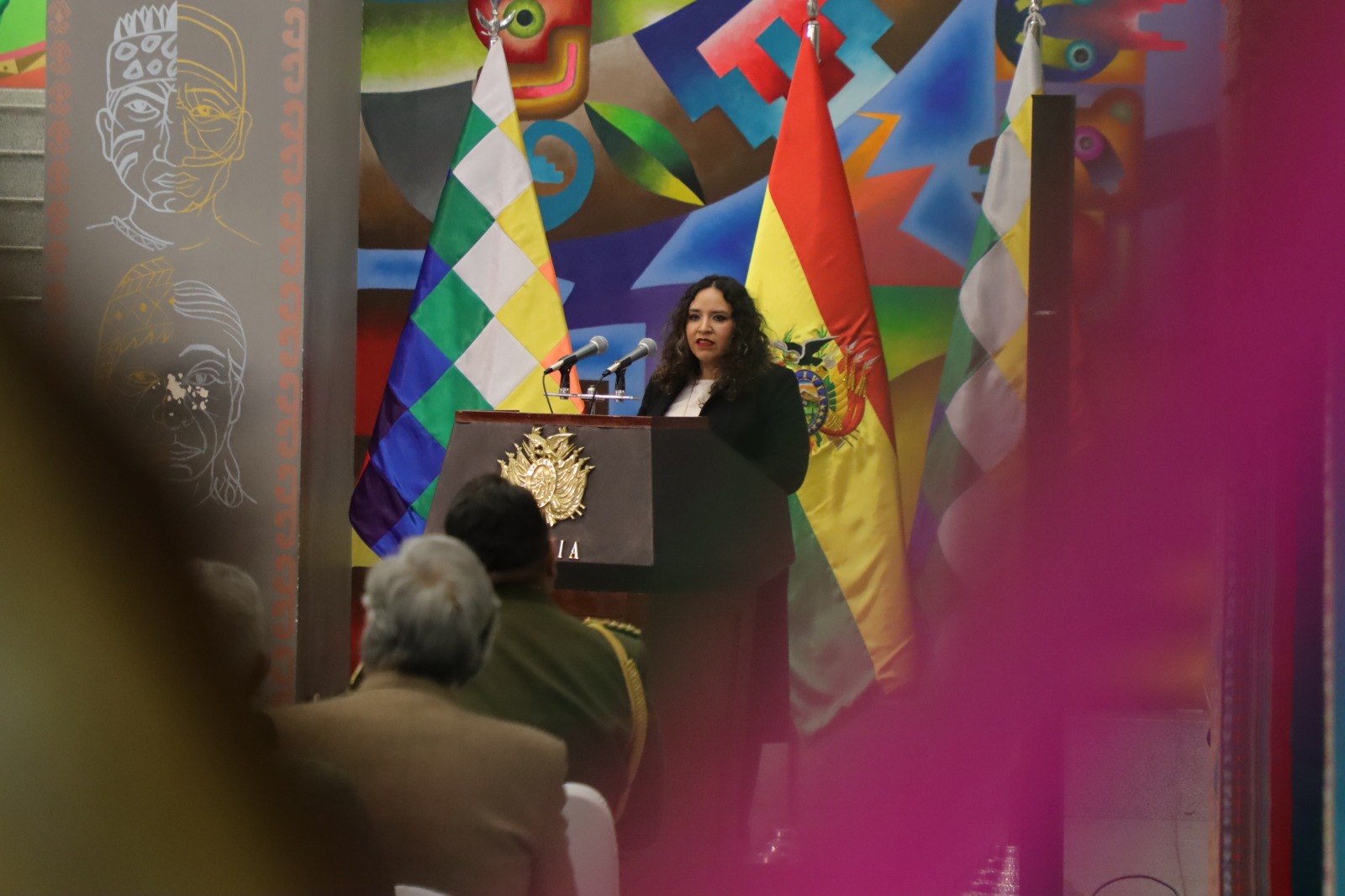 El presidente Luis Arce Catacora posesionó este viernes a María Renée Castro Cusicanqui como nueva Ministra de Salud y Deportes y a Marcelino Quispe López como Ministro de Minería y Metalurgia. Fuente: Comunicación Presidencial