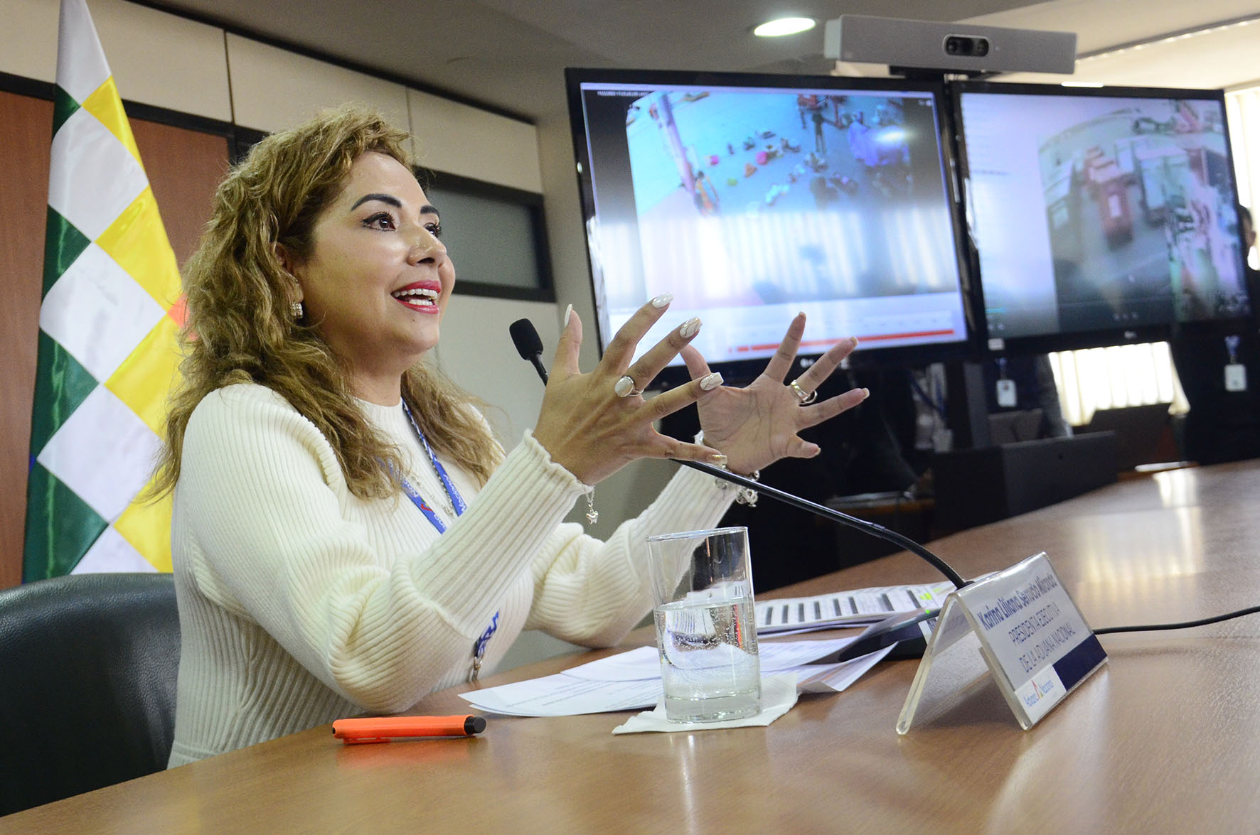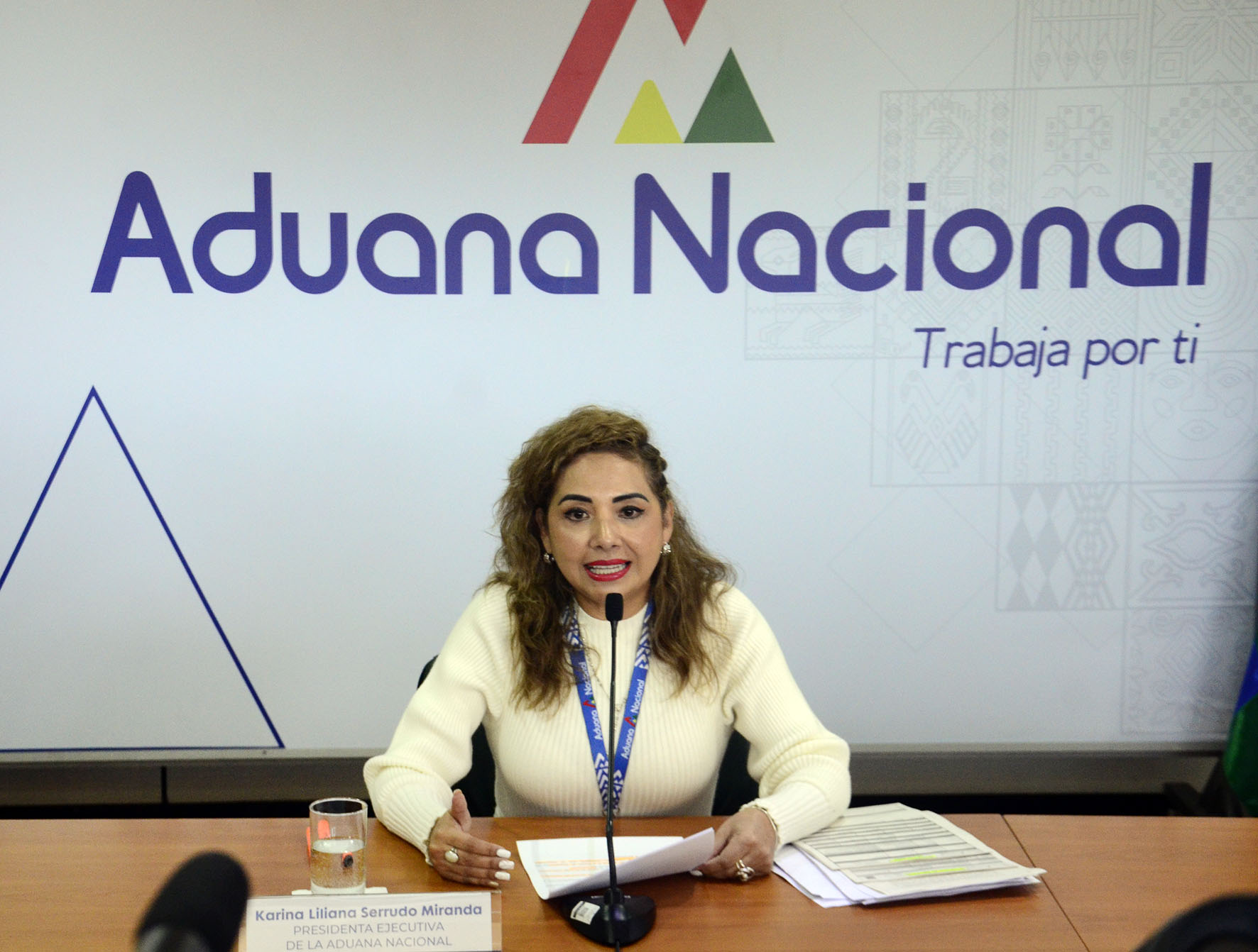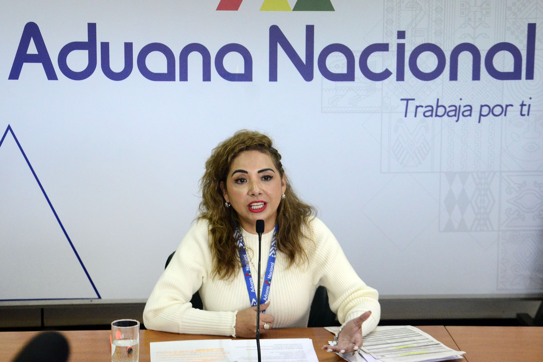 Presidenta Ejecutiva de la Aduana Nacional, Karina Serrudo, en conferencia de prensa informa sobre las Funciones en Aeropuerto Viru Viru