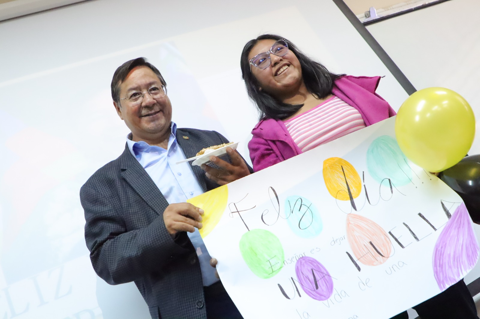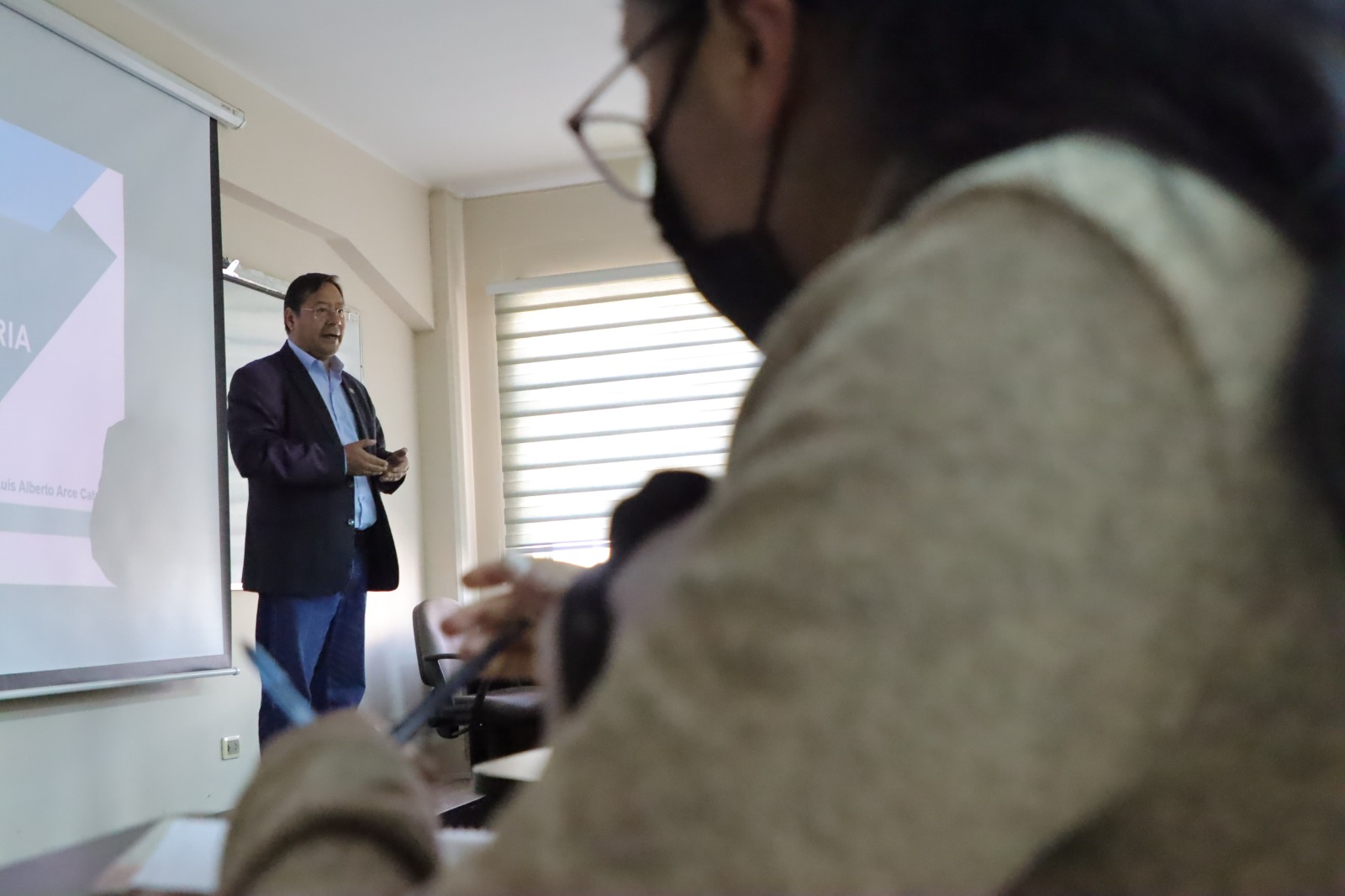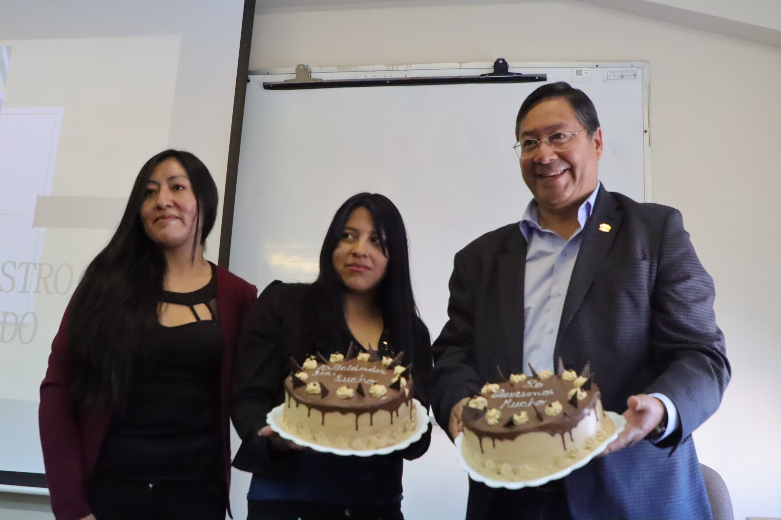 Presidente del estado Luis Arce festeja el día del Maestro junto a estudiantes de la carrera de Economía de la UMSA