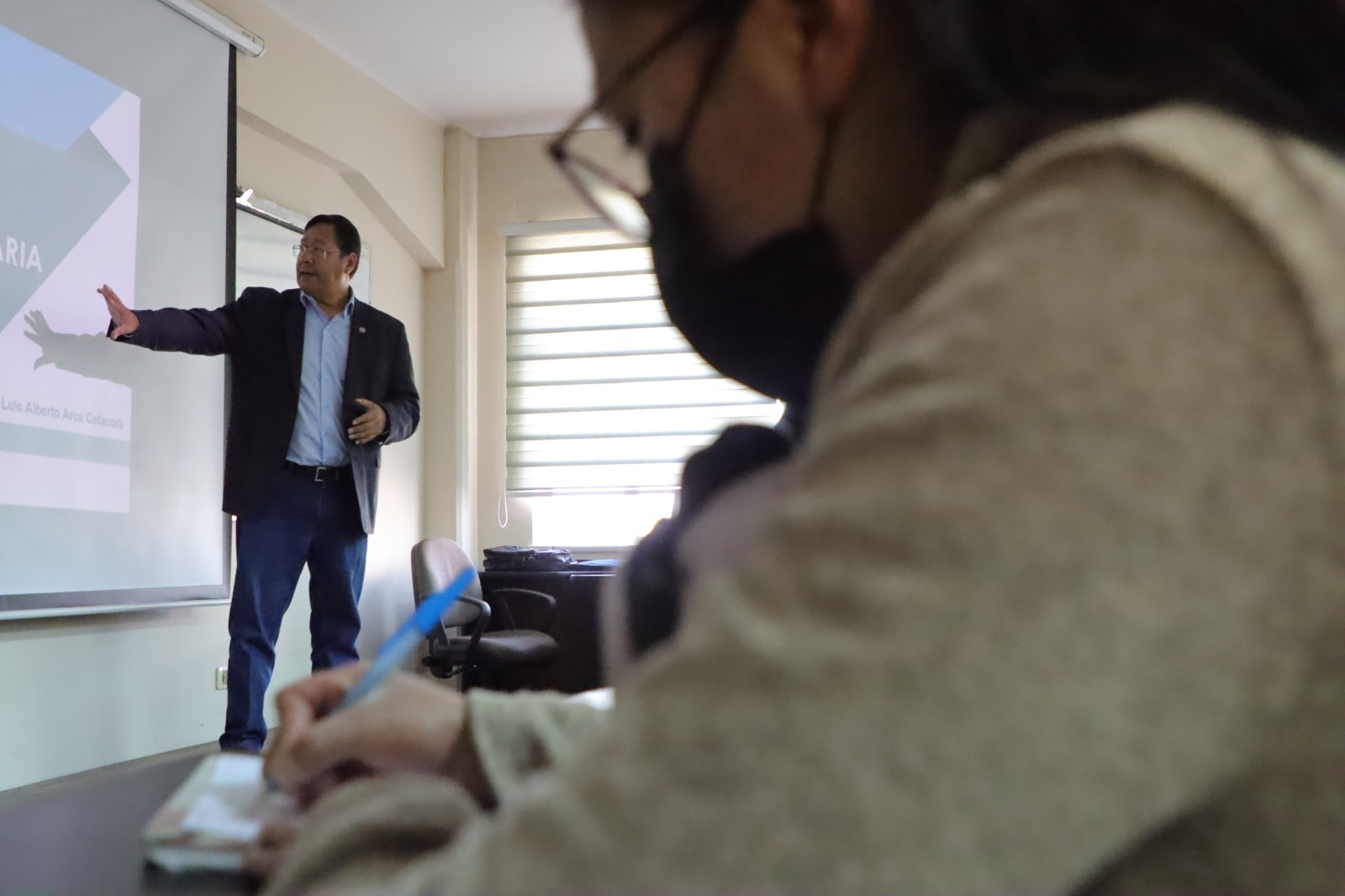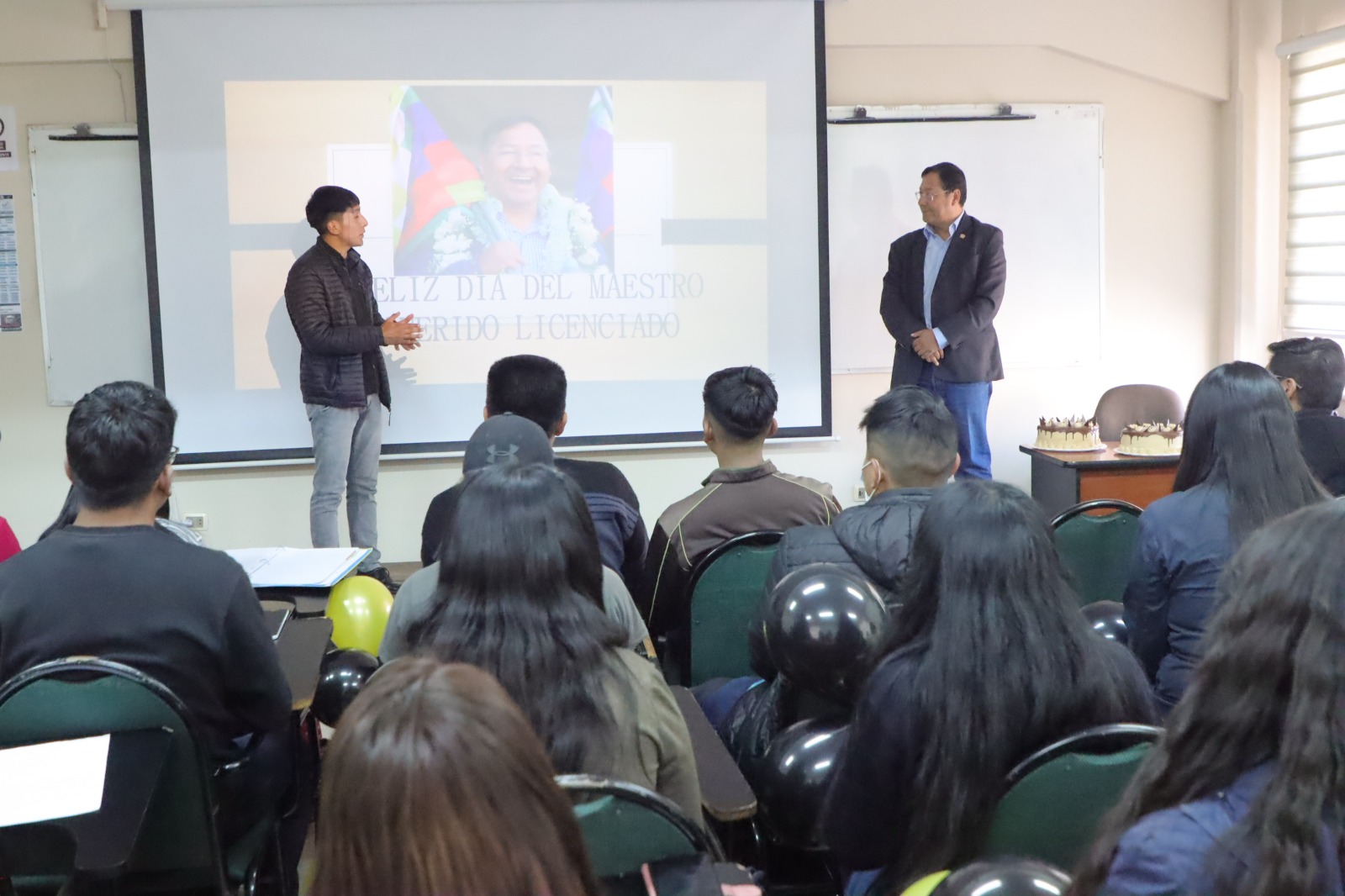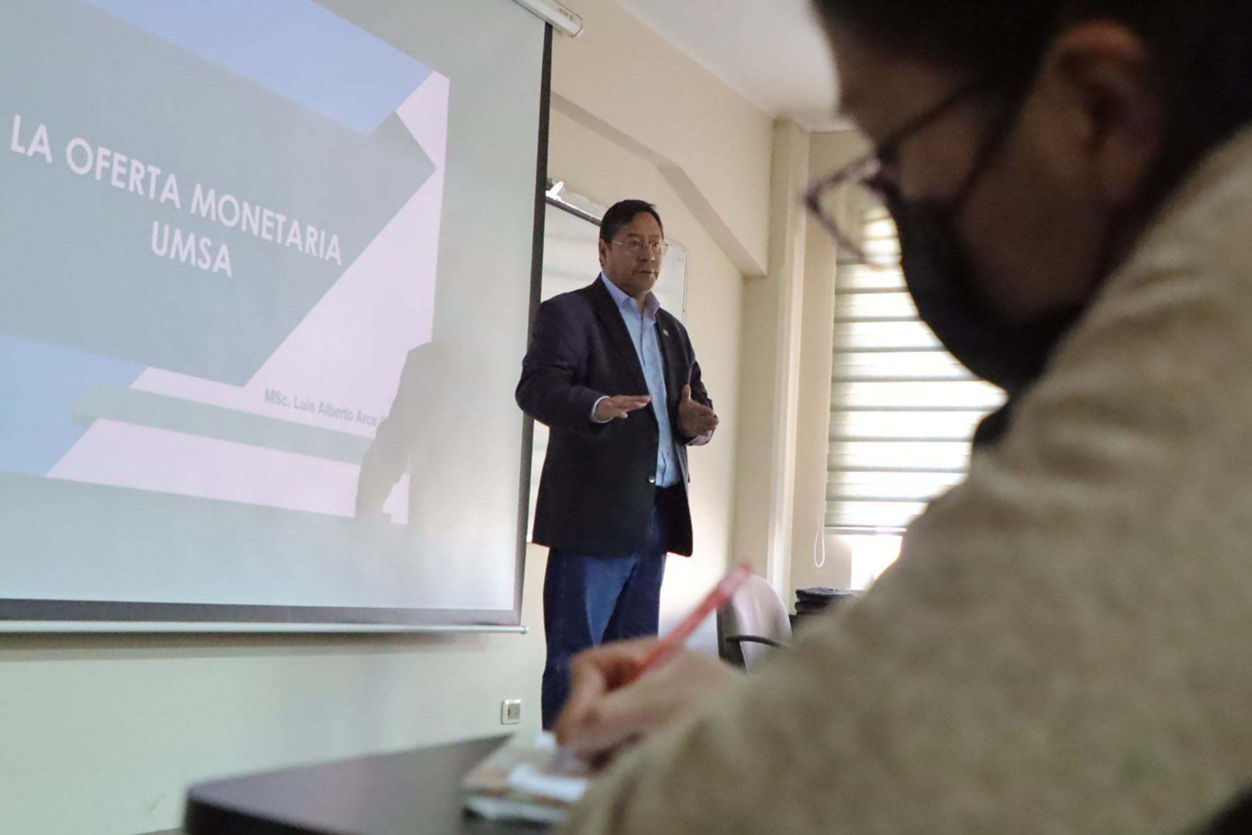 Presidente del estado Luis Arce festeja el día del Maestro junto a estudiantes de la carrera de Economía de la UMSA