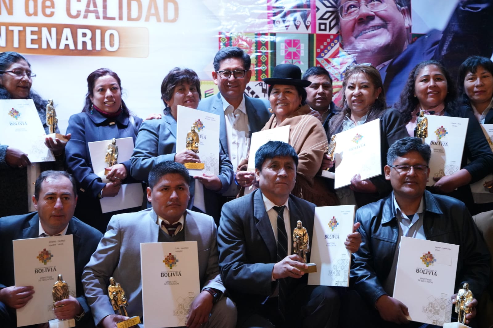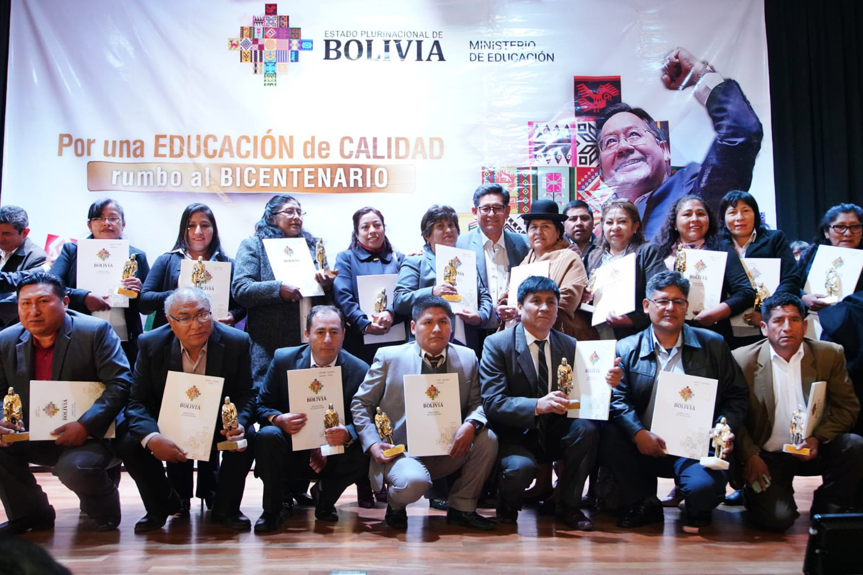 Ministro de Educación Edgar Pary, entrega distinción de estatuilla “Avelino Siñani” a maestras y maestros meritorios. Fotos: Jorge Mamani