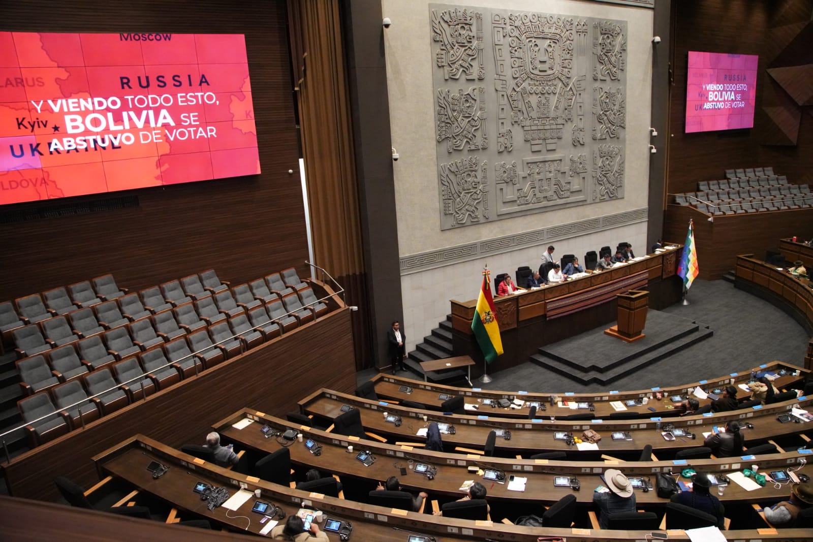 Sesión de la Asamblea Legislativa Plurinacional, interpelación al Ministro de Relaciones Exteriores, Rogelio Mayta Mayta, sobre la posición del Gobierno de Bolivia con relación a la Guerra de Ucrania. Fotos: Jorge Mamani