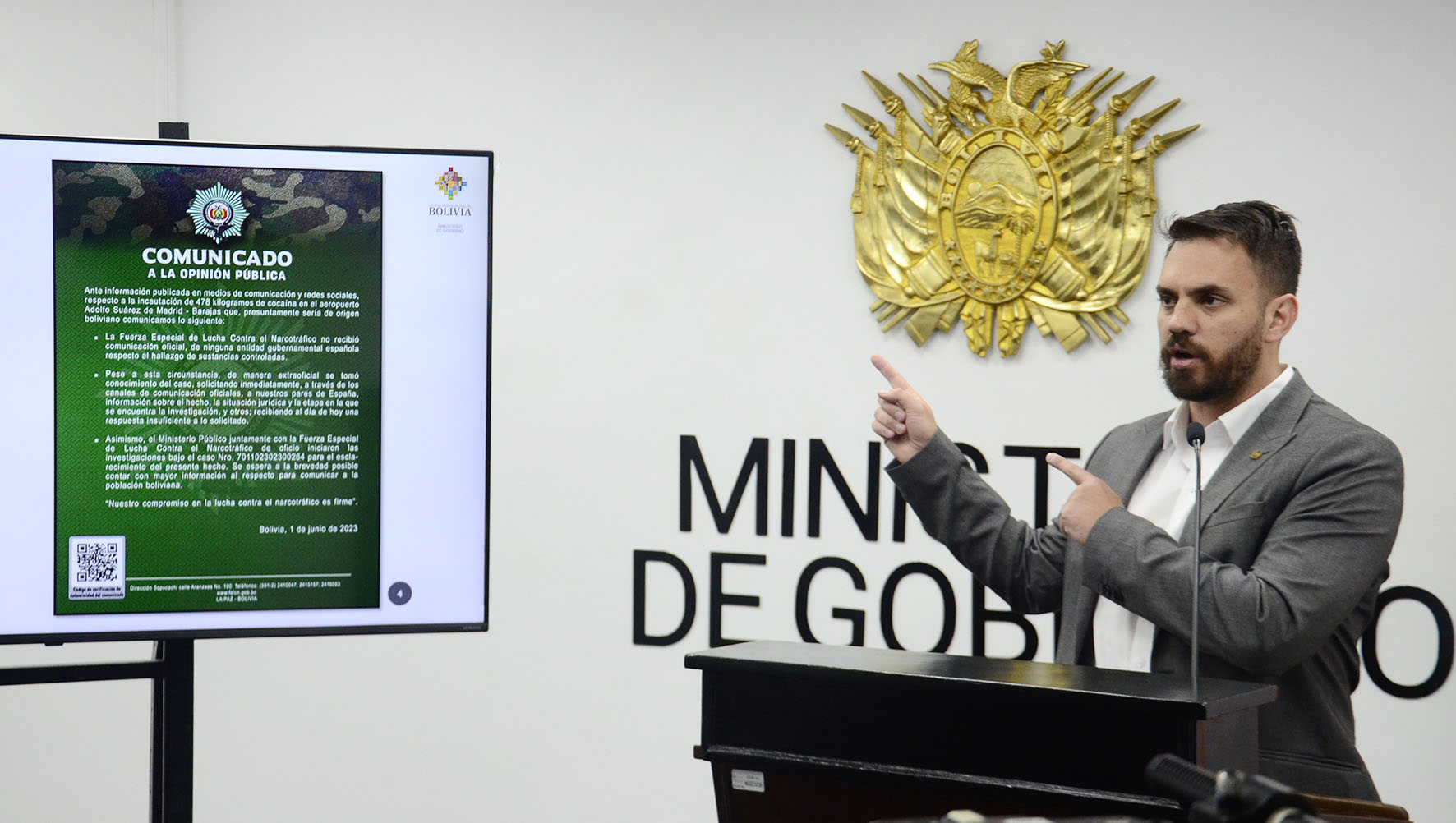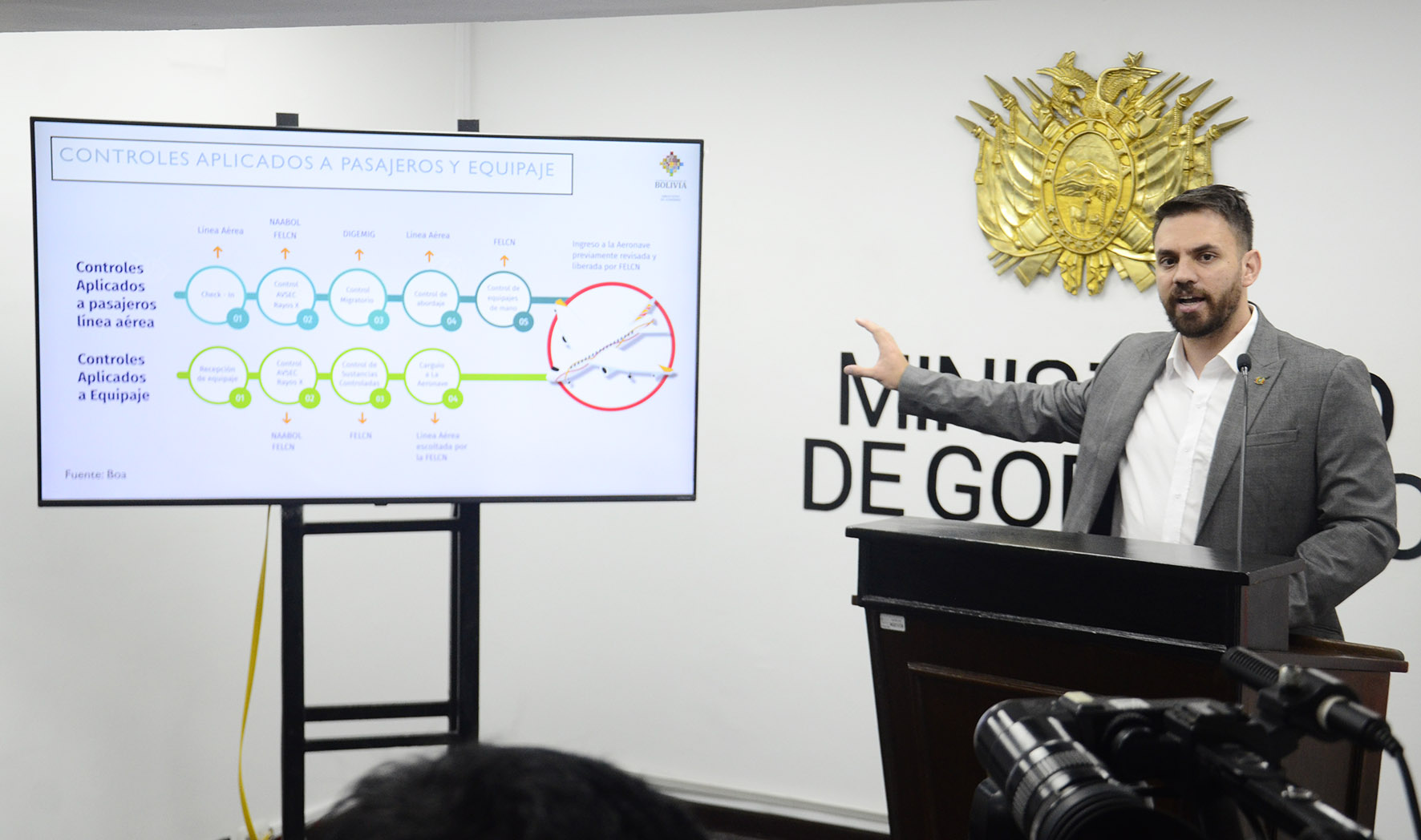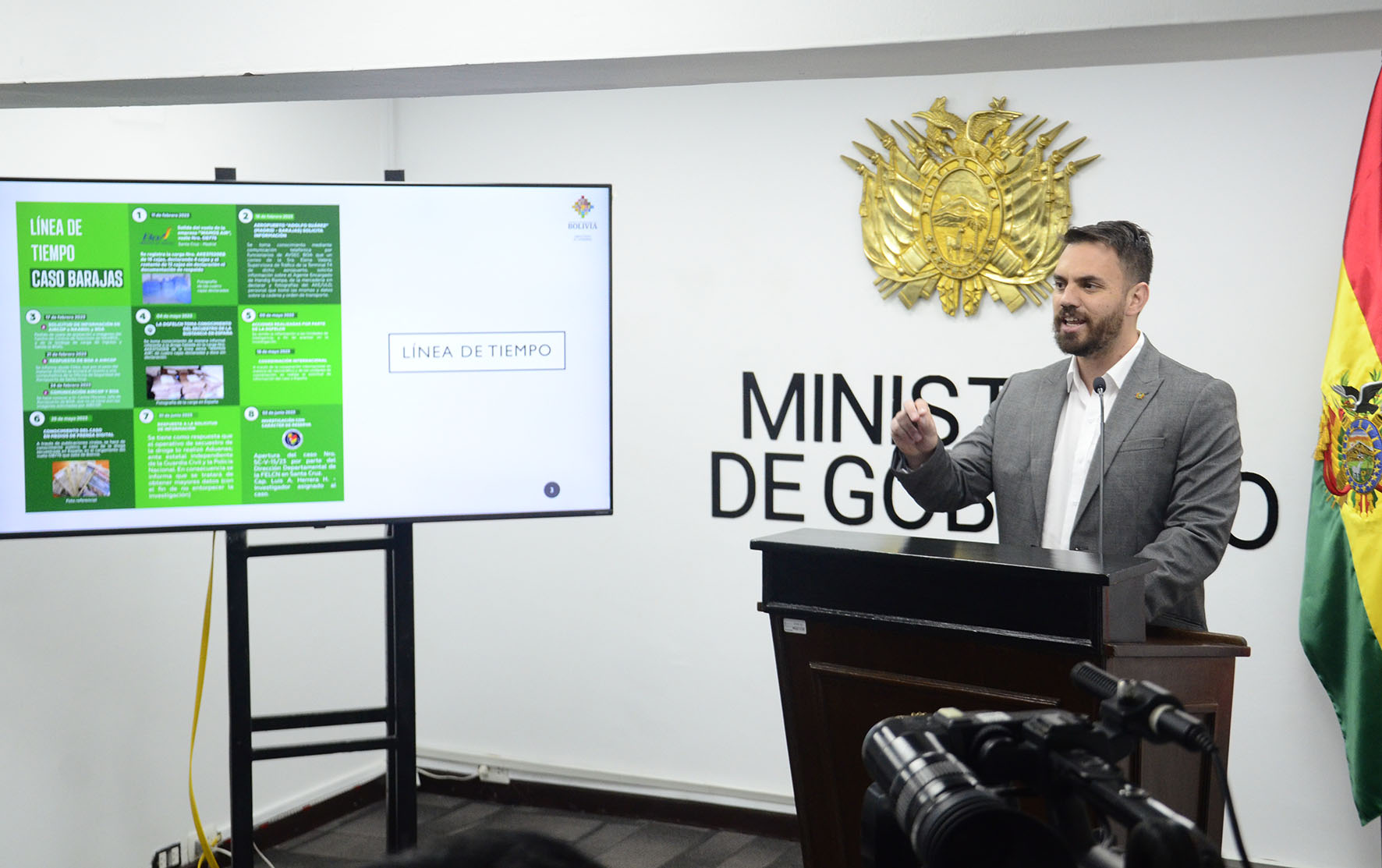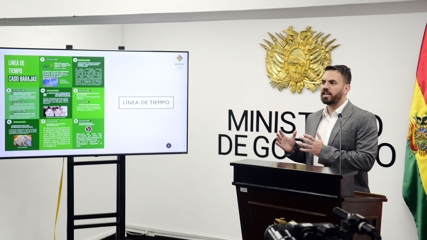 Ministro de Gobierno Eduardo Del Castillo informa en conferencia de prensa sobre detalles del caso Barajas