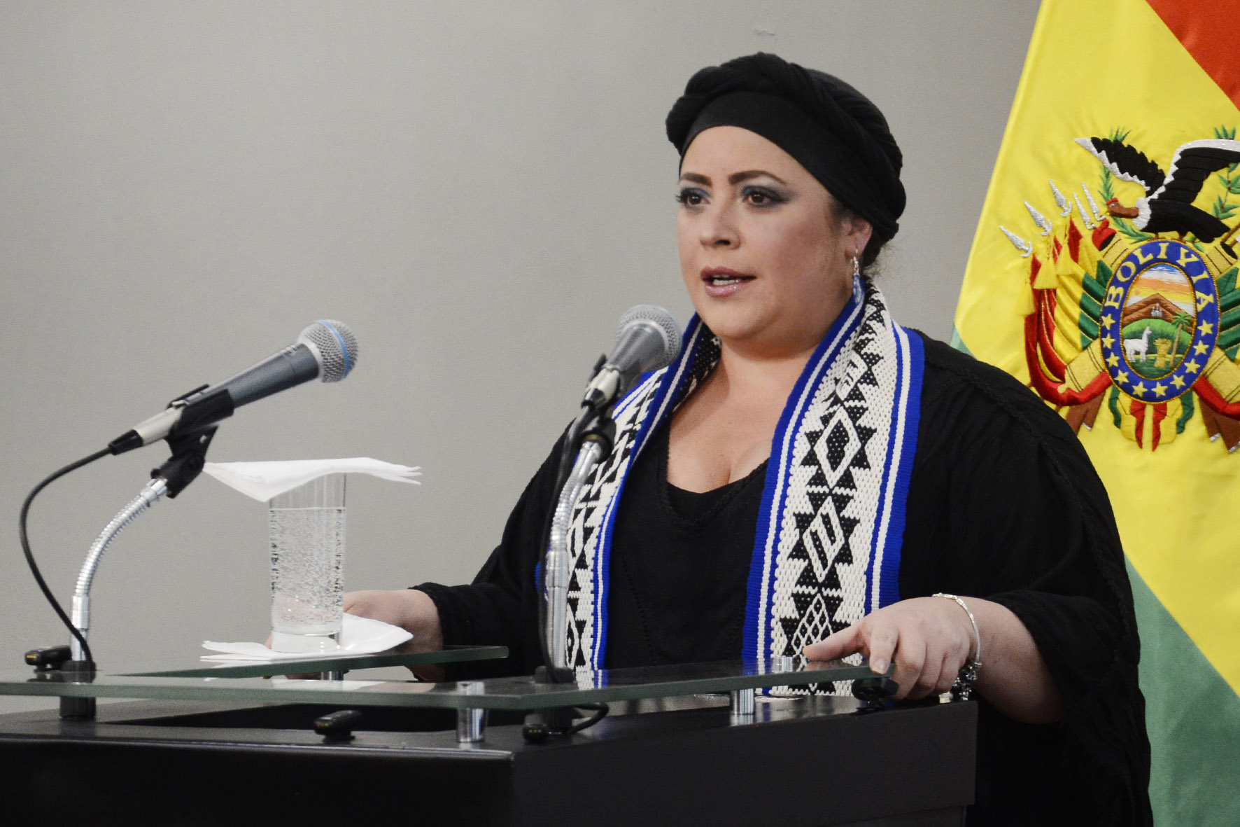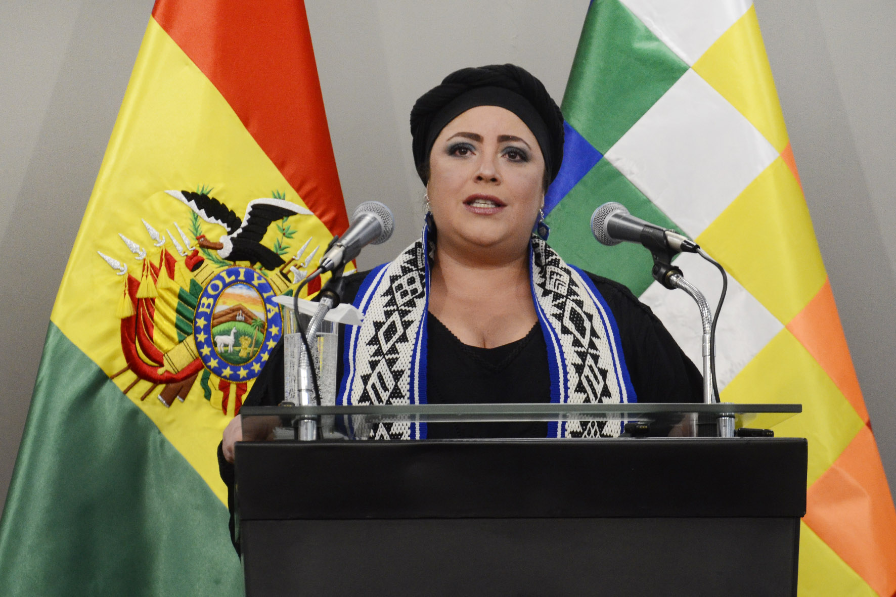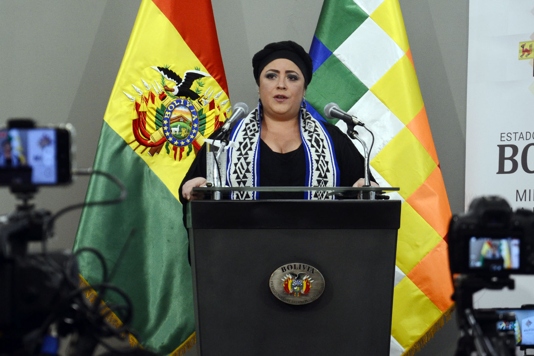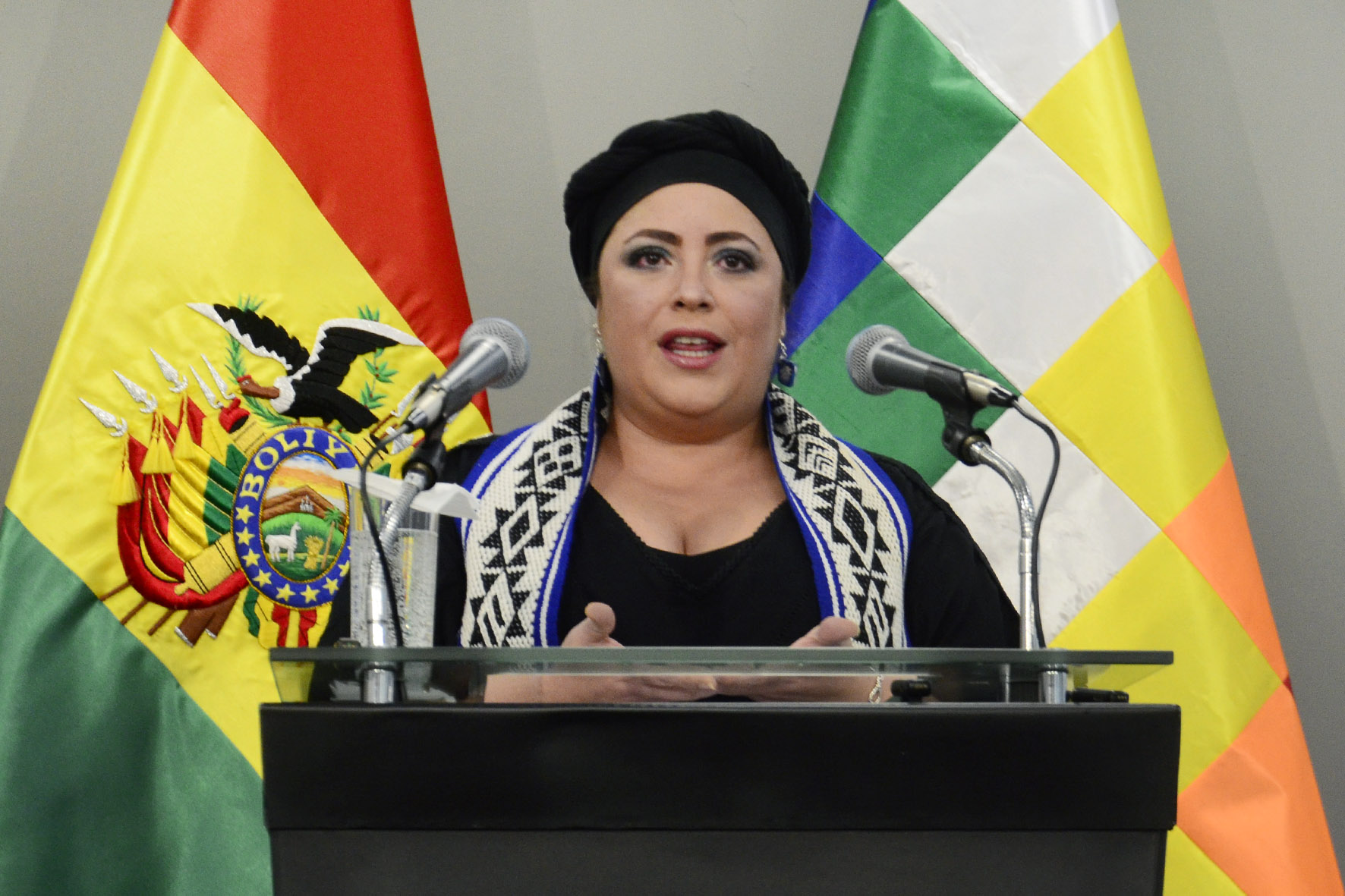 Ministra de la Presidencia María Nela Prada en conferencia de prensa en Casa Grande del Pueblo