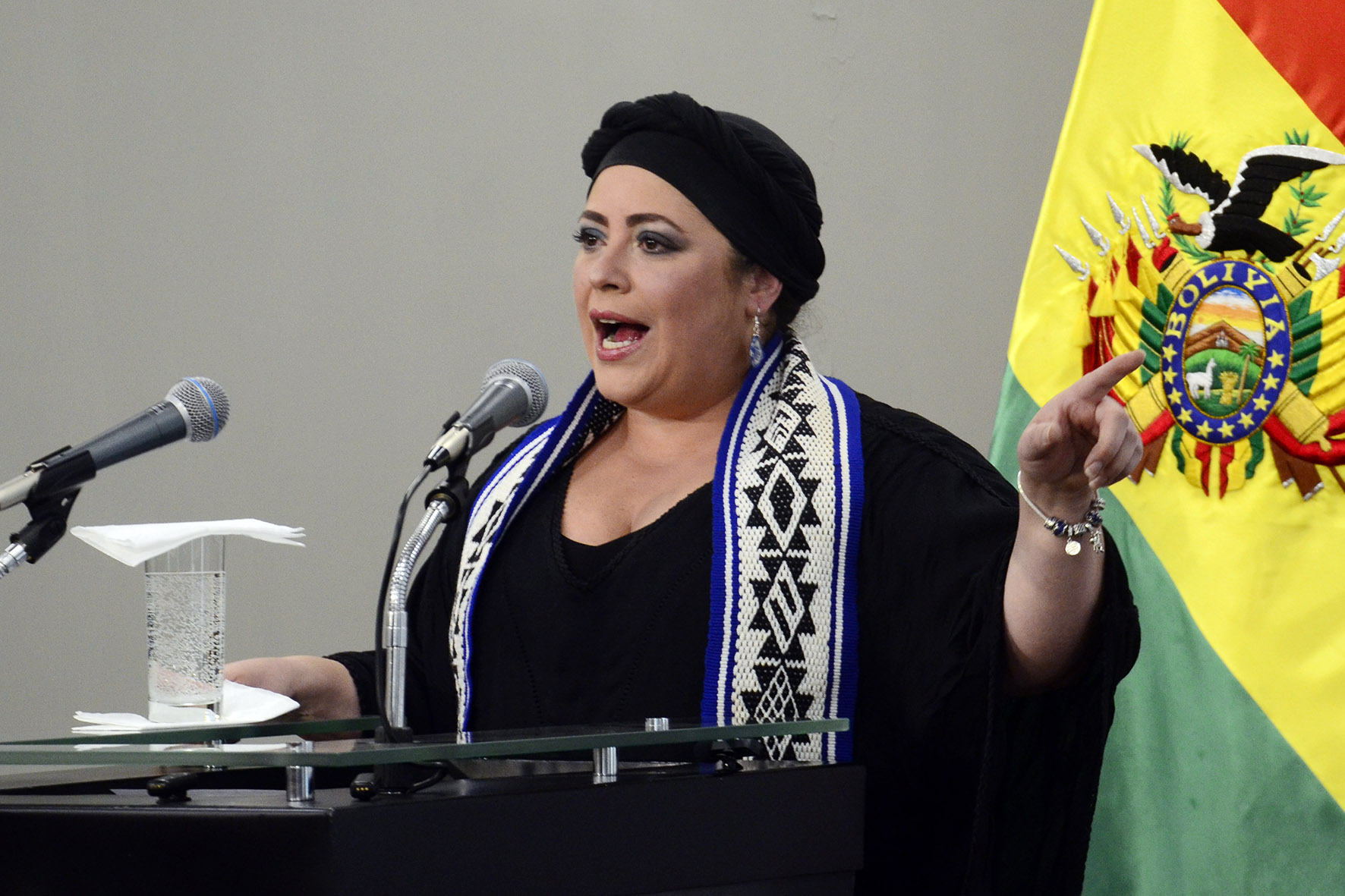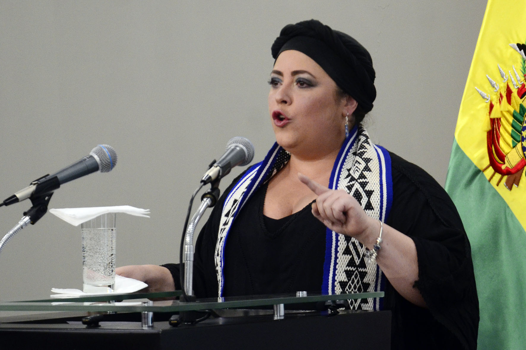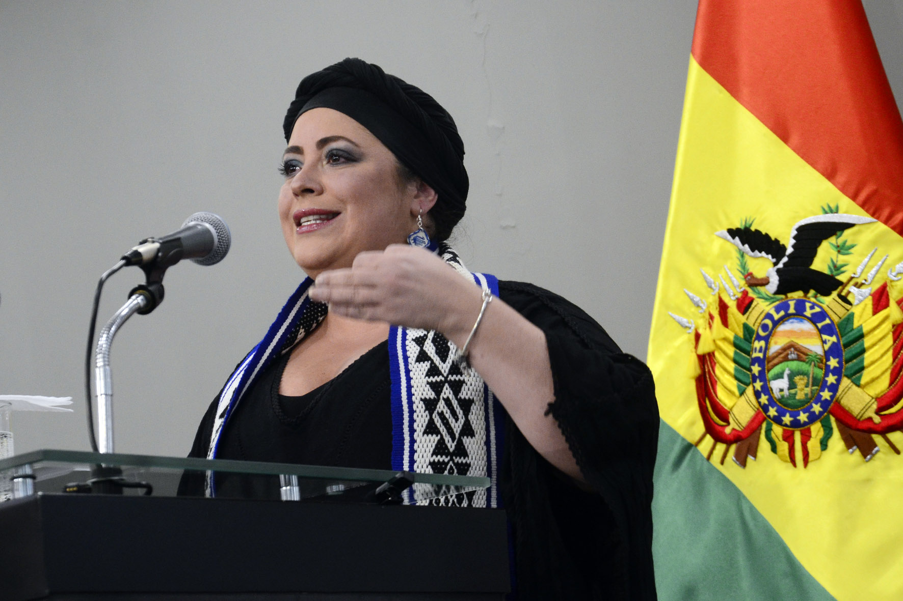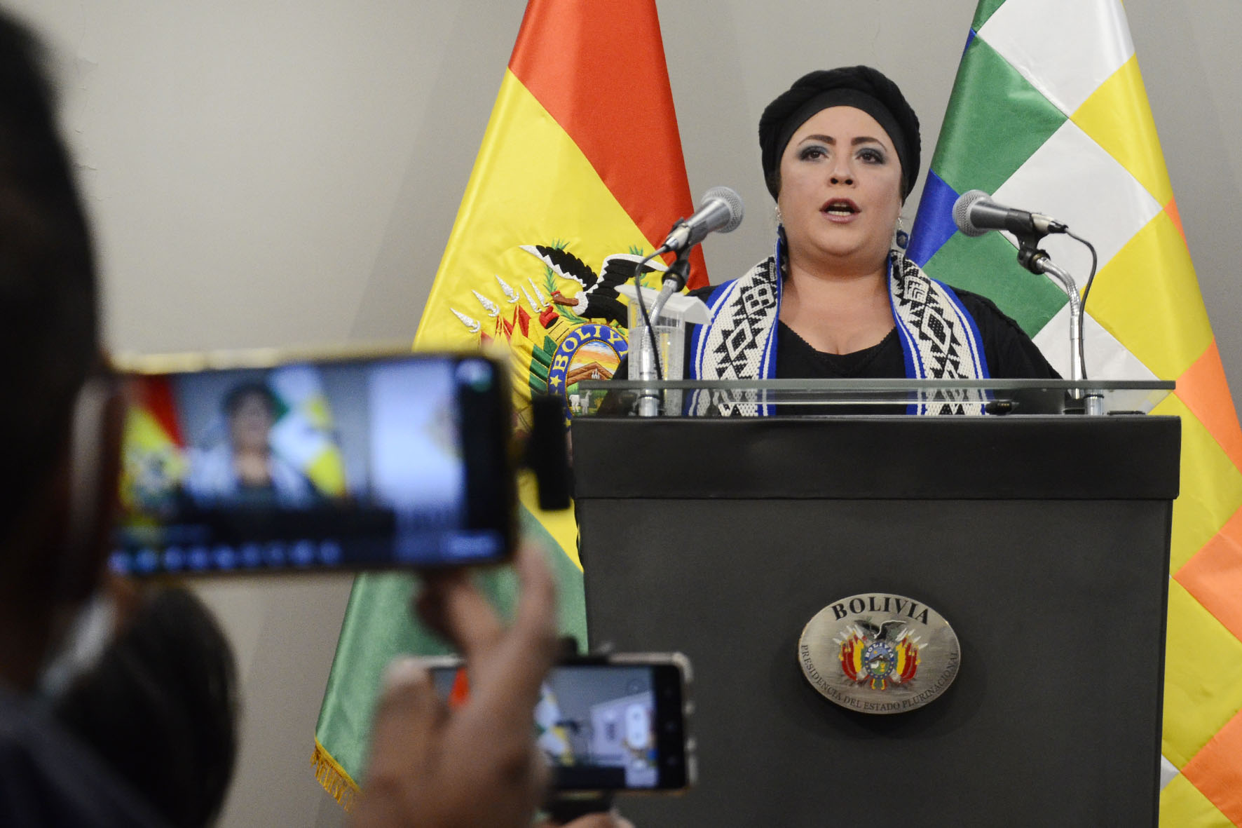 Ministra de la Presidencia María Nela Prada en conferencia de prensa en Casa Grande del Pueblo