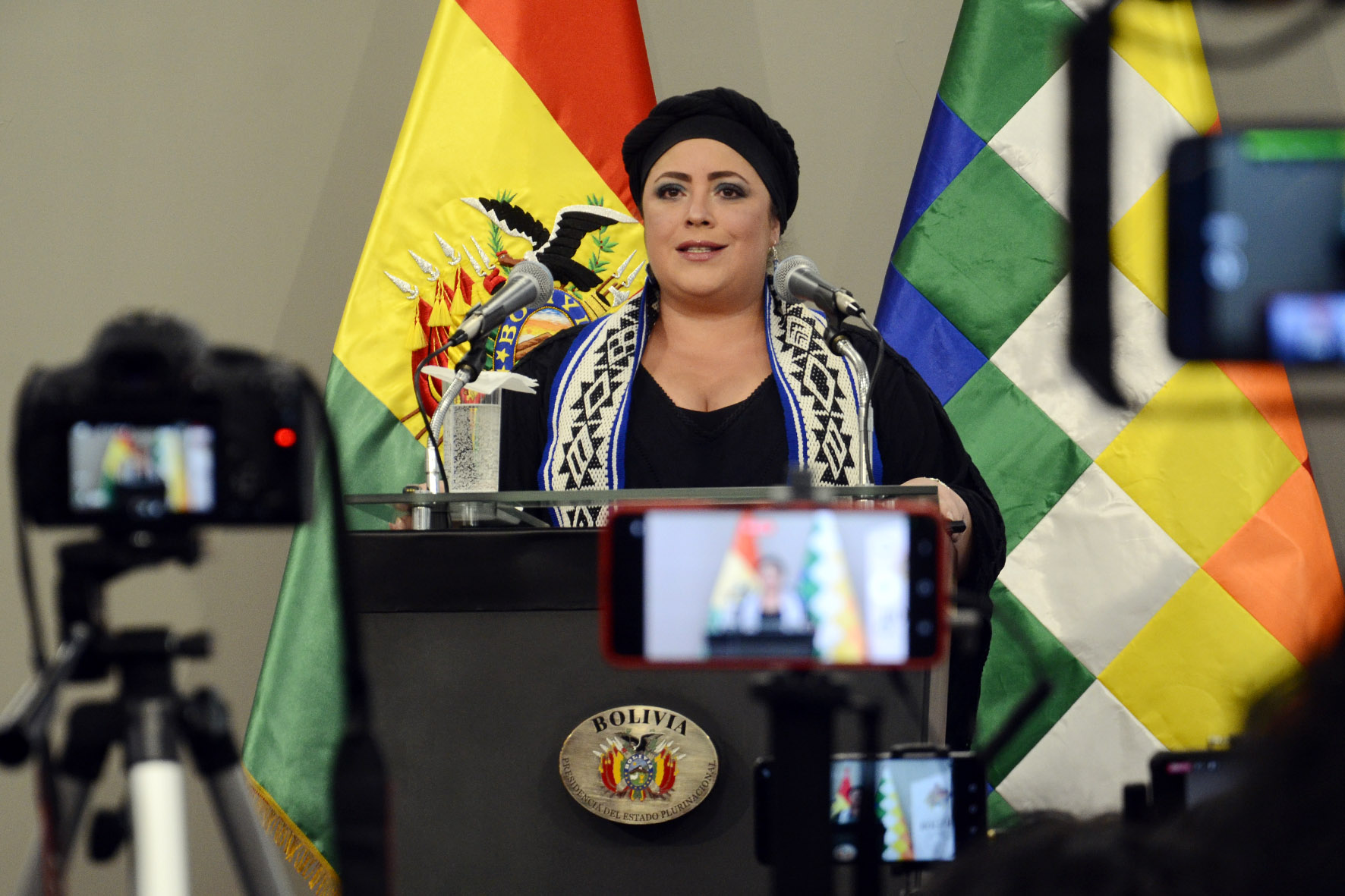 Conferencia de prensa de la ministra de la Presidencia María Nela Prada, en Casa Grande del Pueblo. Fotos: Freddy Barragán