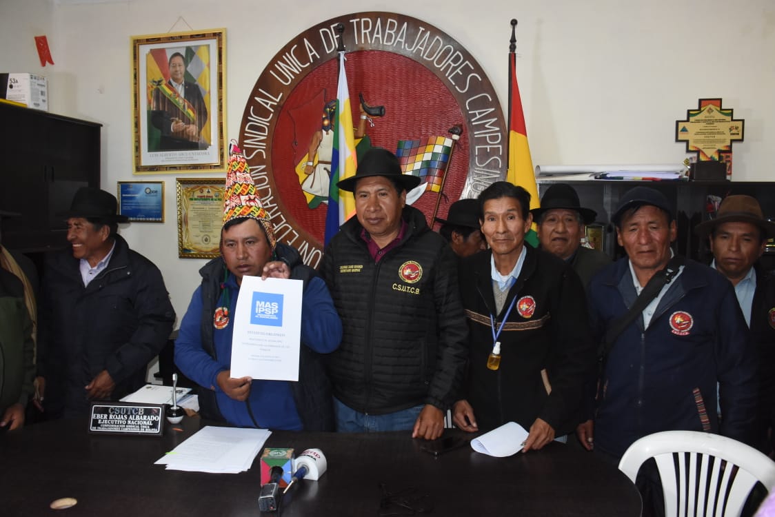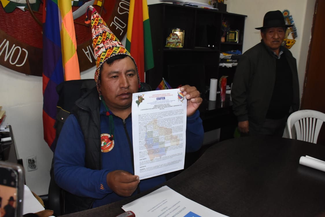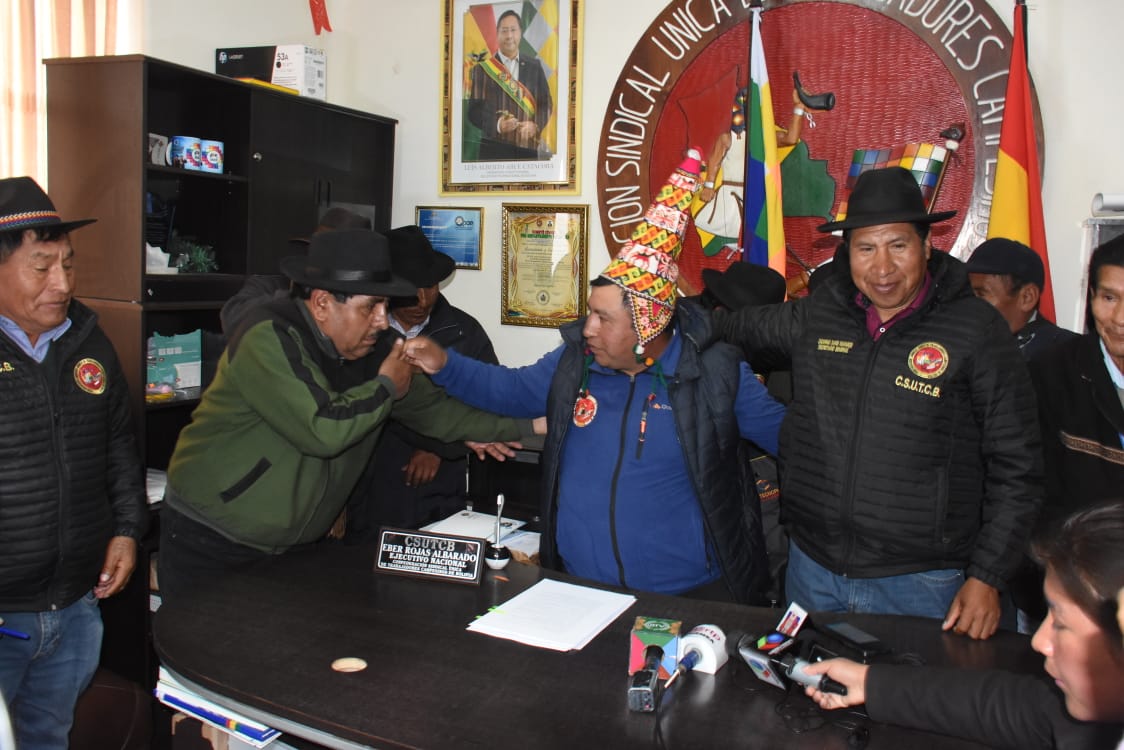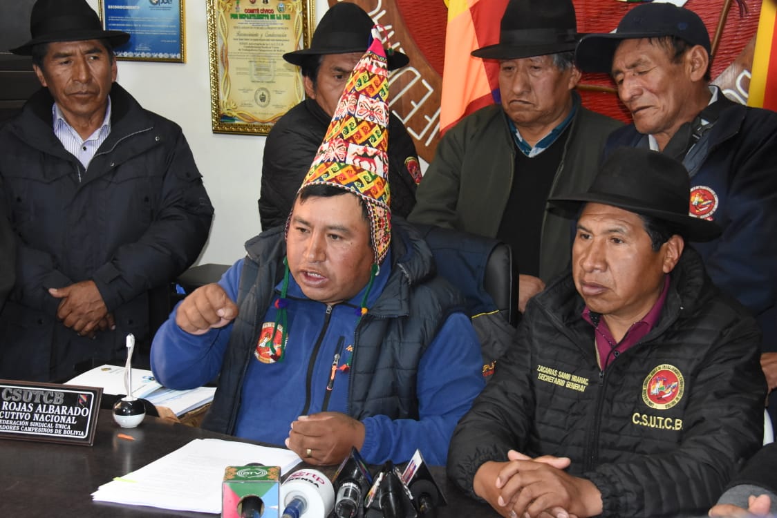 El secretario ejecutivo de la CSUTCB, Ever Rojas da su respaldo al Gobierno Nacional de Lucho-David. Fotos: Gonzalo Jallasi