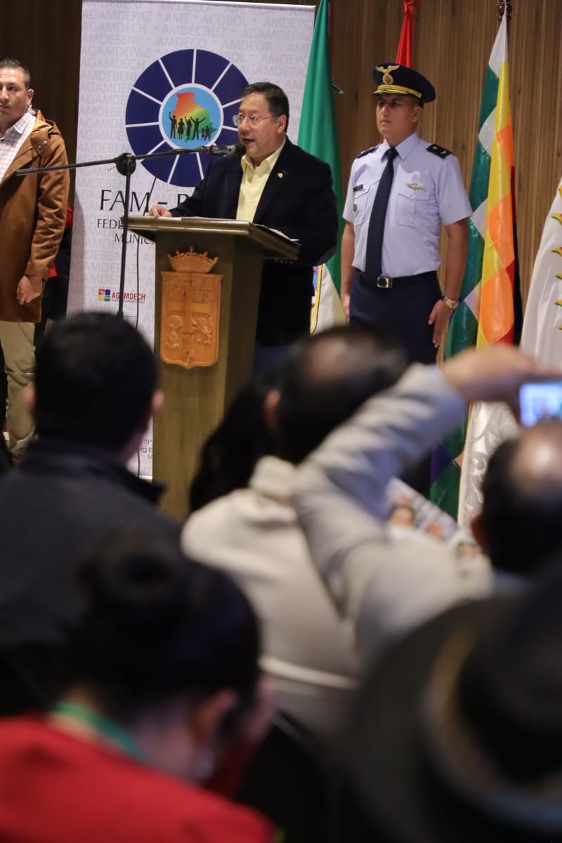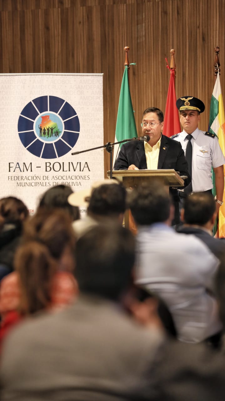 Presidente del Estado Luis Arce participa en la inauguración del Congreso de la FAM Bolivia, en Santa Cruz. Fuente: Comunicación Presidencial