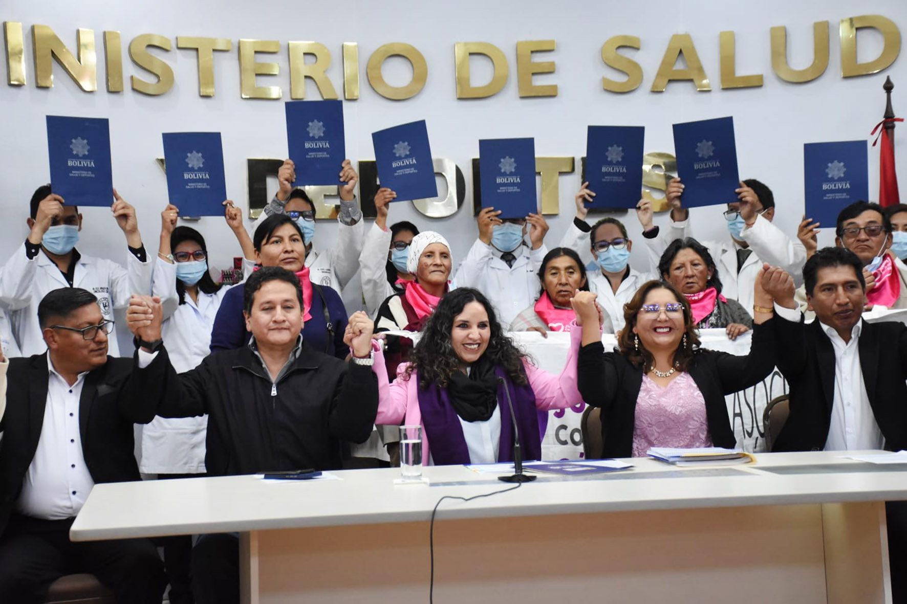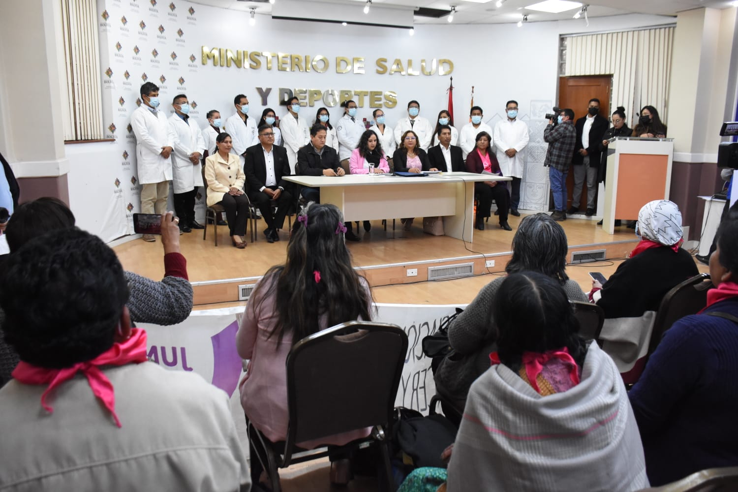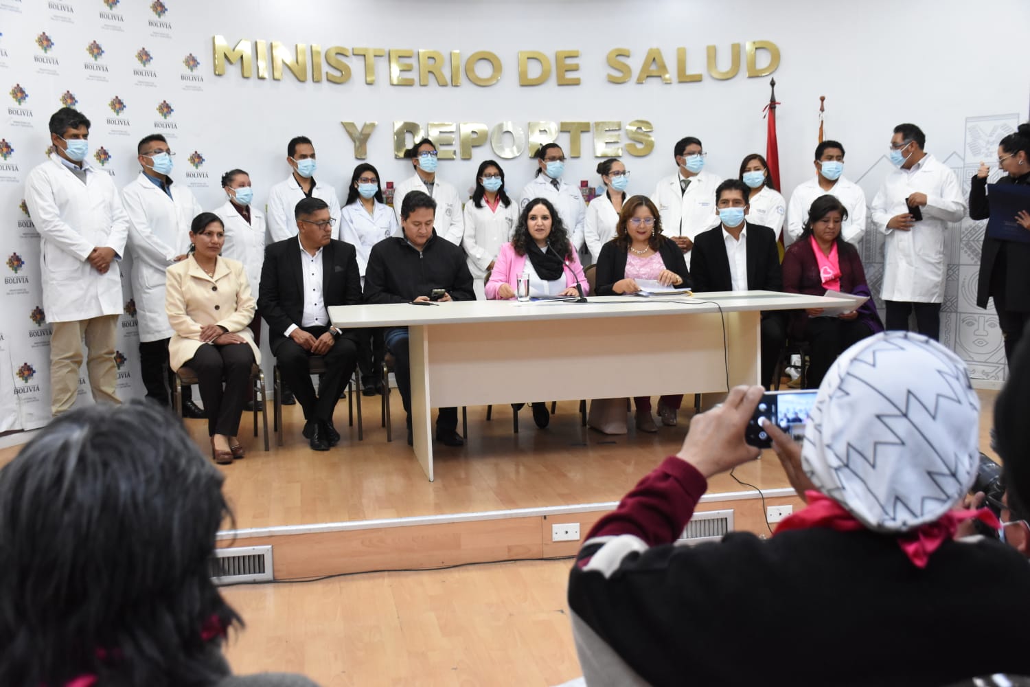 Ministra de Salud y Deportes Maria Renée Castro, en conferencia de prensa sobre acciones inmediatas para mejorar el Sistema de Salud
