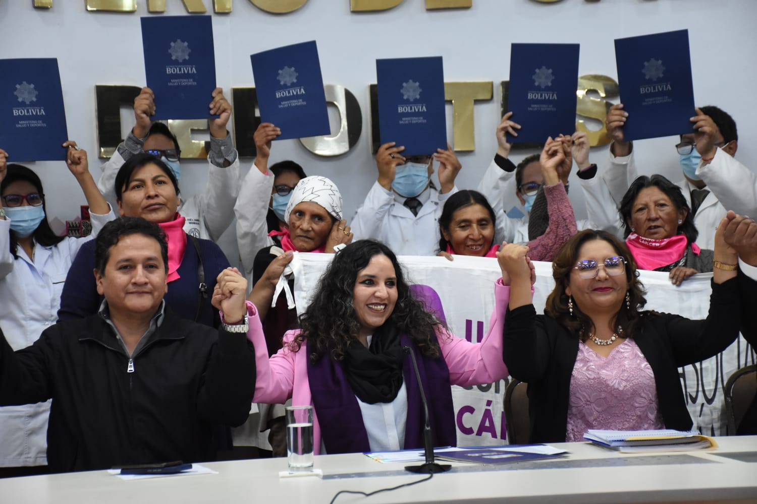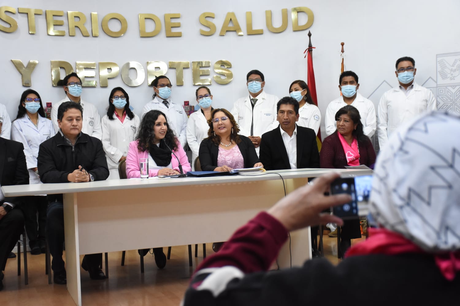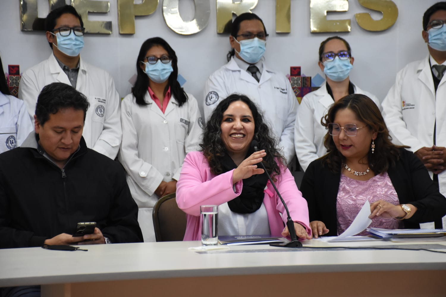 La Ministra de Salud y Deportes Maria Renée Castro, en conferencia de prensa sobre acciones inmediatas para mejorar el Sistema de Salud. Fotos: Jorge Mamani