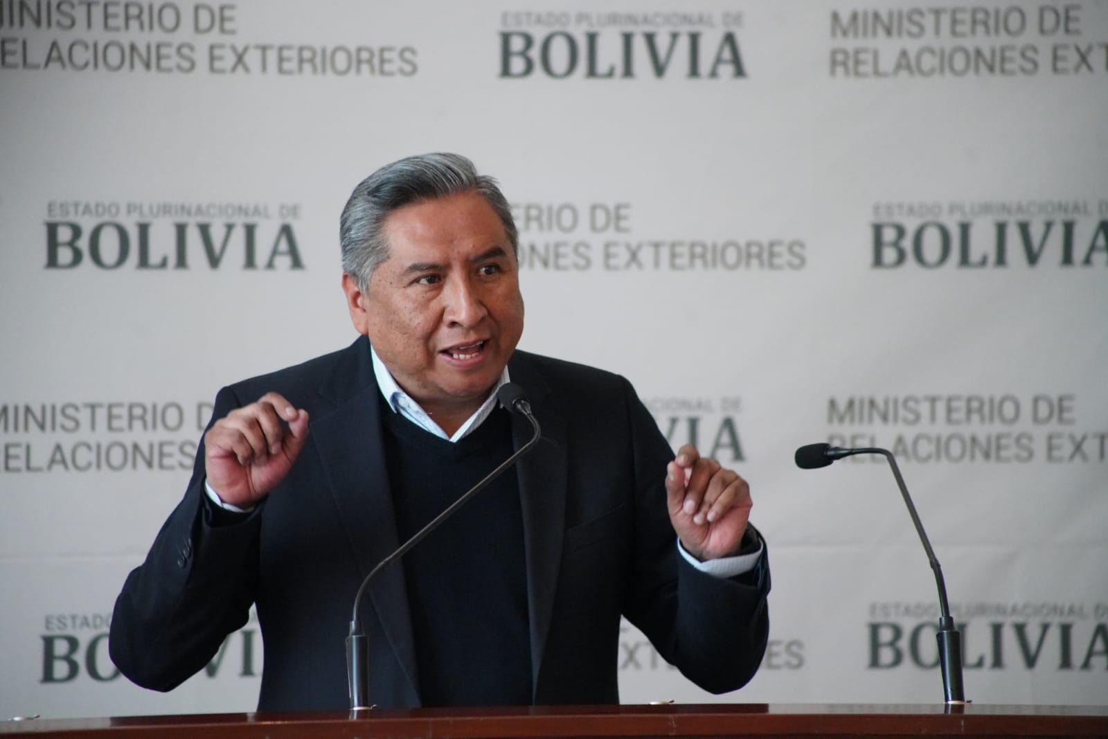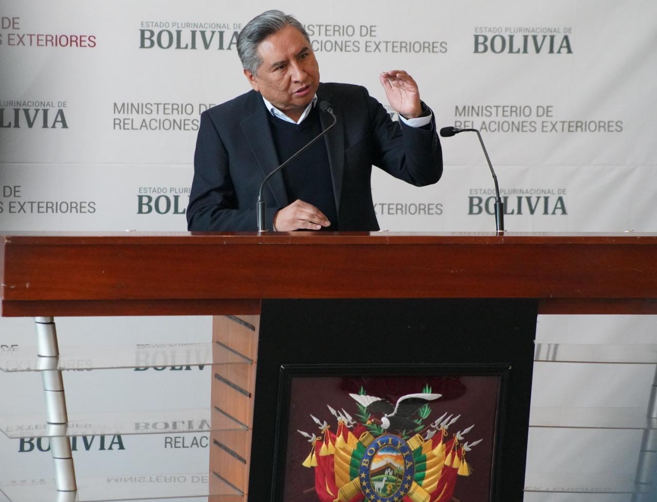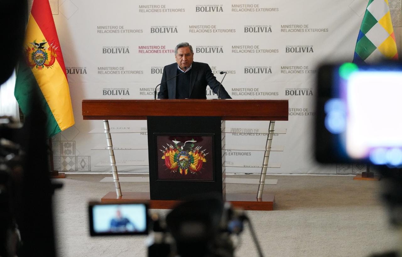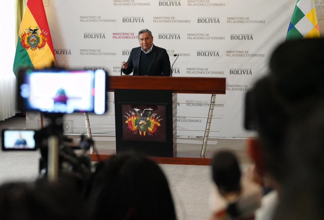 El Ministro de Relaciones Exteriores Rogelio Mayta, brinda conferencia de prensa sobre la propuesta constitucional del expresidente Gonzalo Sánchez de Lozada. Fotos: Jorge Mamani