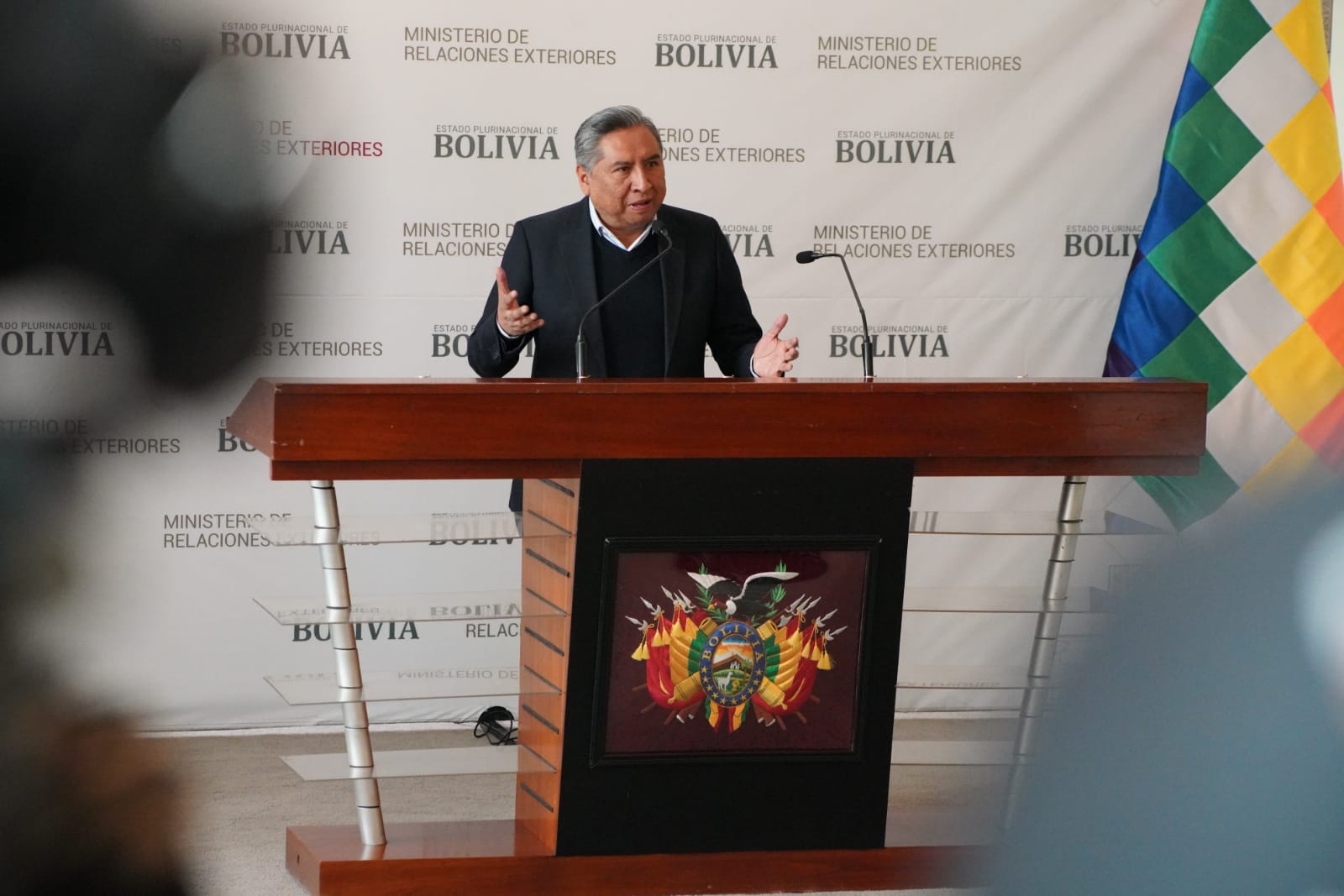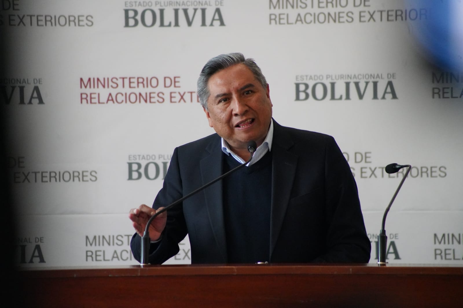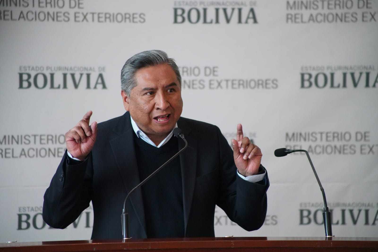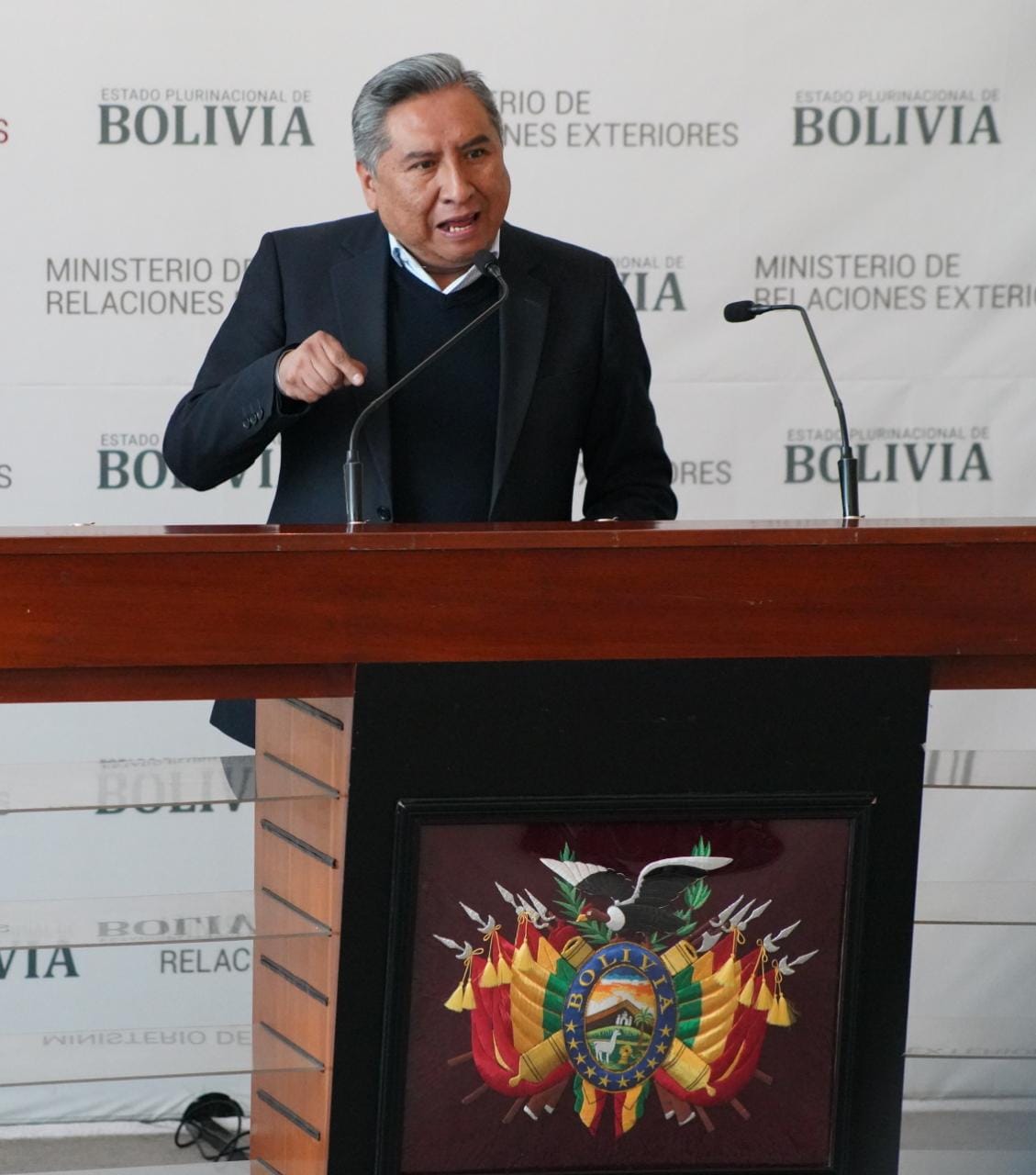 El Ministro de Relaciones Exteriores Rogelio Mayta, brinda conferencia de prensa sobre la propuesta constitucional del expresidente Gonzalo Sánchez de Lozada. Fotos: Jorge Mamani