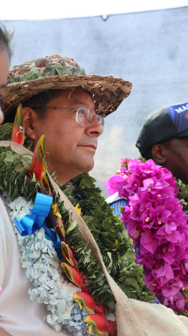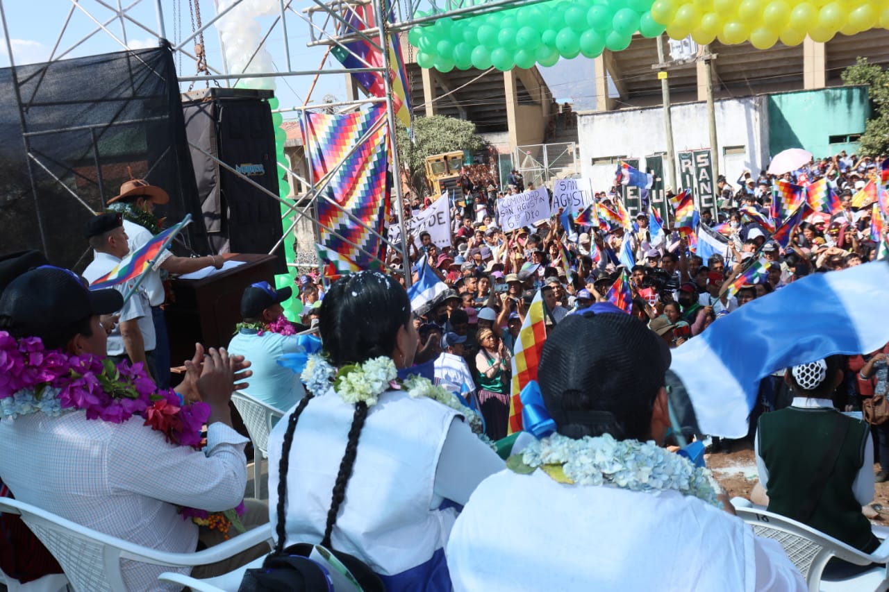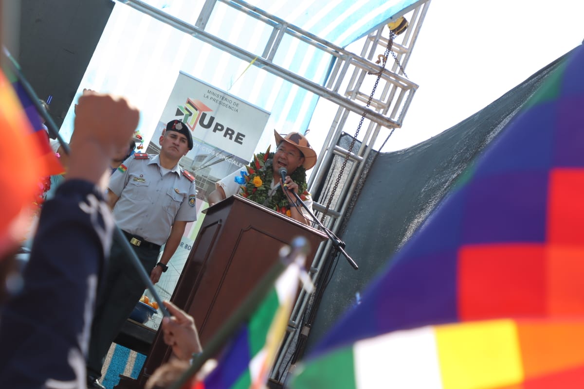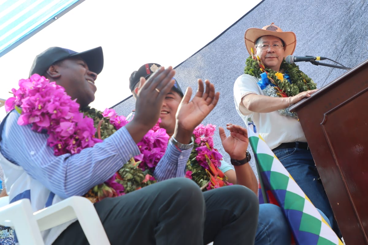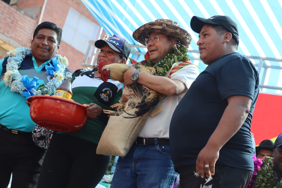 Presidente del Estado Luis Arce coloca piedra fundamental para dar inicio a la construcción del Centro Integral de Desarrollo Productivo Yapuchaña y de la Unidad Educativa Eduardo Abaroa, en Coripata. Fuente: Comunicación Presidencial