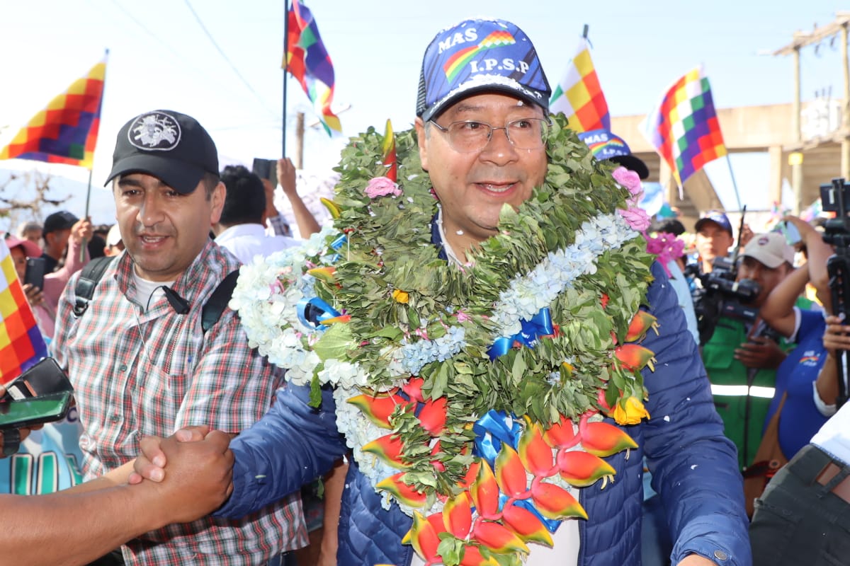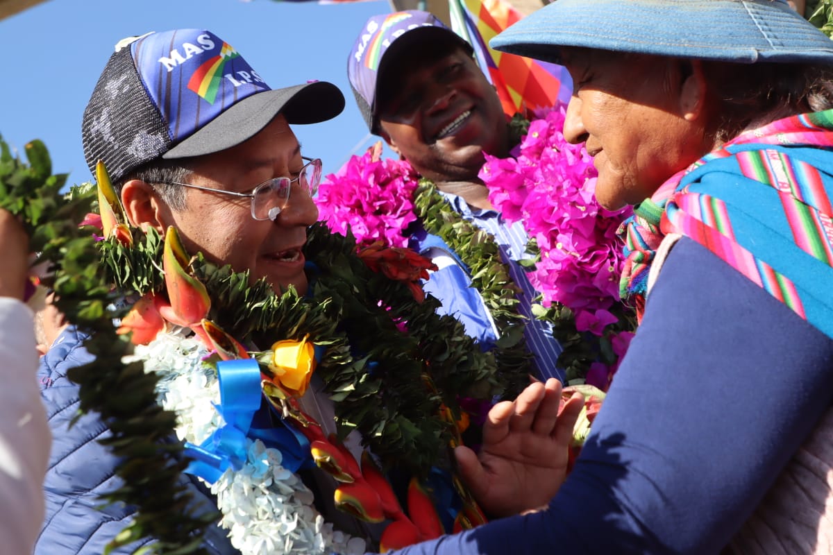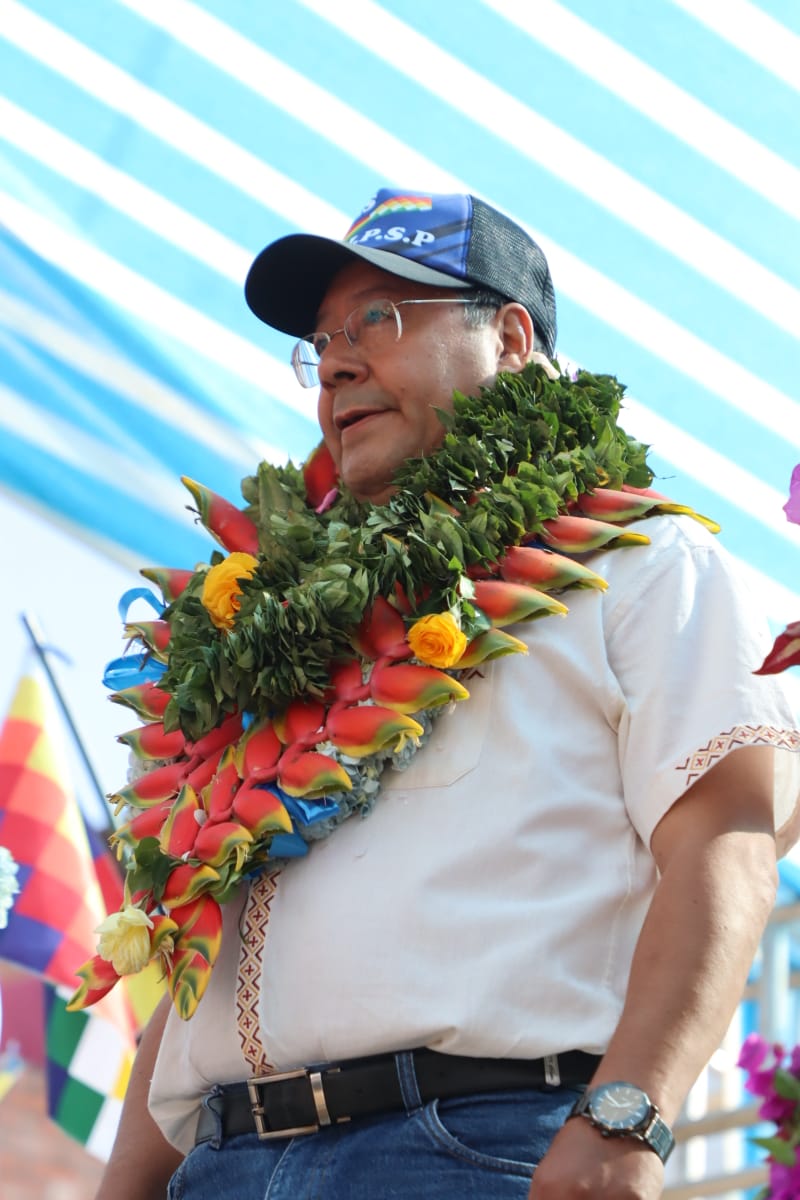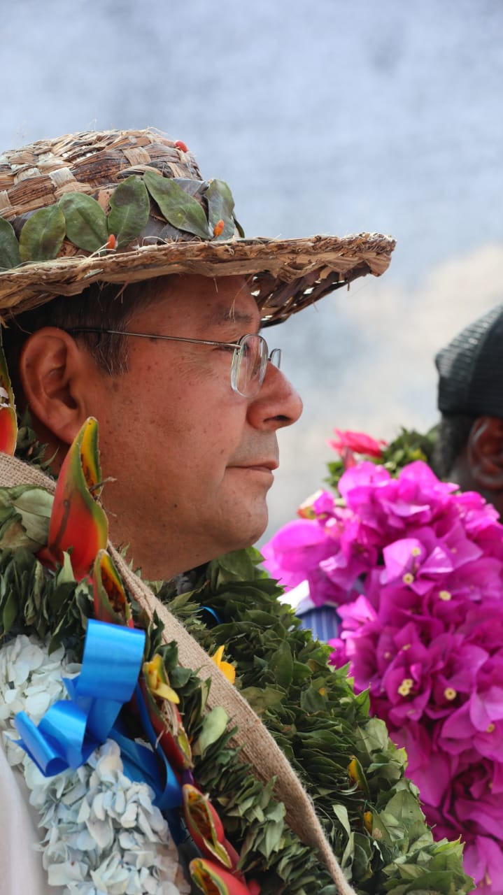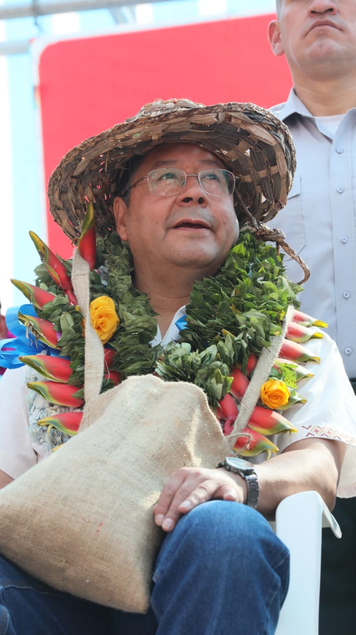 Presidente del Estado Luis Arce coloca piedra fundamental para dar inicio a la construcción del Centro Integral de Desarrollo Productivo Yapuchaña y de la Unidad Educativa Eduardo Abaroa, en Coripata. Fuente: Comunicación Presidencial