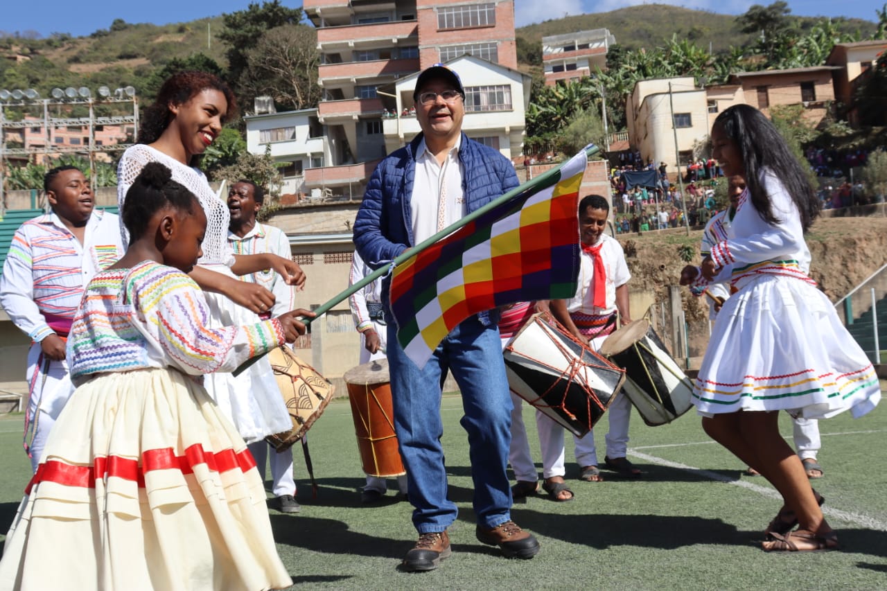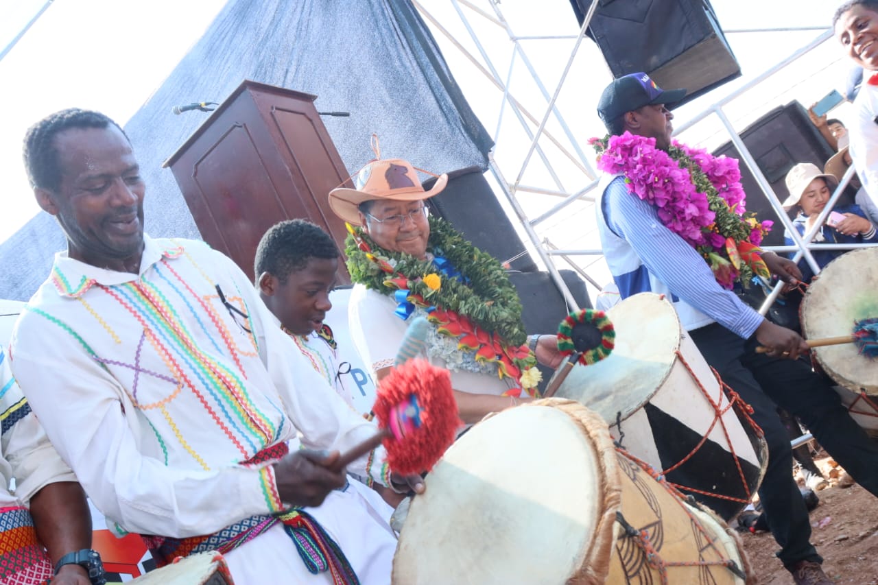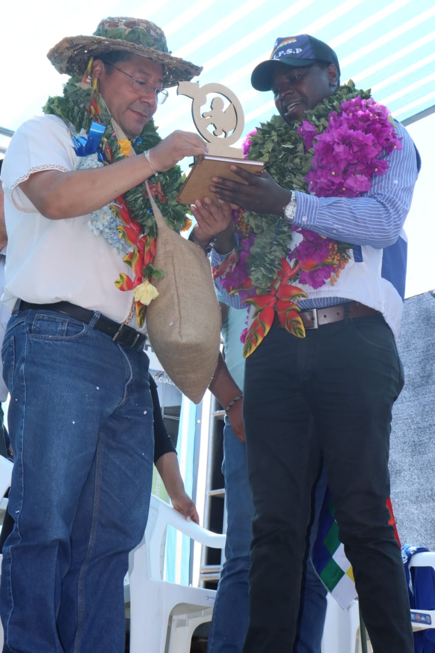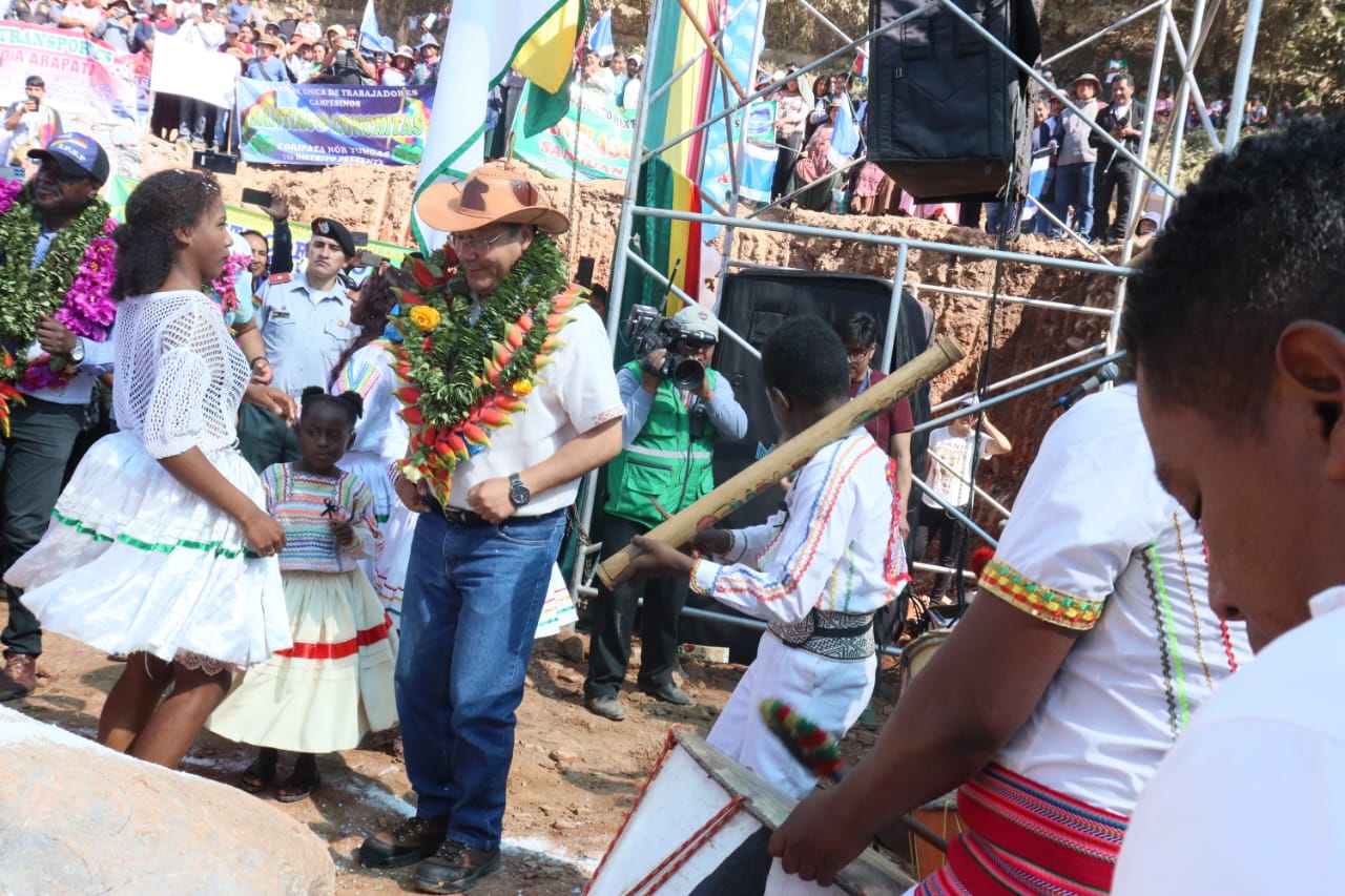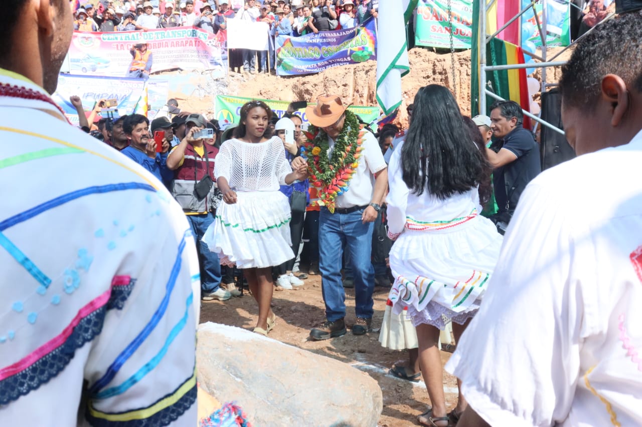 Presidente coloca piedra fundamental para la construcción del Centro Integral de Desarrollo Productivo Yapuchaña y Unidad Educativa, en Coripata