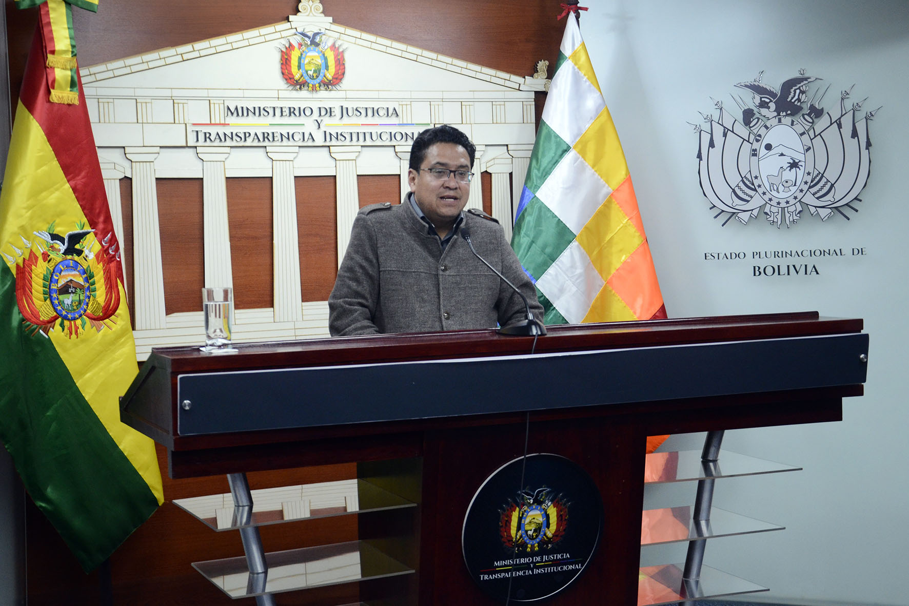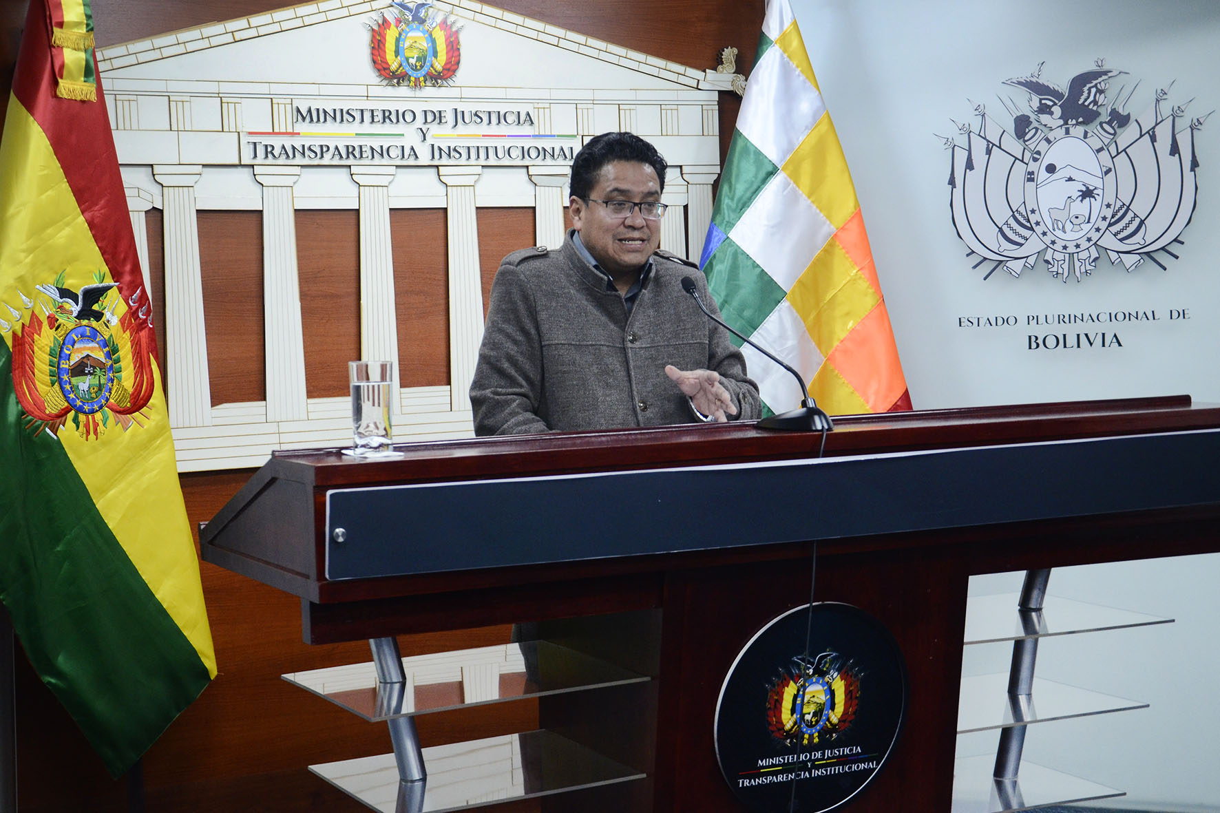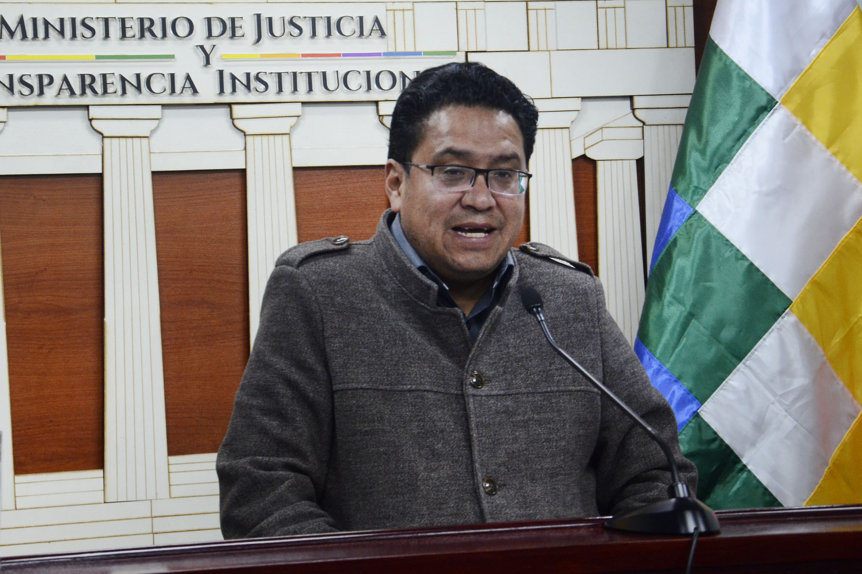 Viceministro de Justicia y Derechos Fundamentales, César Siles Bazán en conferencia de prensa. Foto: Freddy Barragán