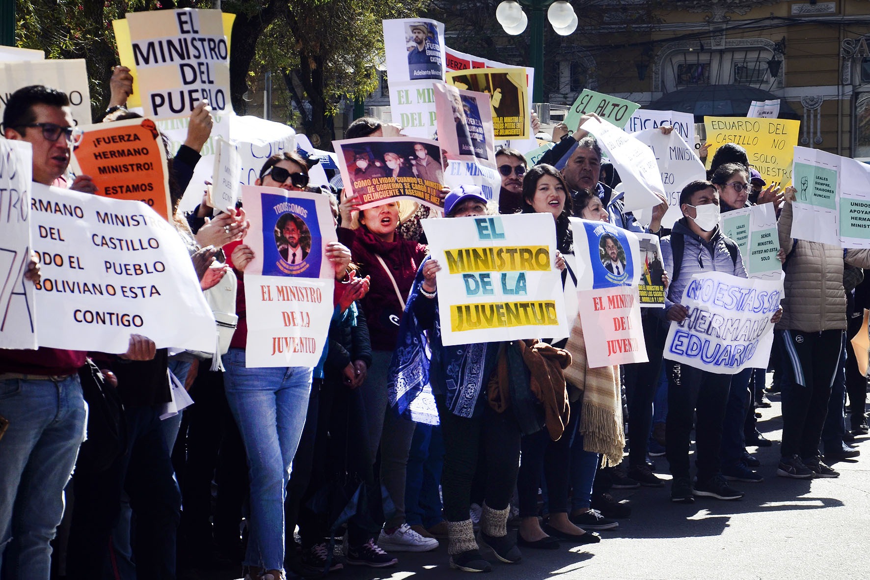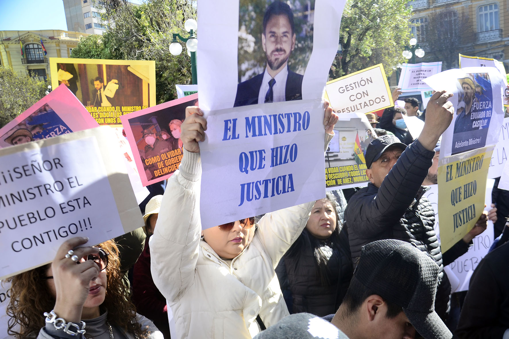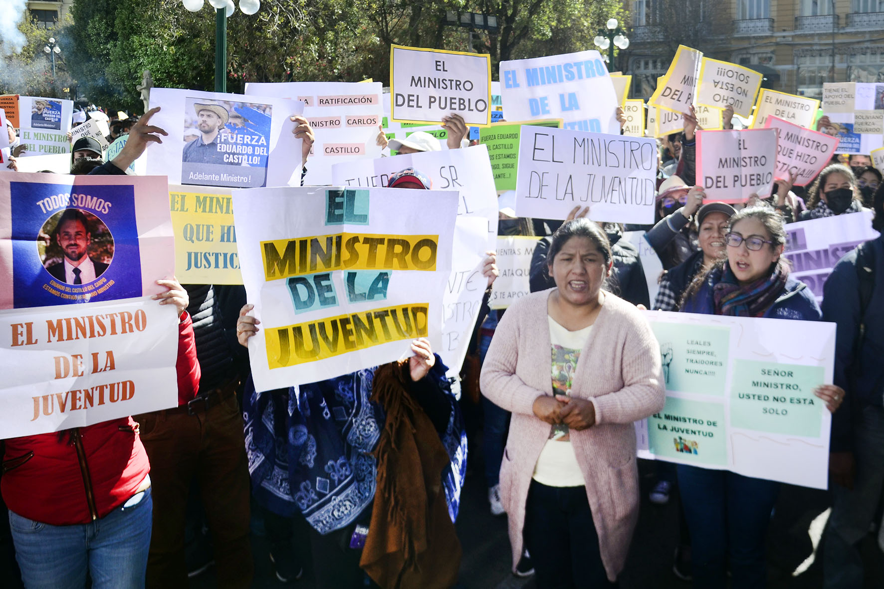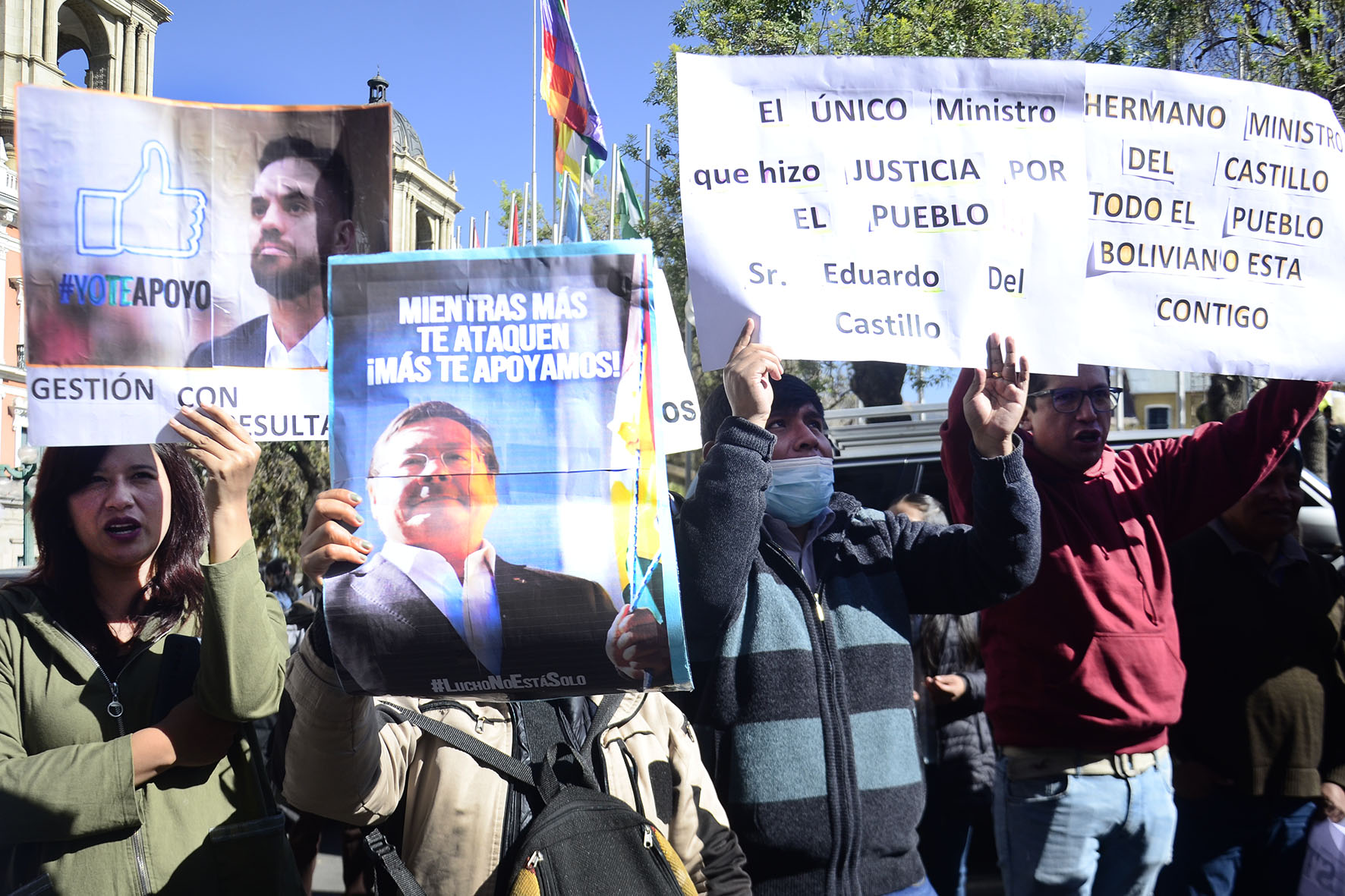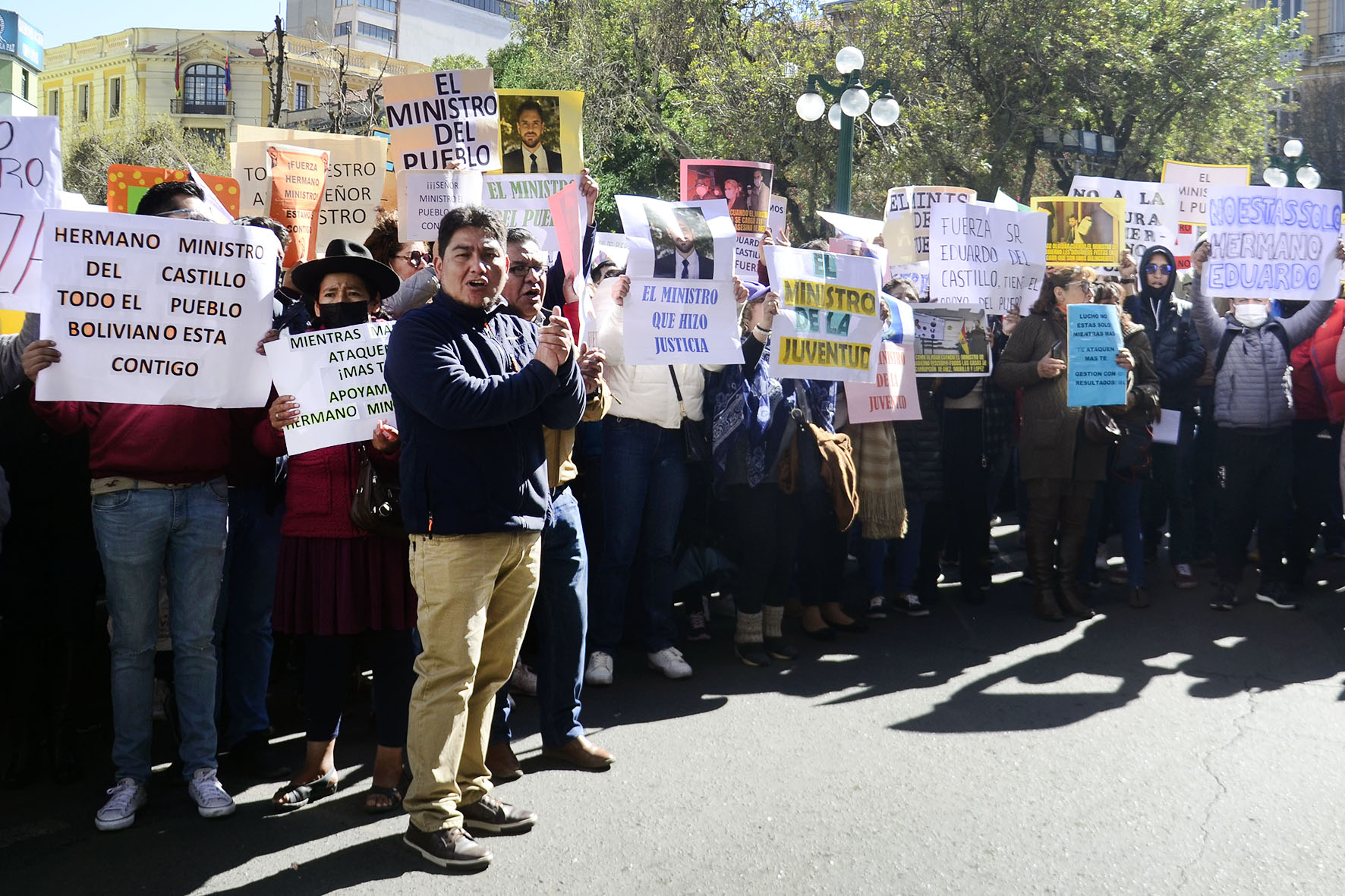 Agrupaciones ciudadanas manifiestan su apoyo al Ministro de Gobierno Eduardo Del Castillo en plaza Murillo. Fotos: Freddy Barragán