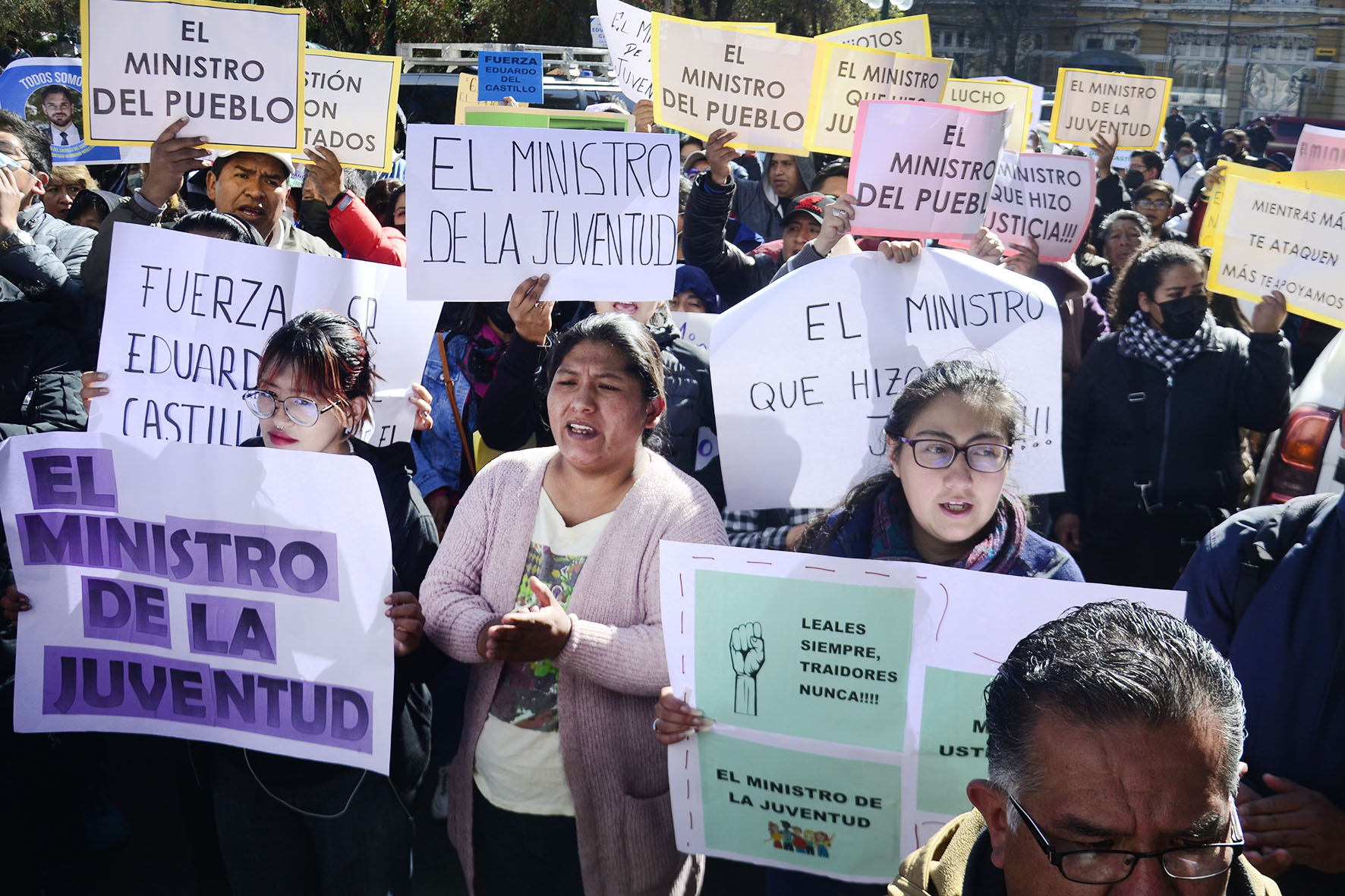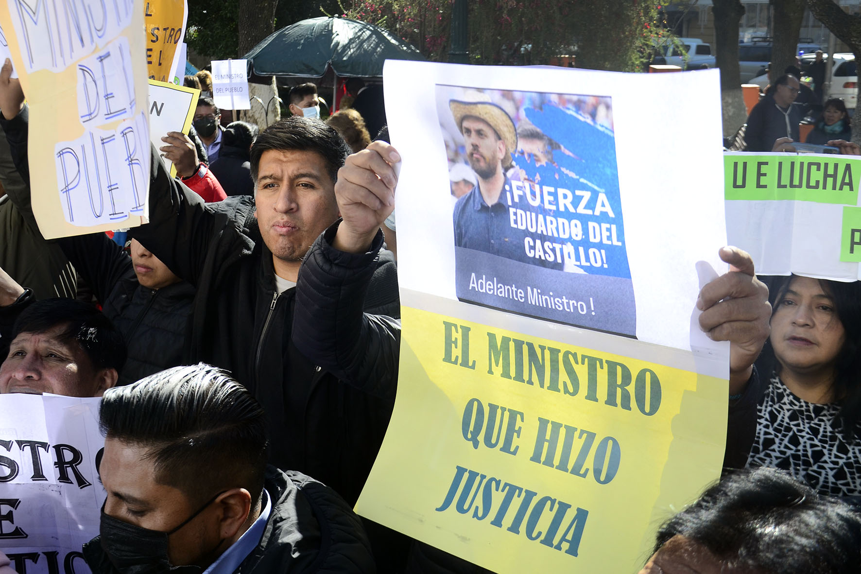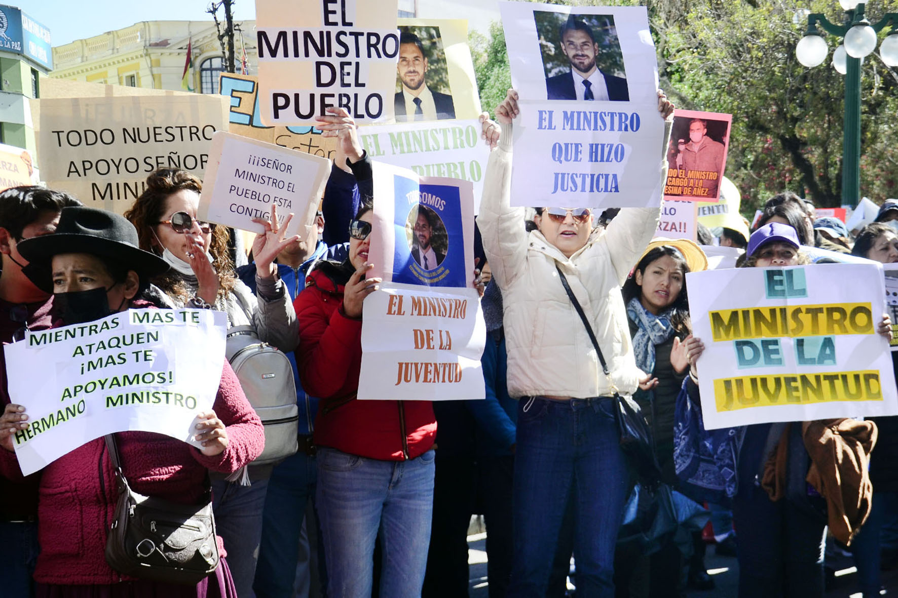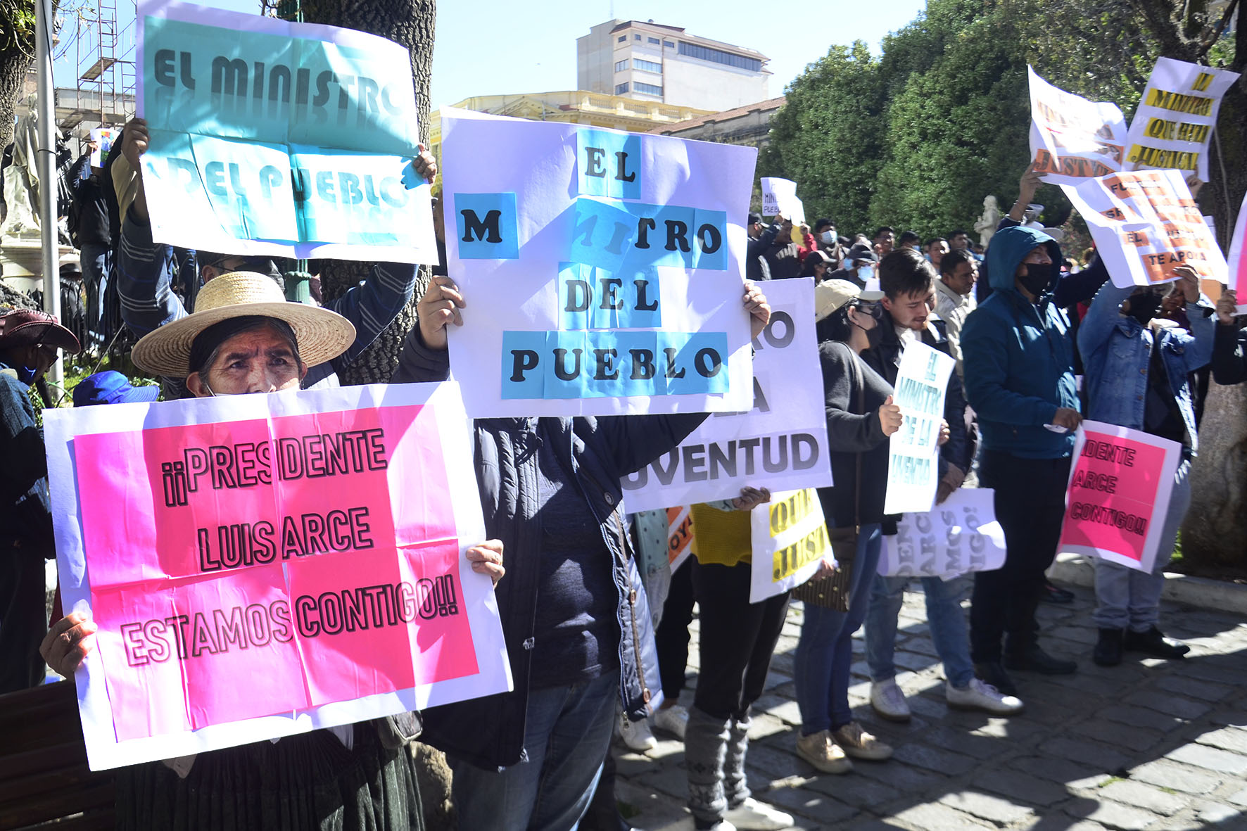 Agrupaciones ciudadanas manifiestan su apoyo al Ministro de Gobierno Eduardo Del Castillo en plaza Murillo. Fotos: Freddy Barragán