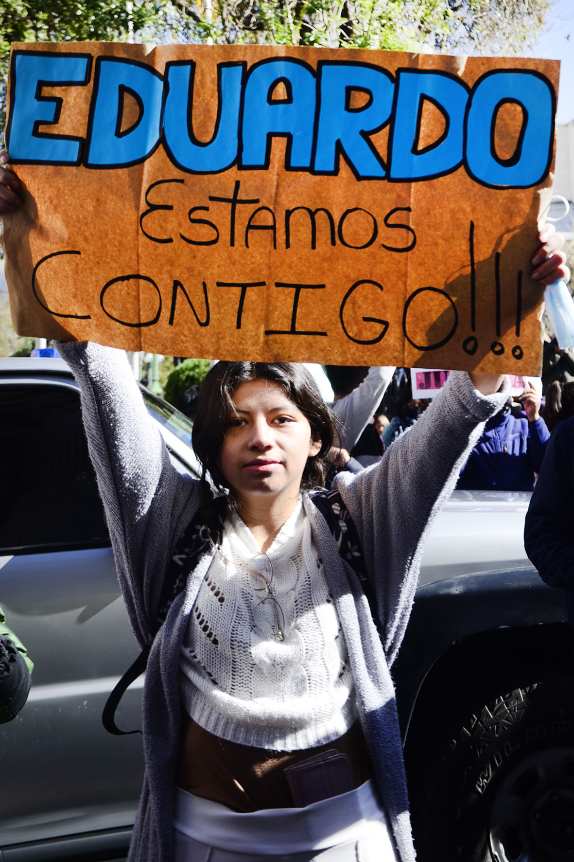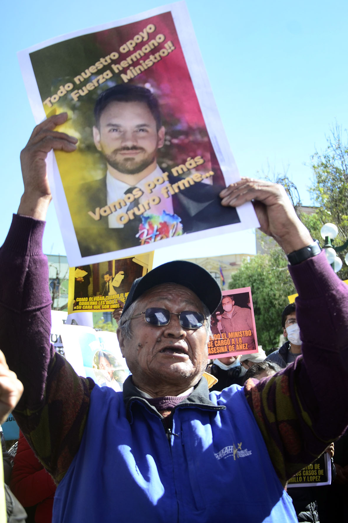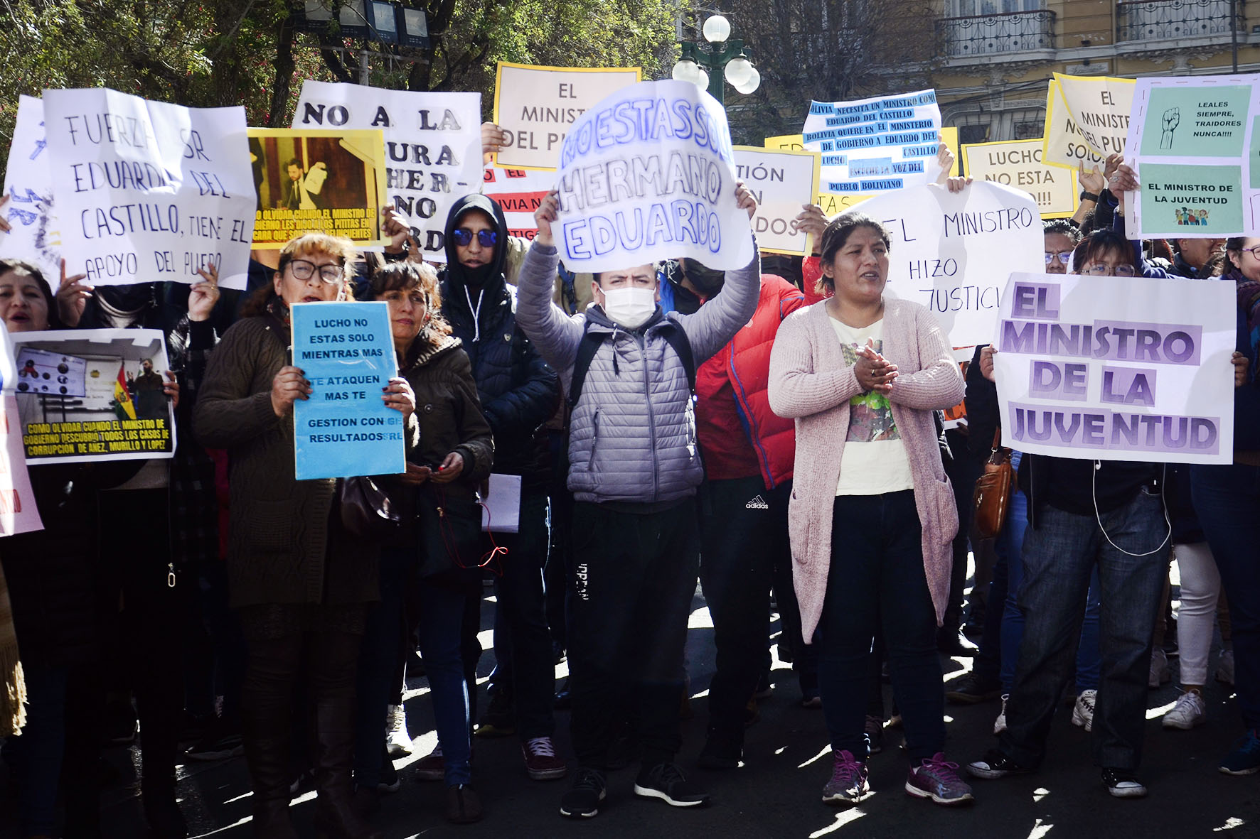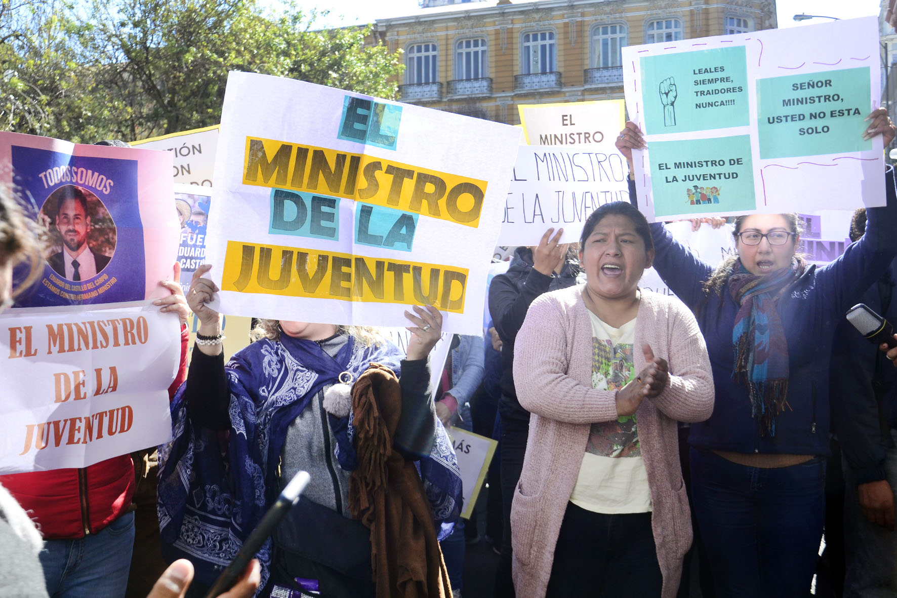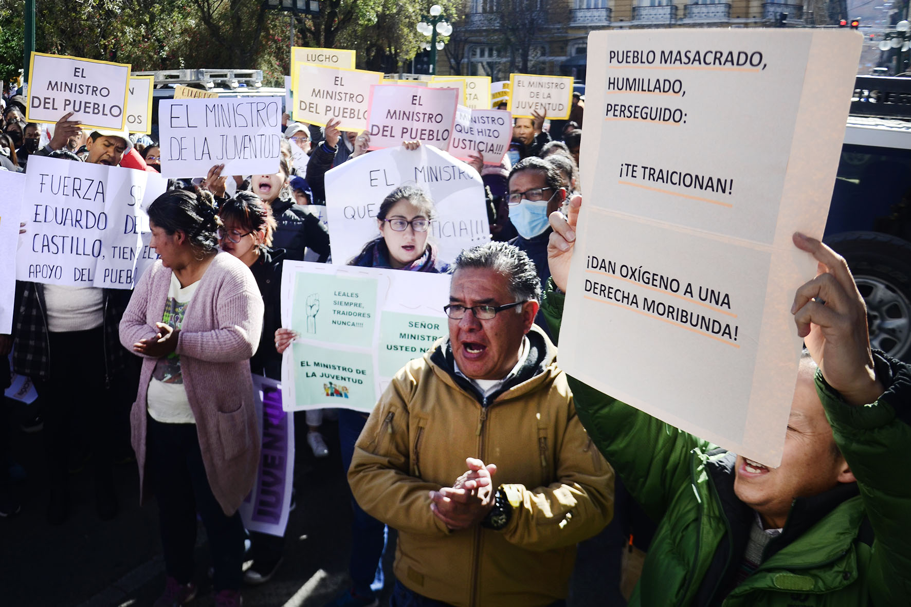 Agrupaciones ciudadanas manifiestan su apoyo al Ministro de Gobierno Eduardo Del Castillo en plaza Murillo. Fotos: Freddy Barragán