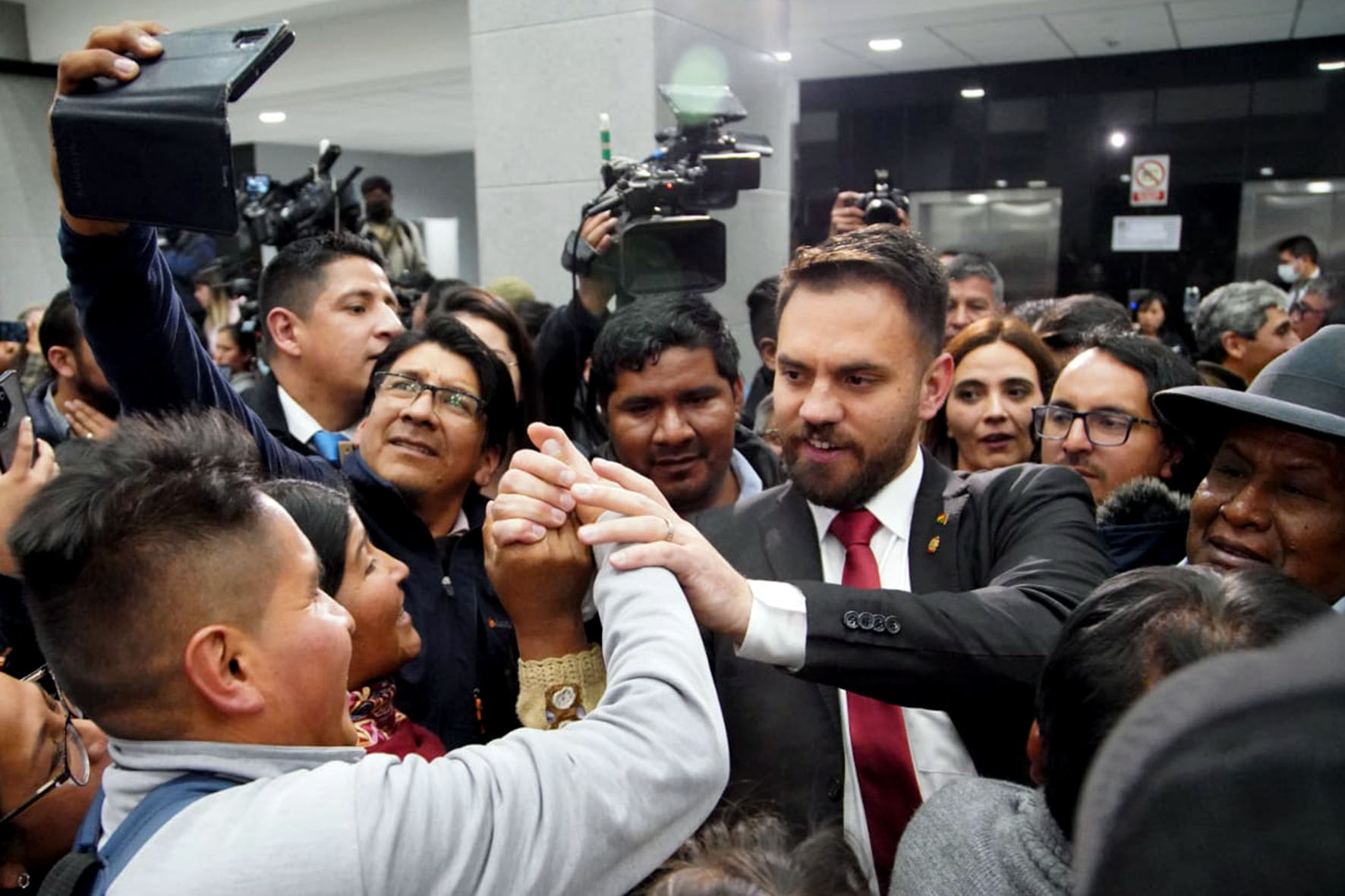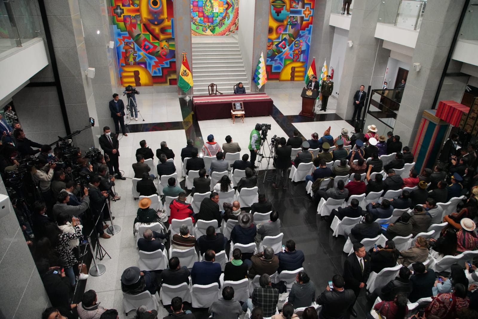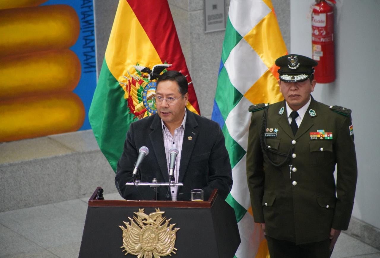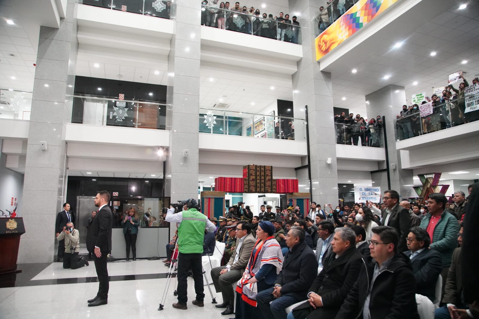 El presidente constitucional del estado Luis Alberto Arce Catacora, ratifica a Eduardo del Castillo como Ministro de Gobierno, en el Hall de la Casa Grande del Pueblo. Fotos: Jorge Mamani y Josué Cortéz