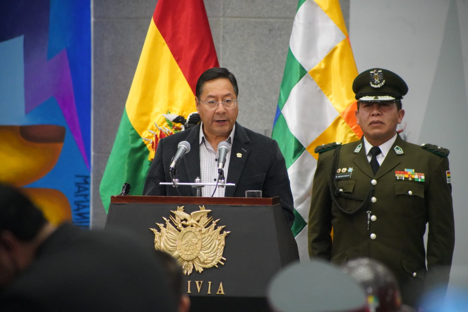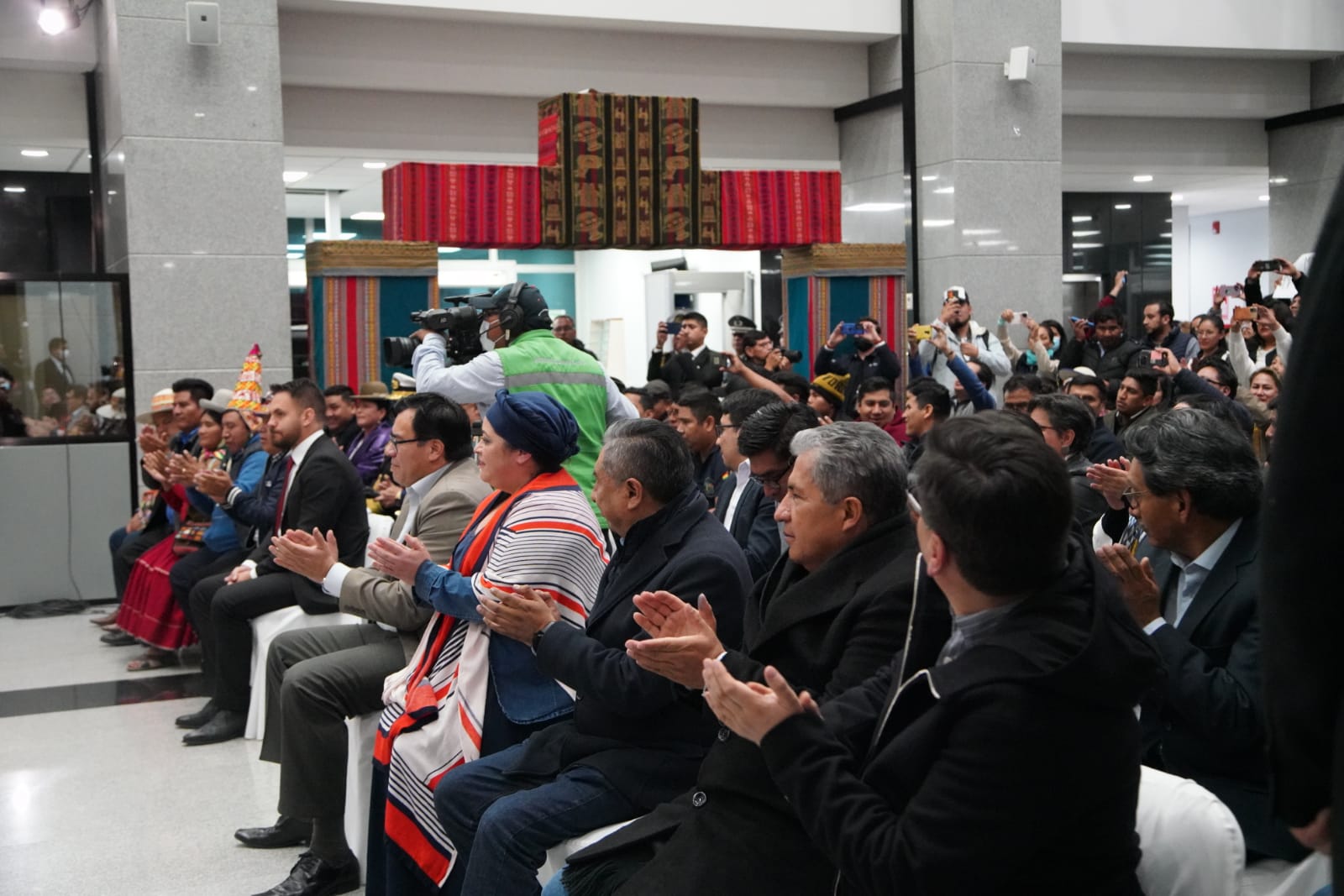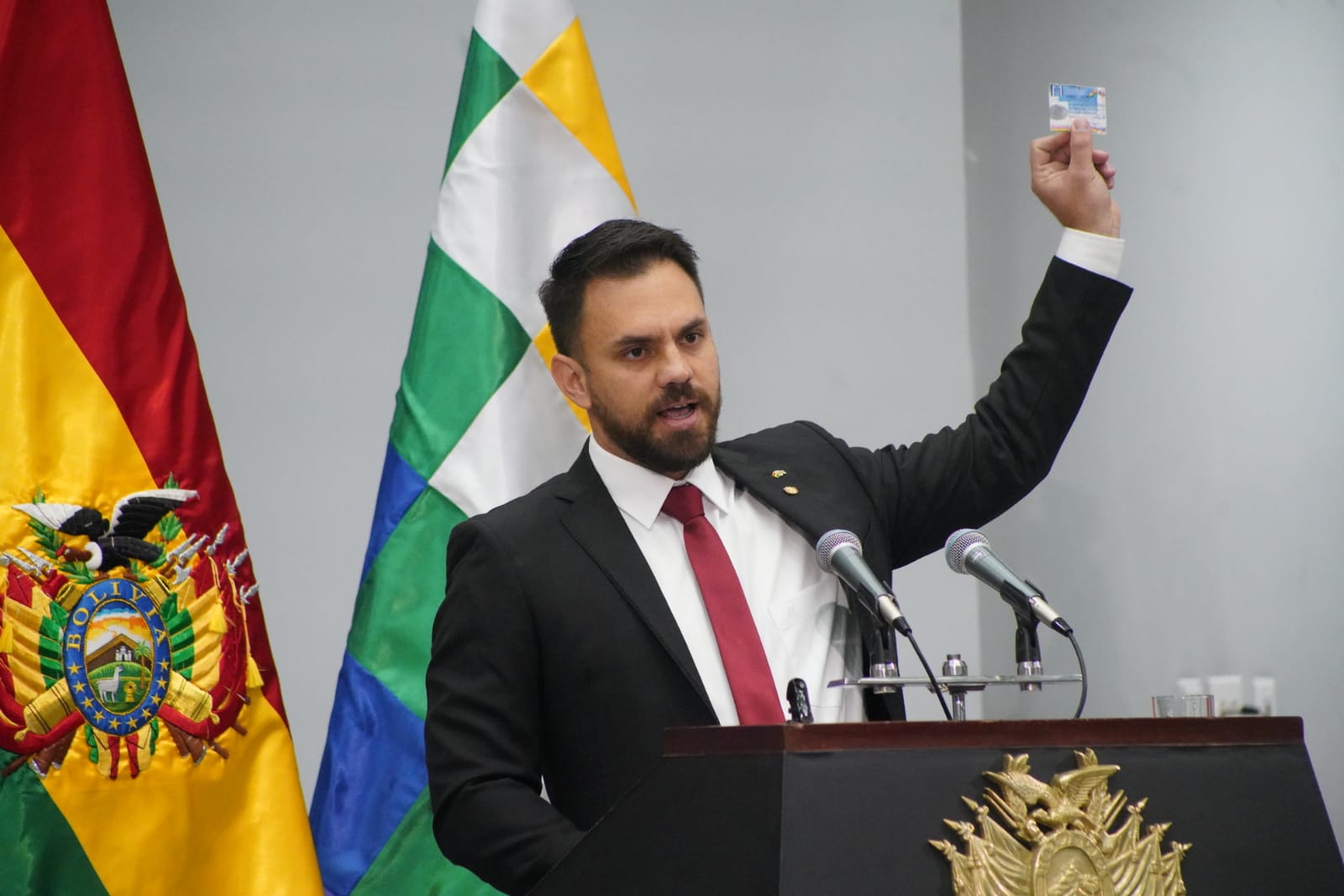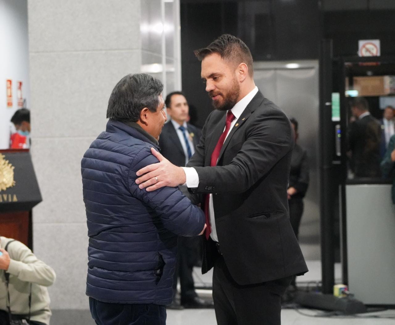 El presidente constitucional del estado Luis Alberto Arce Catacora, ratifica a Eduardo del Castillo como Ministro de Gobierno, en el Hall de la Casa Grande del Pueblo. Fotos: Jorge Mamani y Josué Cortéz