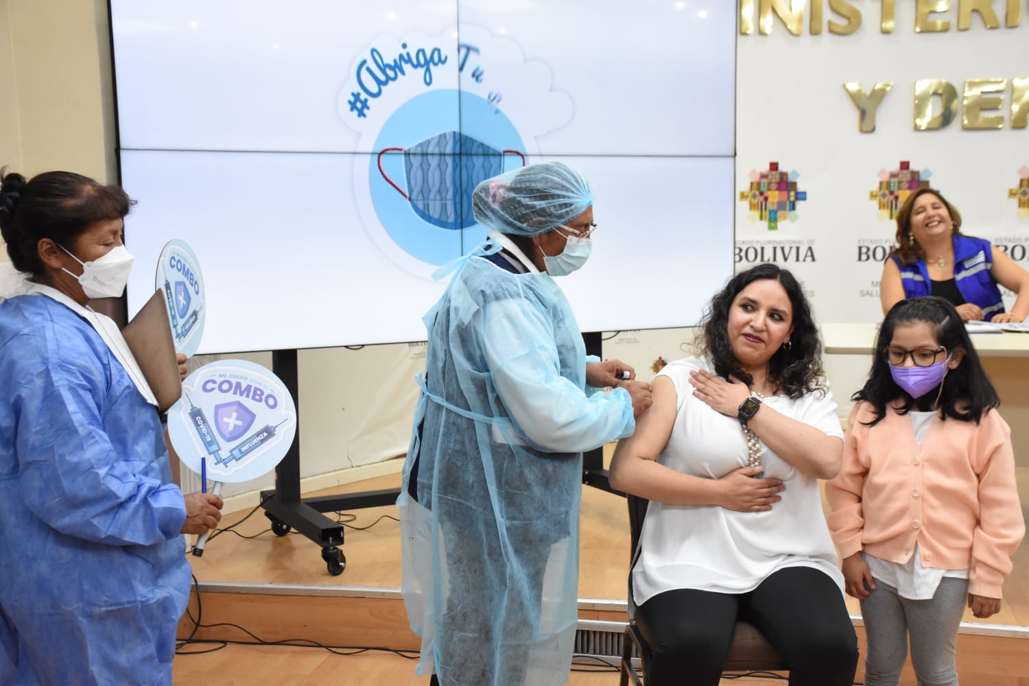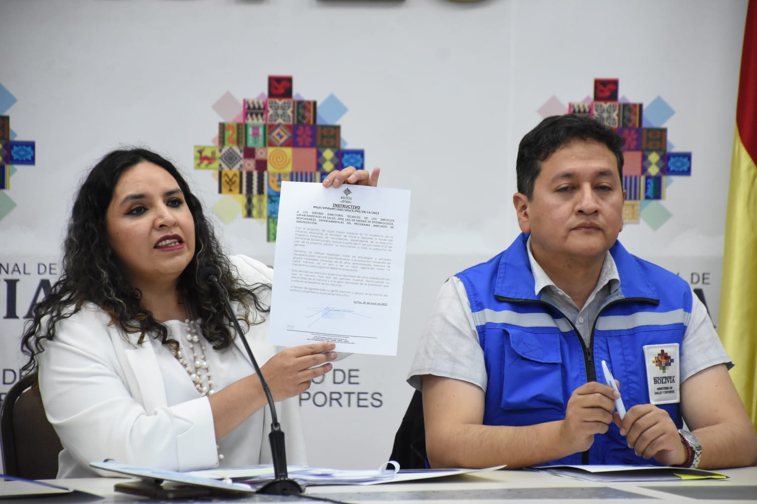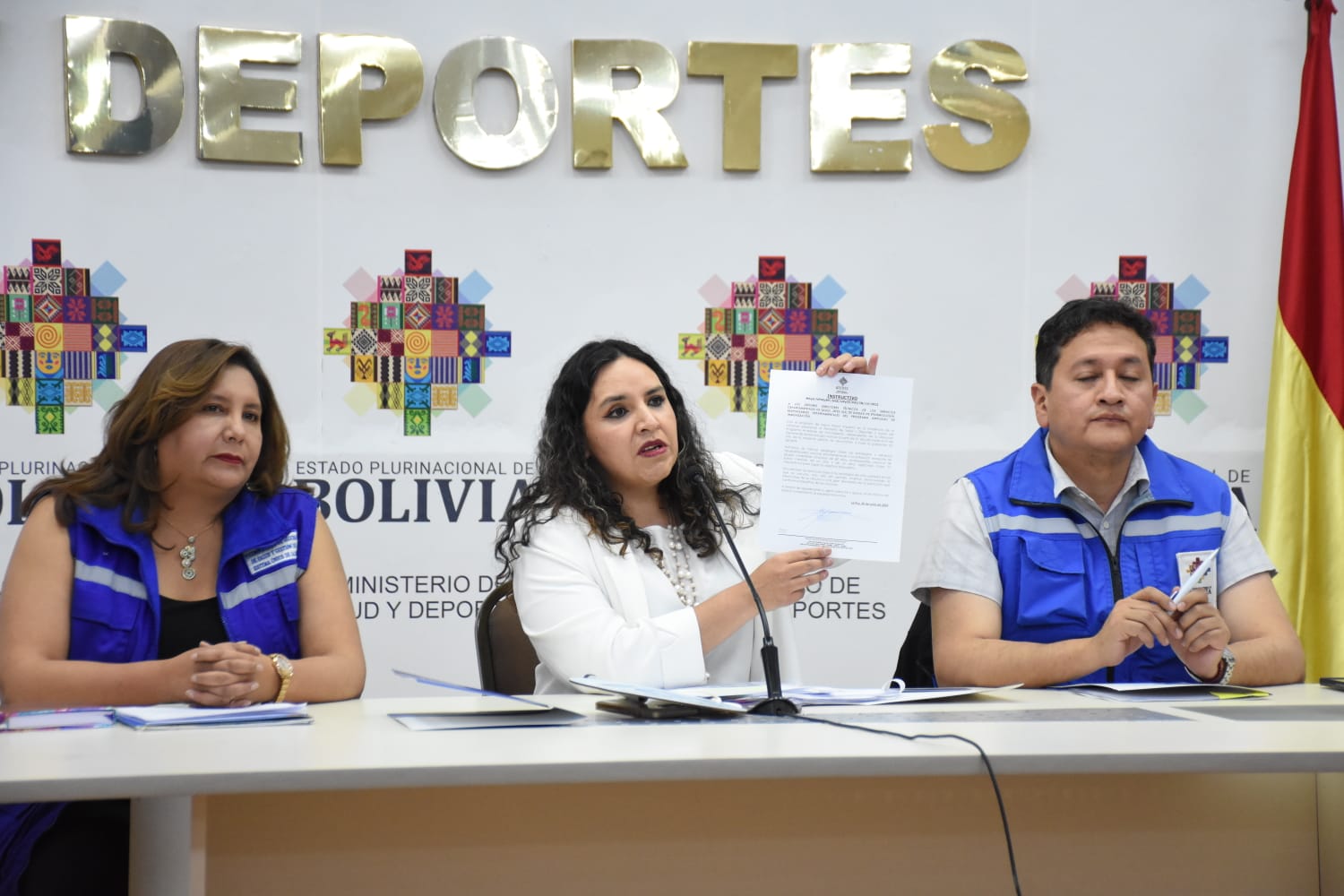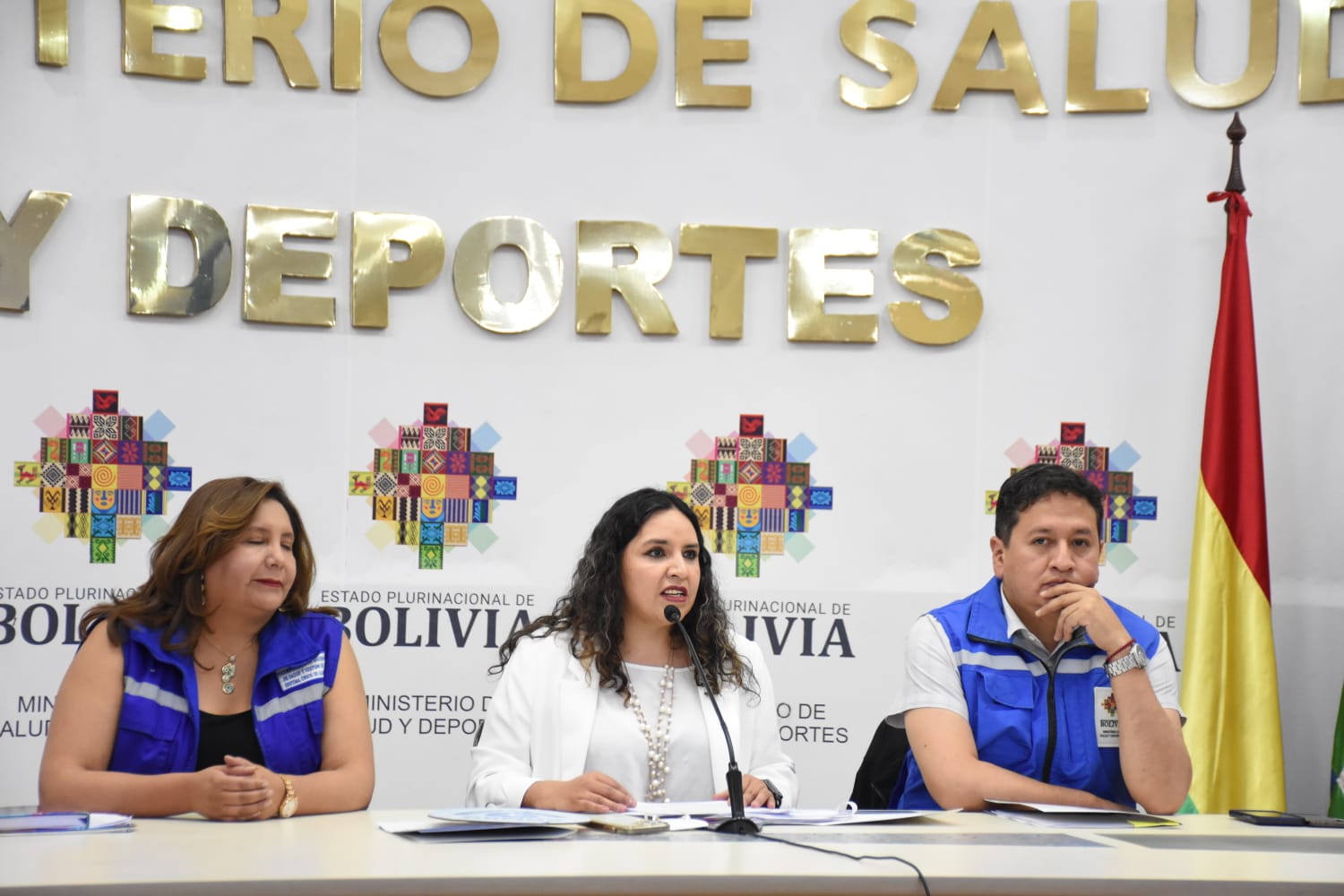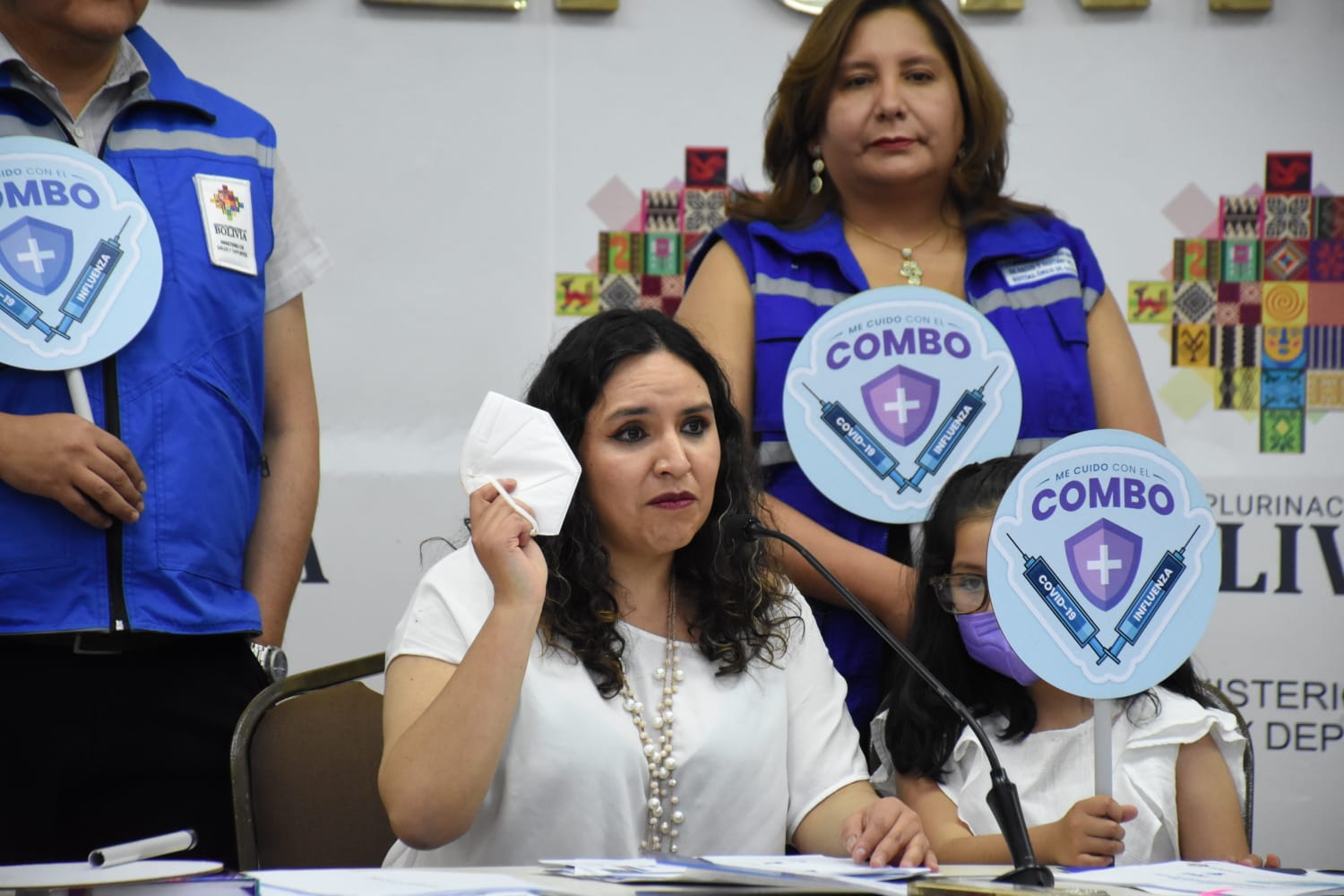 La Ministra de Salud y Deportes María Renée Castro, brinda conferencia de prensa sobre el Lanzamiento de la Campaña de Invierno. Fotos Jorge Mamani