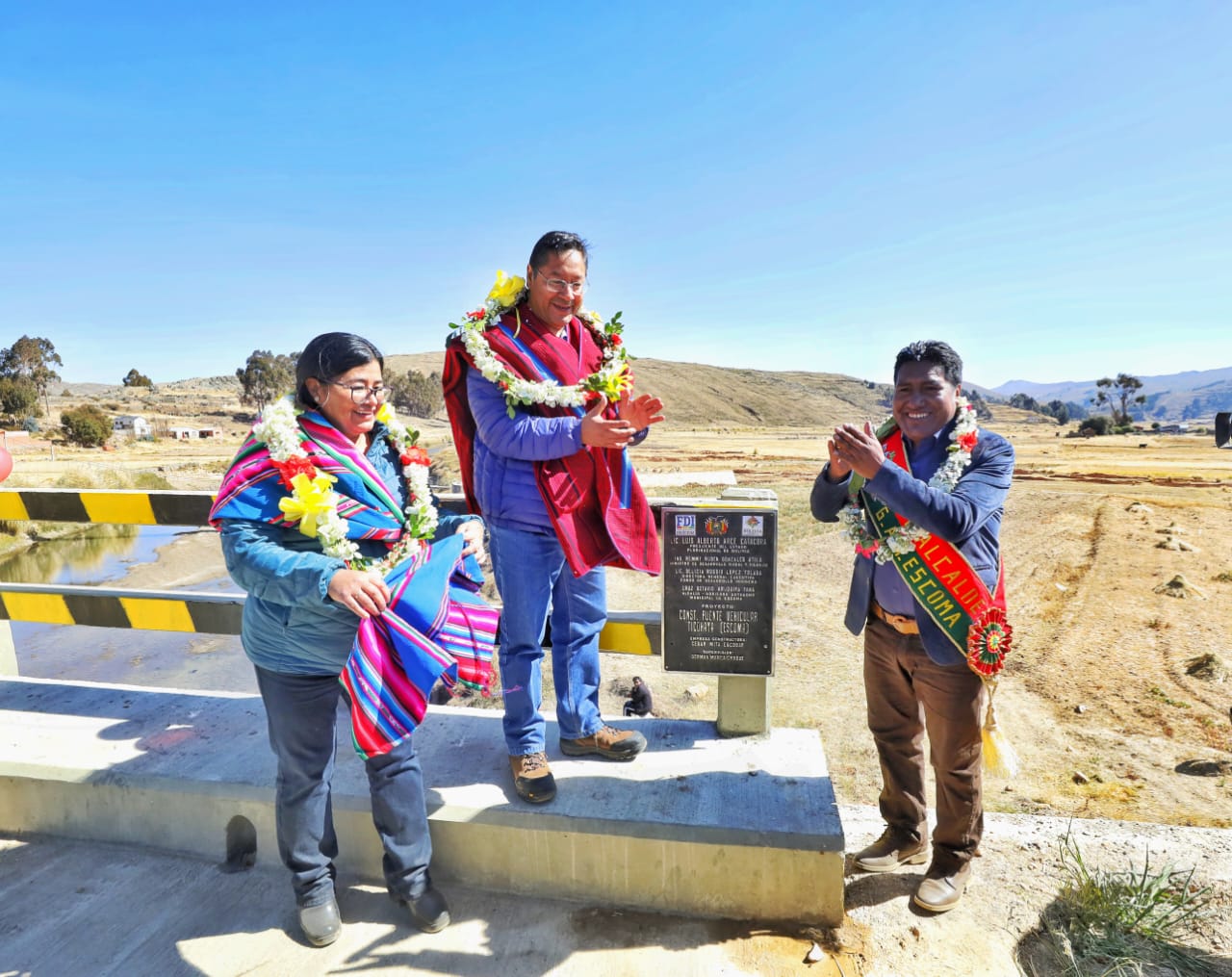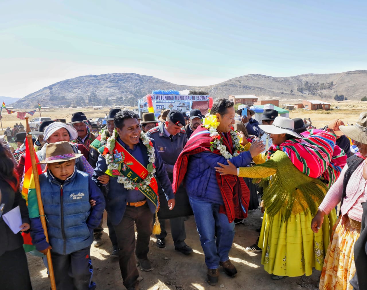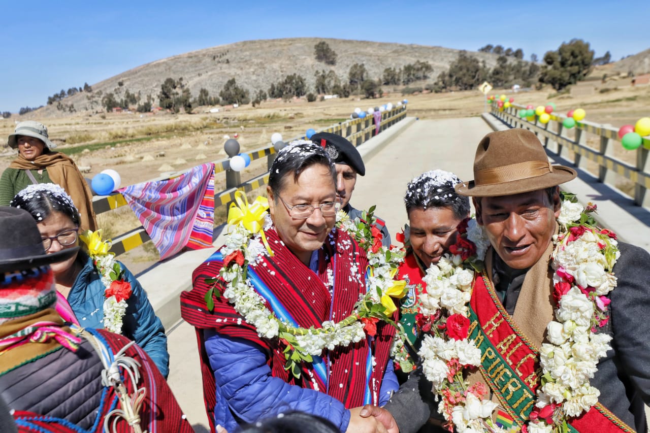 Presidente del Estado Luis Arce, entrega puente vehicular en la comunidad Ticohaya del municipio de Escoma, La Paz. Fuente: Comunicación Presidencial