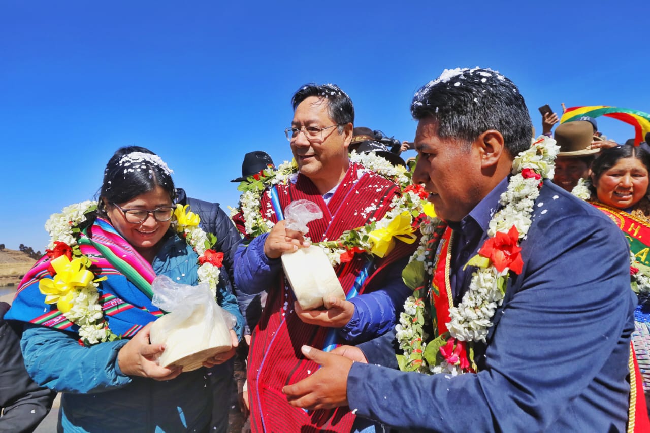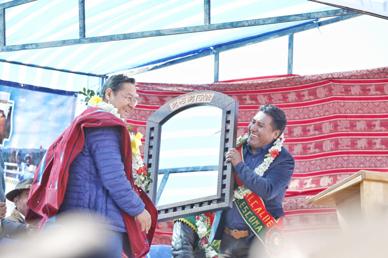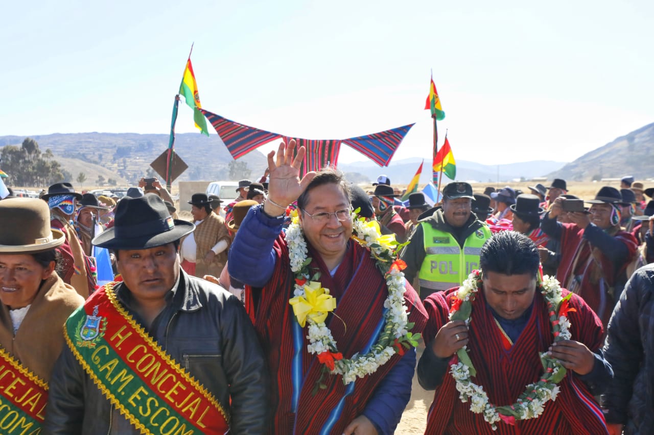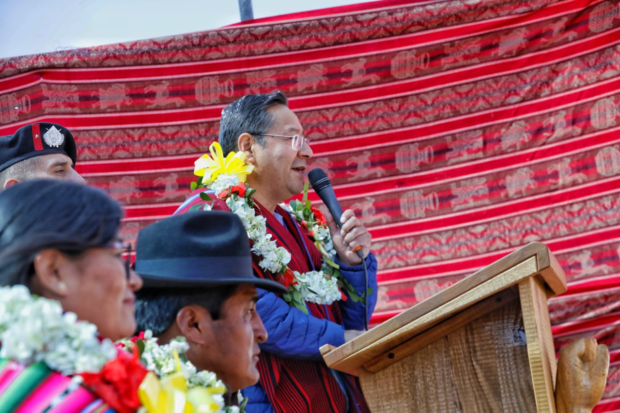 Presidente del Estado Luis Arce, entrega puente vehicular en la comunidad Ticohaya del municipio de Escoma, La Paz. Fuente: Comunicación Presidencial