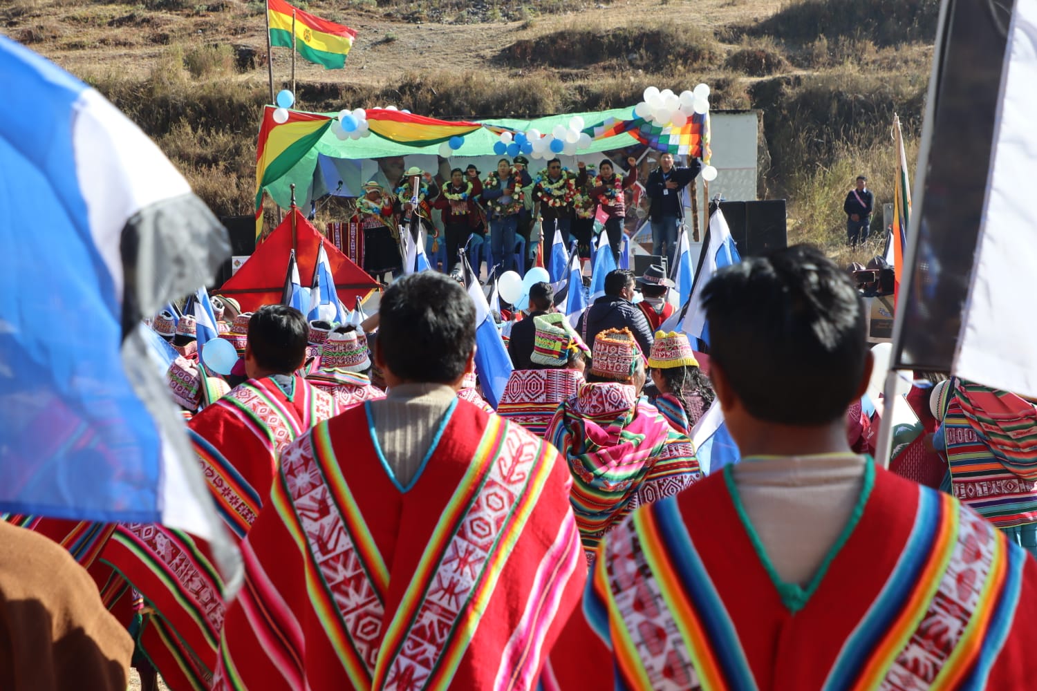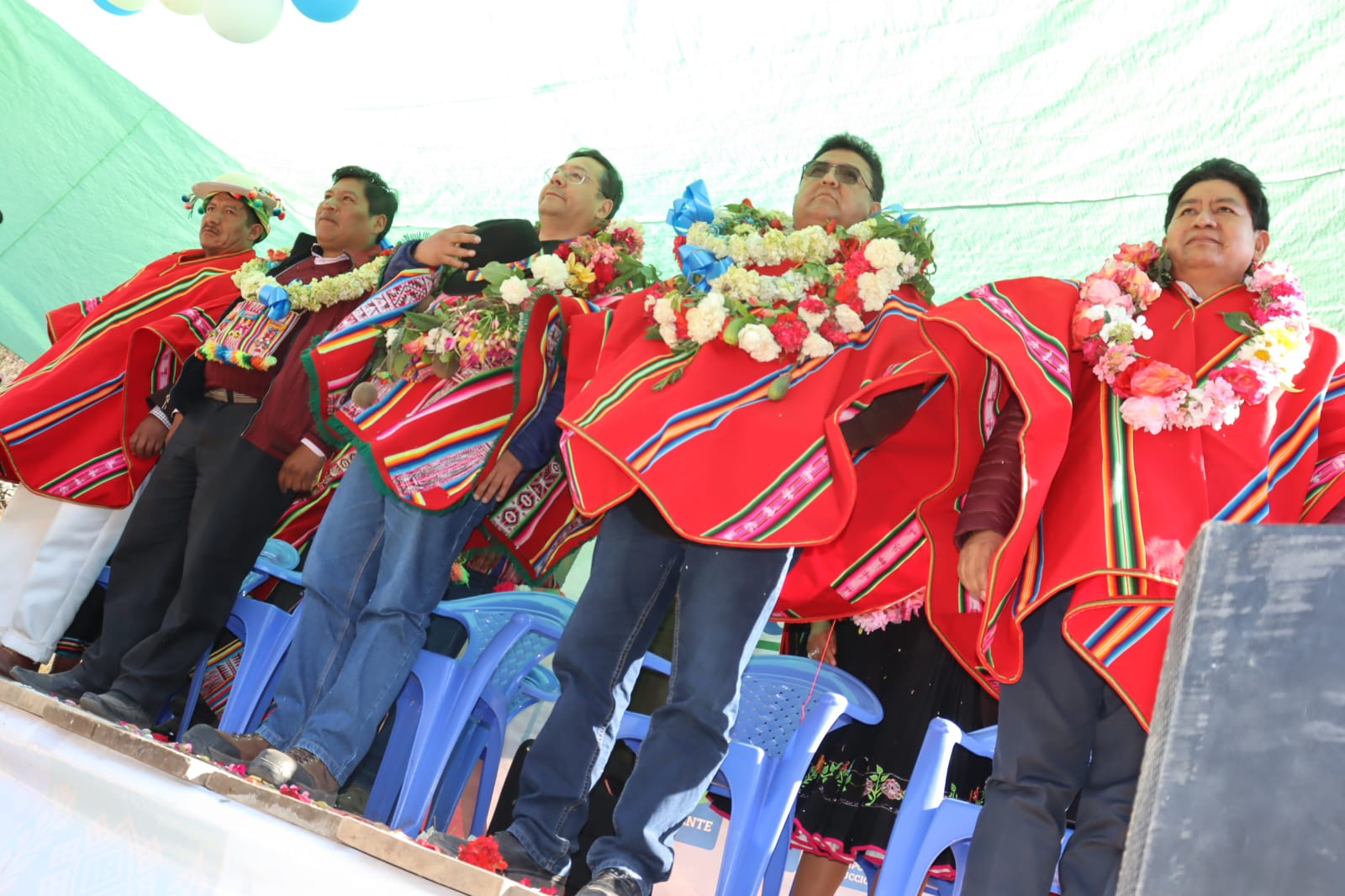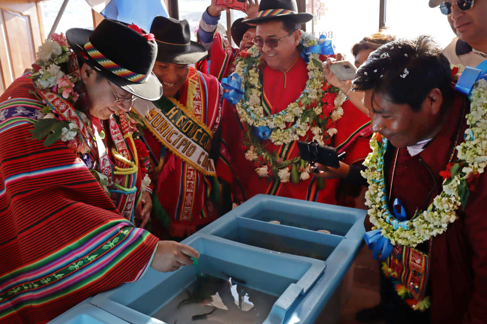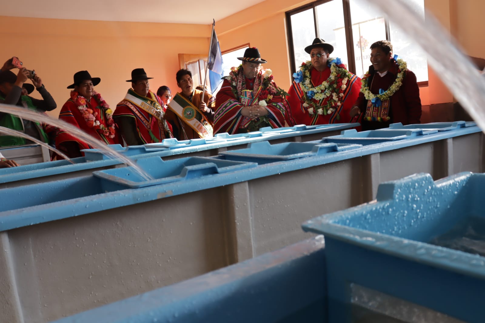Presidente del Estado Luis Arce, entrega el mejoramiento del Sistema de Producción de Trucha, Construcción de Reservorios de Agua y Radio Bases en el municipio de Curva, La Paz. Fuente: Comunicación Presidencial